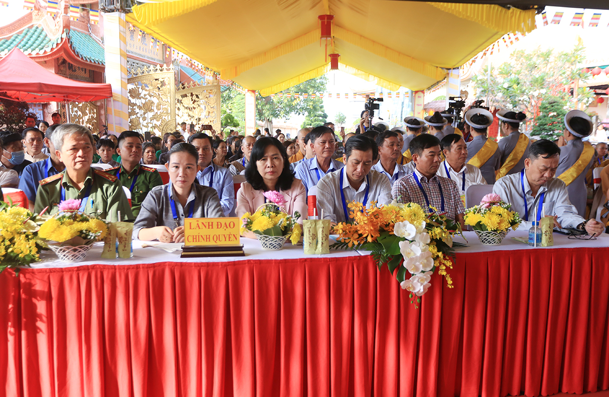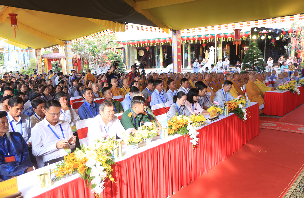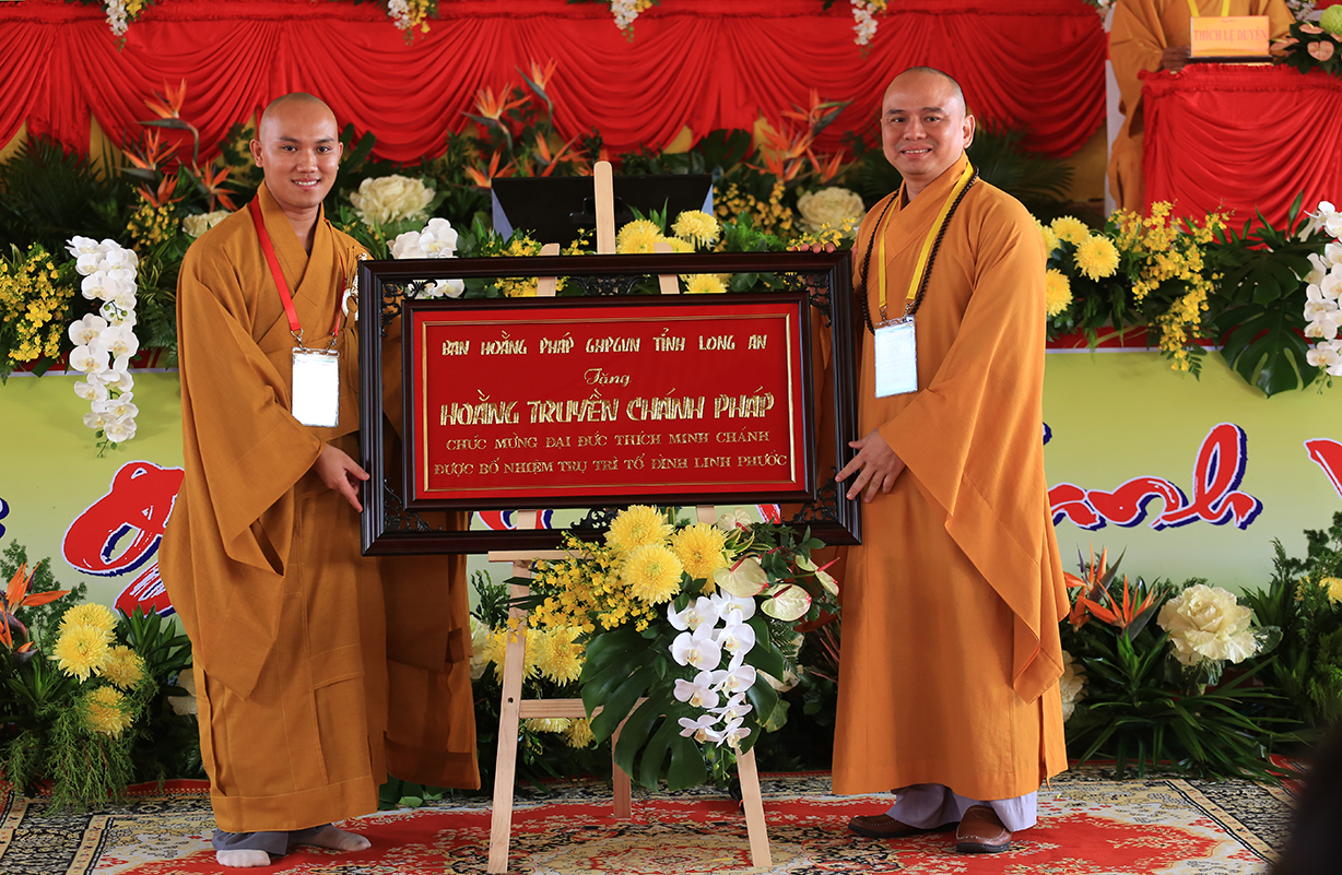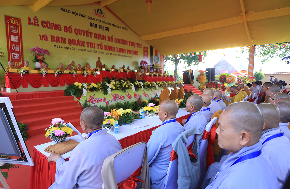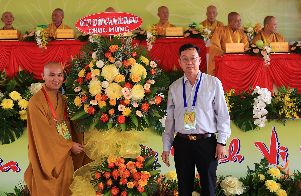 Buổi lễ được cung nghinh sự quang lâm chứng minh của Trưởng Lão Hòa thượng HT. Thích Thiện Huệ – Thành viên HĐCM, Chứng minh BTS GHPGVN tỉnh Long An; HT. Thích Giác Hạnh – Chứng Minh BTS GHPGVN huyện Cần Đước, Viện Chủ Tổ đình Linh Phước; Hòa thượng Thích Huệ Hồng, Hòa thượng Thích Thiện Tài – Đồng chứng minh BTS GHPGVN tỉnh Long An ; Hòa thượng Thích Tâm Nguyên, Hòa thượng Thích Thiện Ngọc – Đồng Chứng Minh BTS GHPGVN huyện Cần Đước; Hòa thượng Thích Minh Nghĩa – Chứng minh BTS GHPGVN Quận 4 – TPHCM; Thượng tọa Thích Đức Hoàng – Phó Trưởng BTS GHPGVN tỉnh Long An, Đại đức Thích Lệ Duyên – Phó Trưởng ban kiêm Chánh Thư ký BTS GHPGVN tỉnh Long An; ĐĐ Thích Lệ Ngôn- Phó Ban Trị sự, Trưởng Ban Hoằng pháp GHPGVN tỉnh Long An; Đại đức Thích Thiện Danh – Phó Thư ký kiêm Chánh Văn phòng BTS GHPGVN tỉnh Long An, Thượng tọa Thích Huệ Định – Trưởng Ban Hoằng pháp BTS GHPGVN tỉnh Bến Tre; Thượng tọa Thích Phước Cường- Trưởng Ban Nghi lễ GHPGVN tỉnh Long An; Thượng tọa Thích Nguyên Bình – Uỷ viên Thường trực BTS GHPGVN tỉnh Bà Rịa – Vũng Tàu, Trưởng BTS GHPGVN TP Bà Rịa, TT Thích Minh Huân – Phó Trưởng Ban Thường trực BTS GHPGVN TP Bà Rịa, Đại đức Thích Trí Minh – Ủy viên Ban Thường trực BTS GHPGVN tỉnh Long An, Trưởng BTS GHPGVN huyện Cần Đước; Đại đức Thích Huệ Dũng – Ủy viên Thường trực BTS GHPGVN tỉnh Long An; Thượng tọa Thích Tâm Hướng – UV BTS GHPGVN tỉnh Long An, Phó Trưởng ban Thường trực BTS GHPGVN huyện Cần Đước; Chư tôn đức Ban Thường trực BTS GHPGVN tỉnh Long An, Chư Tôn đức Thường trực huyện Cần Đước; Chư tôn đức Tăng Ni Ban Trị sự GHPGVN tỉnh Bà Rịa – Vũng Tàu, Chư Tôn đức Tăng Ni Trụ trì các Tự viện trong tỉnh Long An, tỉnh Bà Rịa – Vũng Tàu, các tỉnh thành lân cận đồng chứng minh và tham dự.