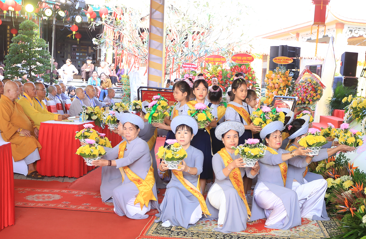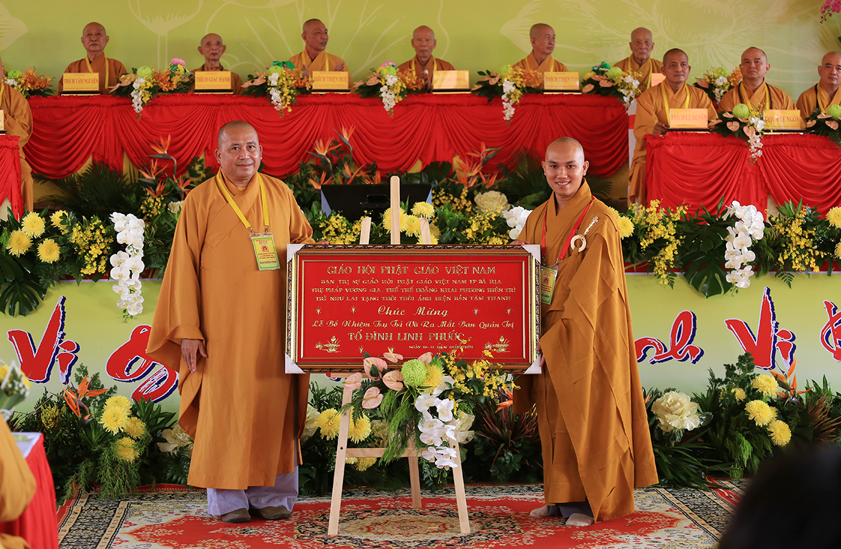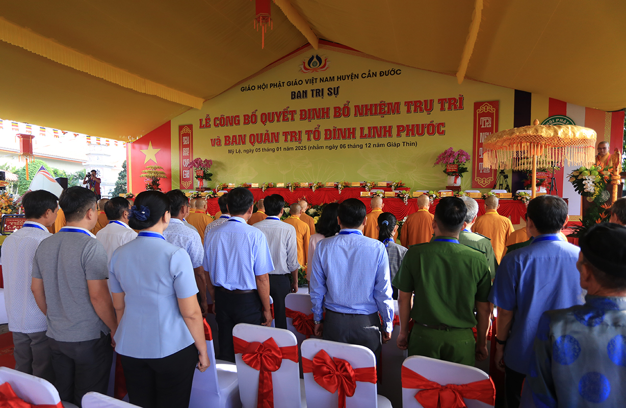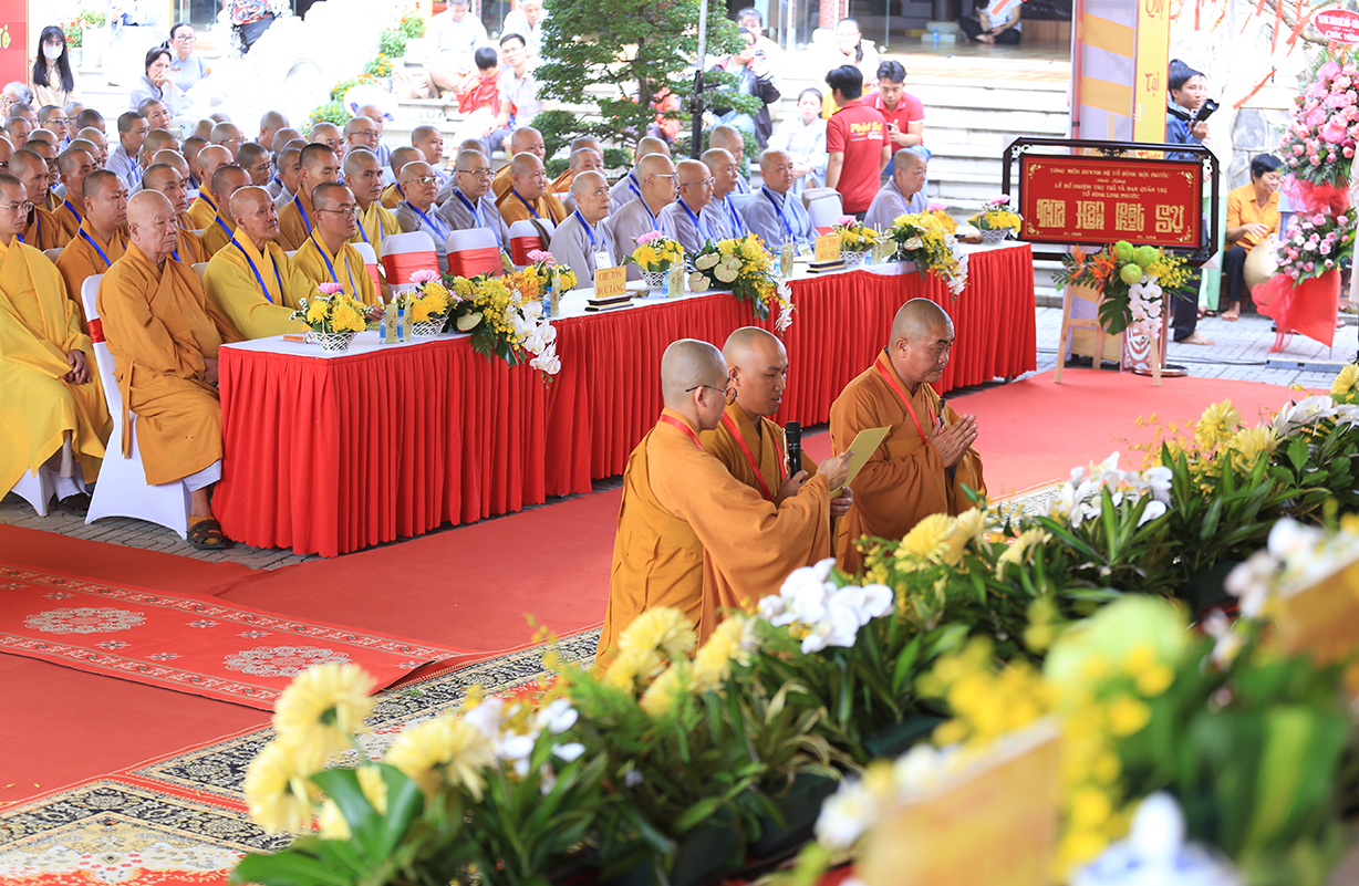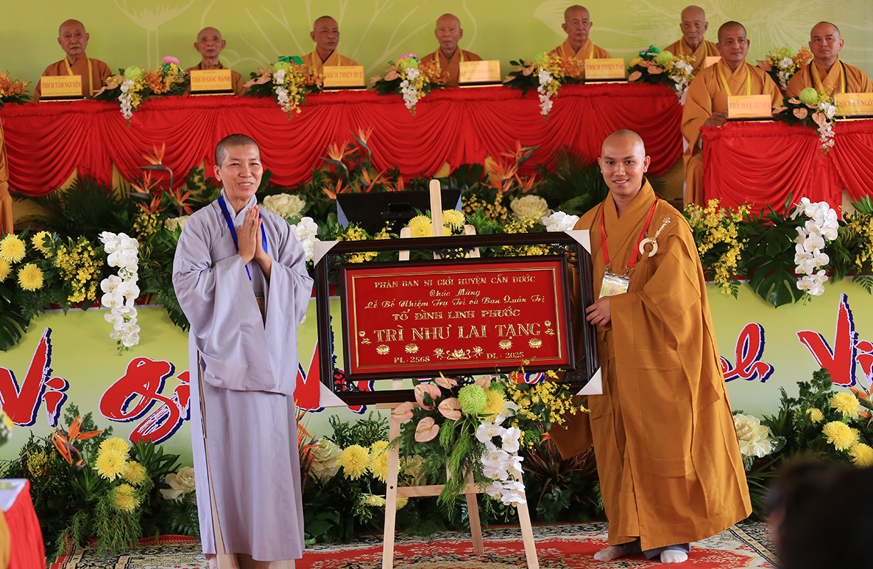 Buổi lễ được cung nghinh sự quang lâm chứng minh của Trưởng Lão Hòa thượng HT. Thích Thiện Huệ – Thành viên HĐCM, Chứng minh BTS GHPGVN tỉnh Long An; HT. Thích Giác Hạnh – Chứng Minh BTS GHPGVN huyện Cần Đước, Viện Chủ Tổ đình Linh Phước; Hòa thượng Thích Huệ Hồng, Hòa thượng Thích Thiện Tài – Đồng chứng minh BTS GHPGVN tỉnh Long An ; Hòa thượng Thích Tâm Nguyên, Hòa thượng Thích Thiện Ngọc – Đồng Chứng Minh BTS GHPGVN huyện Cần Đước; Hòa thượng Thích Minh Nghĩa – Chứng minh BTS GHPGVN Quận 4 – TPHCM; Thượng tọa Thích Đức Hoàng – Phó Trưởng BTS GHPGVN tỉnh Long An, Đại đức Thích Lệ Duyên – Phó Trưởng ban kiêm Chánh Thư ký BTS GHPGVN tỉnh Long An; ĐĐ Thích Lệ Ngôn- Phó Ban Trị sự, Trưởng Ban Hoằng pháp GHPGVN tỉnh Long An; Đại đức Thích Thiện Danh – Phó Thư ký kiêm Chánh Văn phòng BTS GHPGVN tỉnh Long An, Thượng tọa Thích Huệ Định – Trưởng Ban Hoằng pháp BTS GHPGVN tỉnh Bến Tre; Thượng tọa Thích Phước Cường- Trưởng Ban Nghi lễ GHPGVN tỉnh Long An; Thượng tọa Thích Nguyên Bình – Uỷ viên Thường trực BTS GHPGVN tỉnh Bà Rịa – Vũng Tàu, Trưởng BTS GHPGVN TP Bà Rịa, TT Thích Minh Huân – Phó Trưởng Ban Thường trực BTS GHPGVN TP Bà Rịa, Đại đức Thích Trí Minh – Ủy viên Ban Thường trực BTS GHPGVN tỉnh Long An, Trưởng BTS GHPGVN huyện Cần Đước; Đại đức Thích Huệ Dũng – Ủy viên Thường trực BTS GHPGVN tỉnh Long An; Thượng tọa Thích Tâm Hướng – UV BTS GHPGVN tỉnh Long An, Phó Trưởng ban Thường trực BTS GHPGVN huyện Cần Đước; Chư tôn đức Ban Thường trực BTS GHPGVN tỉnh Long An, Chư Tôn đức Thường trực huyện Cần Đước; Chư tôn đức Tăng Ni Ban Trị sự GHPGVN tỉnh Bà Rịa – Vũng Tàu, Chư Tôn đức Tăng Ni Trụ trì các Tự viện trong tỉnh Long An, tỉnh Bà Rịa – Vũng Tàu, các tỉnh thành lân cận đồng chứng minh và tham dự.