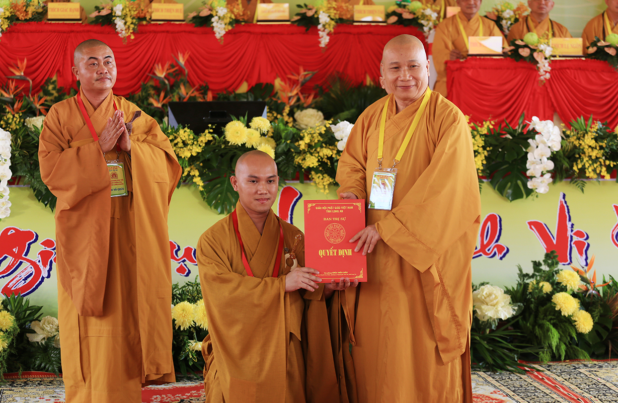 Thay mặt Thường trực BTS GHPGVN huyện Cần Đước, Thượng tọa Thích Tâm Hướng có lời cảm tạ, tri ân Chư Tôn Trưởng lão Hòa thượng, Chư tôn đức Tăng, Ni, Chính quyền các cấp đã luôn tận tâm, giúp đỡ, hỗ trợ về mọi mặt để buổi lễ được thập phần viên mãn, sau đó cung thỉnh chư Tôn đức chứng minh quang lâm trai đường thọ trai hoàn mãn buổi lễ.