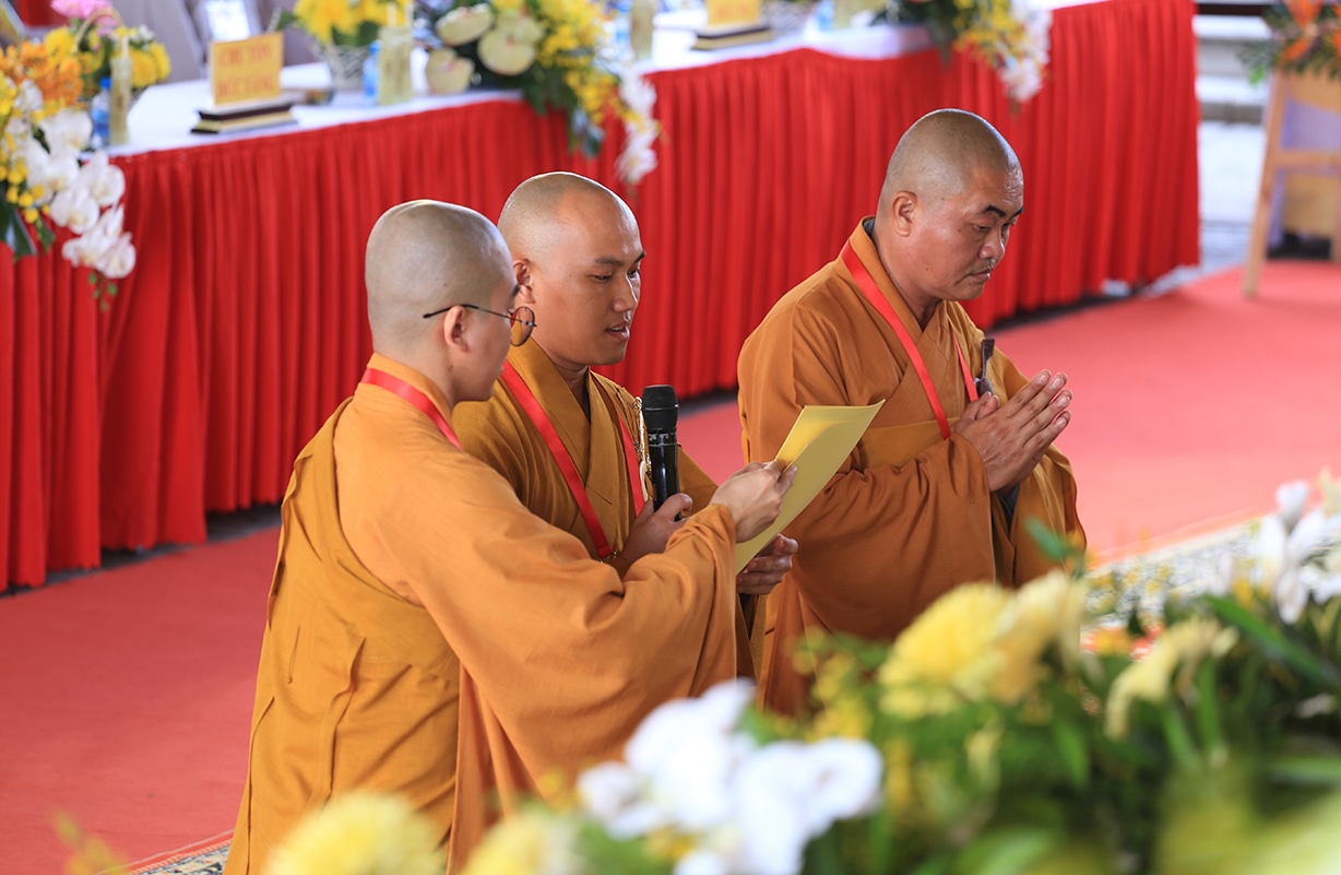 Sau nghi thức chào Quốc kỳ, Đạo kỳ, Tưởng niệm chư tiền bối hữu công, chư Thánh tử đạo cùng anh linh anh hùng chiến sĩ đã hy sinh, Đại đức Thích Nguyên Tịnh – UV BTS GHPGVN tỉnh Long An, Chánh Thư ký BTS GHPGVN huyện Cần Đước thông qua nội dung và chương trình buổi lễ.
