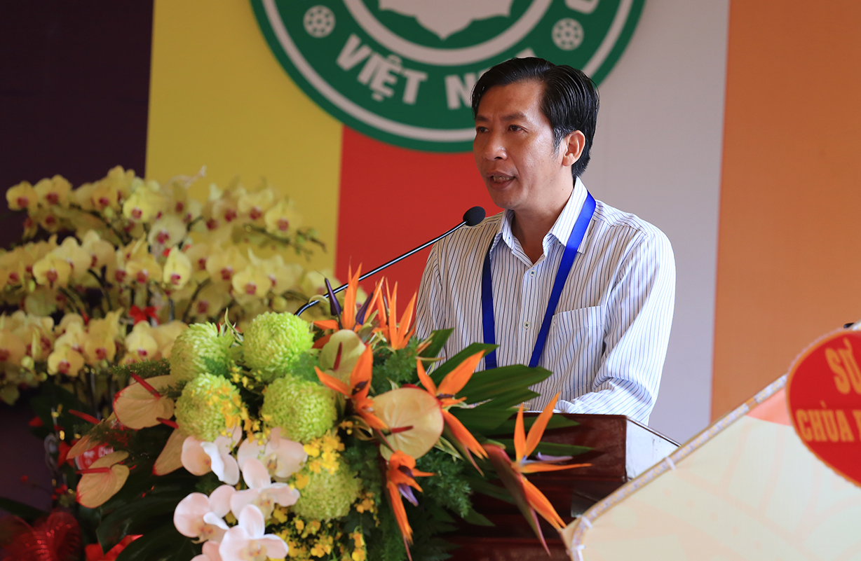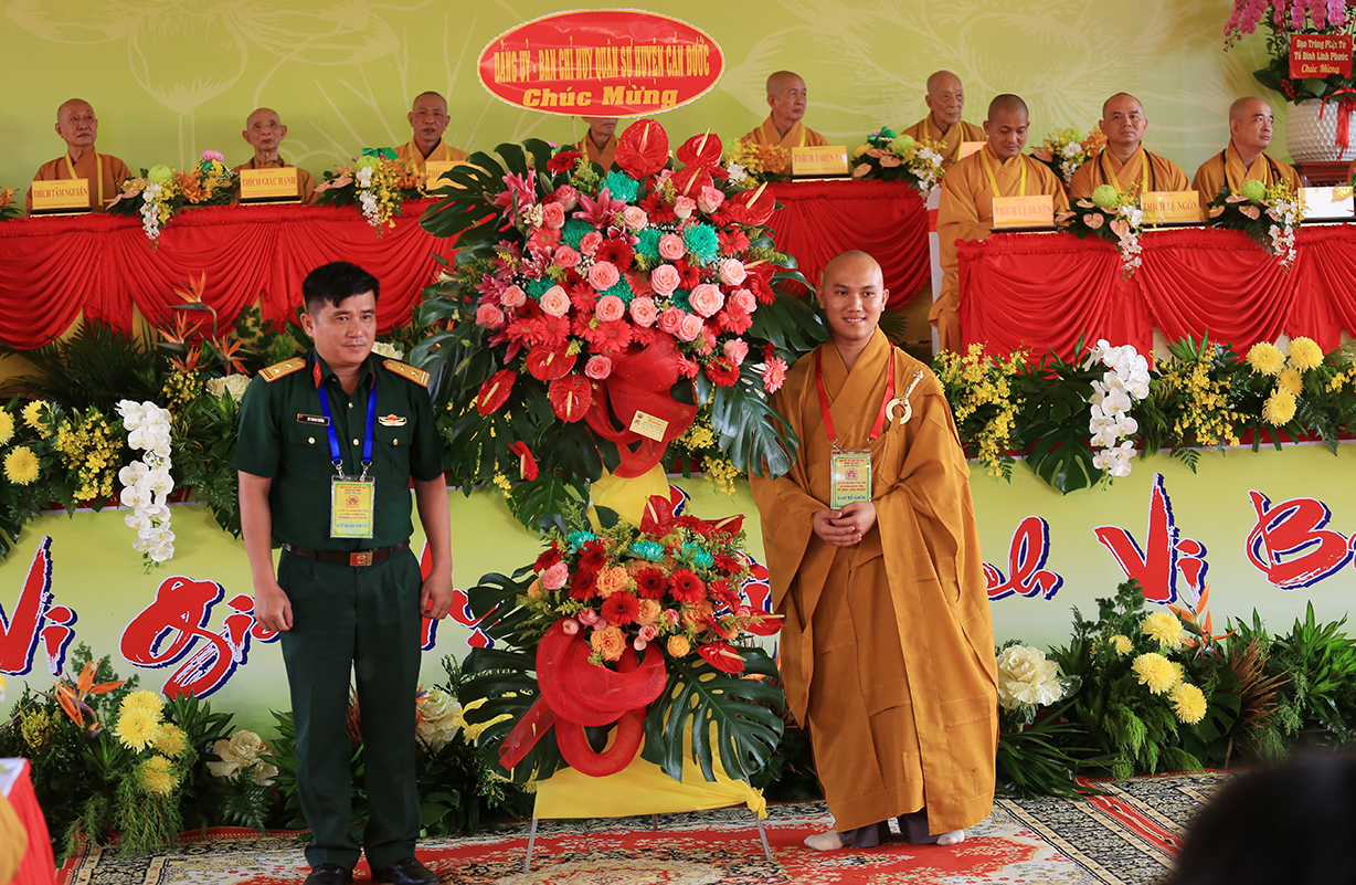 Ông Nguyễn Minh Vương – Phó Chư tịch UBND huyện Cần Đước, thay mặt lãnh đạo huyện Cần Đước có lời phát biểu tại buổi lễ. Buổi lễ này là sự kiện trọng đại của Phật giáo, Ông chúc mừng BTS GHPGVN, huyện Cần Đước và Đại đức Tân trụ trì. Ông nêu ra một số thành tựu của huyện nhà trong thời gian qua và kêu gọi Chư Ni và Phật tử Tổ Đình Linh Phước cùng chung tay góp sức xây dựng quê hương Cần Đước ngày một giàu đẹp.