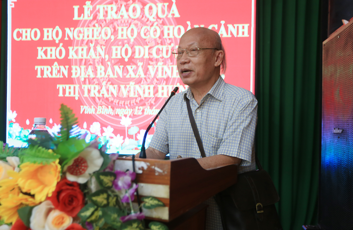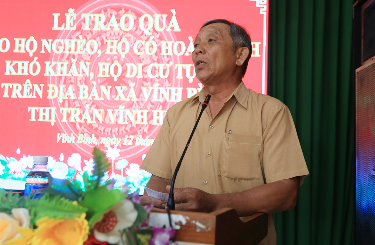 Đại diện chính quyền địa phương các xã, ông Nguyễn Văn Thiên Vũ – Phó CT UBND xã Vĩnh Bình có lời phát biểu tri ân đến các bác sĩ nhà tài trợ. Với tinh thần tương thân tương ái, truyền thống lá lành đùm lá rách, chính quyền địa phương đặc biệt ghi nhận những đóng góp của Phật giáo tỉnh nhà và quý mạnh thường quan đến công tác an sinh xã hội nhằm giúp cho bà con khó khăn đón một mùa Tết ấm no hơn. Ông khẳng định, những phần quà Xuân sẽ là niềm vui đối với bà con, đồng thời hy vọng sẽ là động lực để các hộ dân phấn đấu vượt khó khăn.