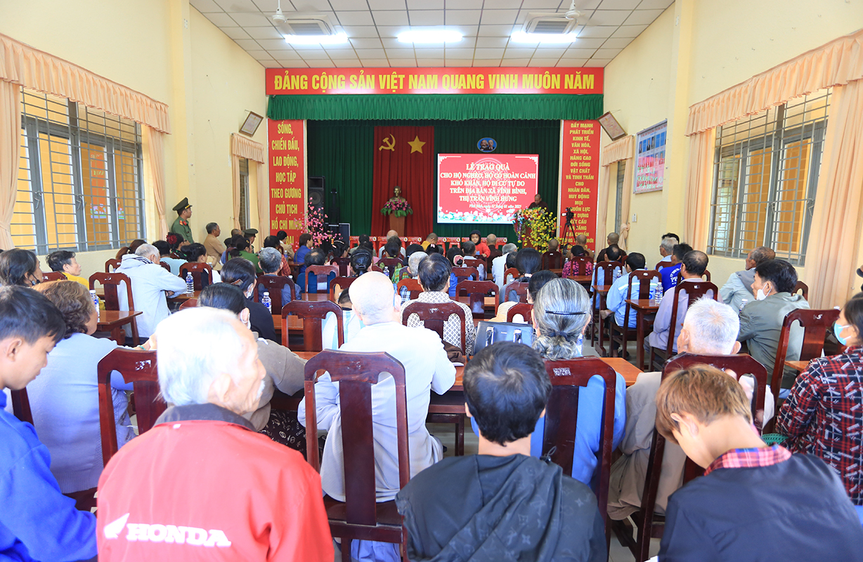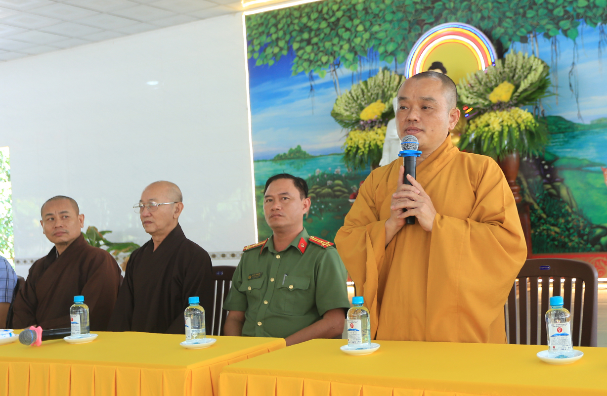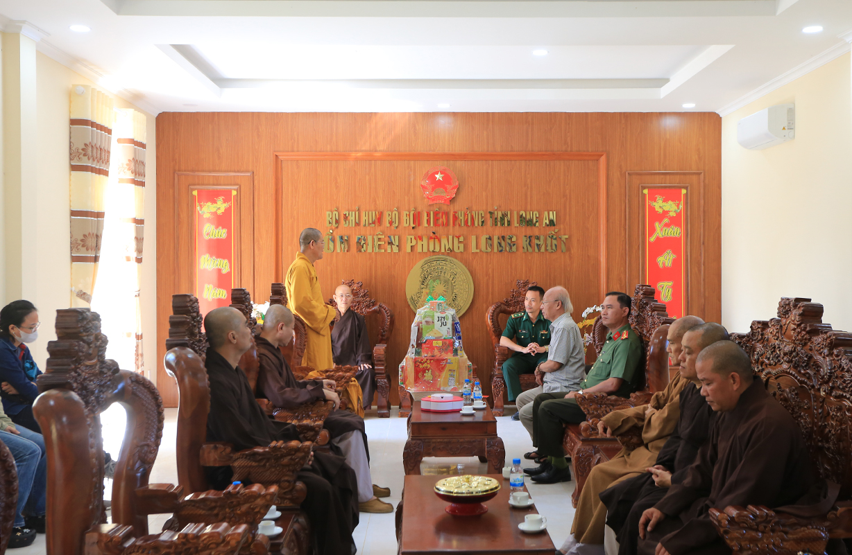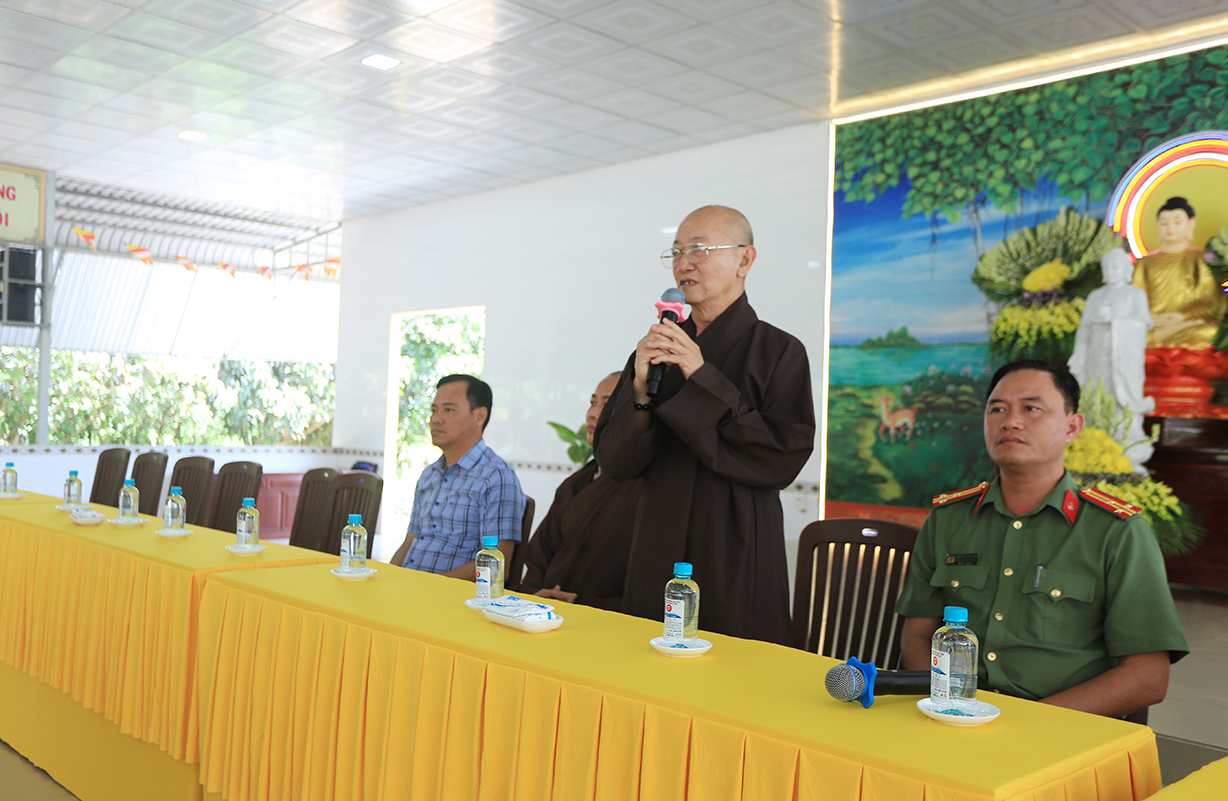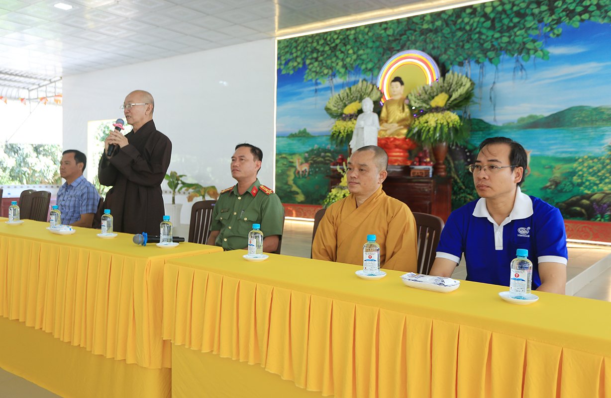 Tại buổi lễ trao quà TT. Thích An Khang – UVTT BTS GHPGVN tỉnh, Trưởng BTS GHPGVN huyện Vĩnh Hưng có lời phát biểu chào mừng. Thượng toạ tri ân sự quan tâm chỉ đạo của Thường trực BTS Phật giáo tỉnh, chính quyền địa phương huyện Vĩnh Hưng, xã Vĩnh Bình, cũng như tri ân đến phái đoàn bác sĩ từ TP.HCM đã mang những món quà xuân đến bà con vùng sâu vùng xa. Hành động thiết thực này của phái đoàn tài trợ đã thể hiện tinh thần tương thân tương ái của dân tộc, đồng thời tô đậm thêm tinh thần “Đạo pháp – Dân tộc” của đạo Phật. Thượng toạ chia sẻ, những phần quà Xuân này sẽ giúp bà con vơi bớt khó khăn, là động lực để bà con sớm hoà nhập với cộng đồng.