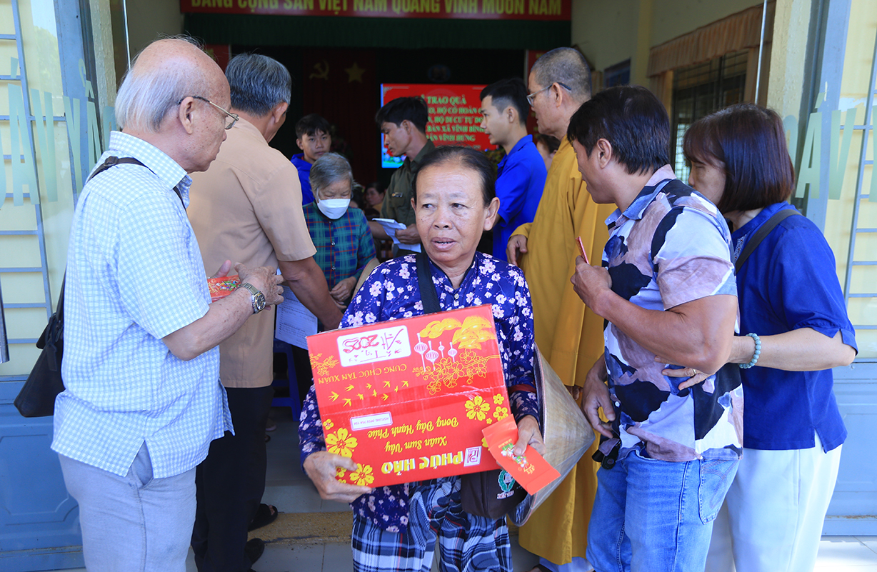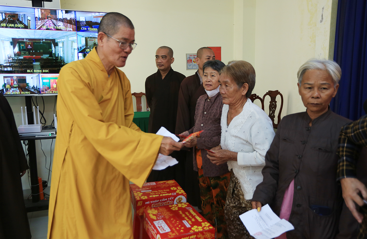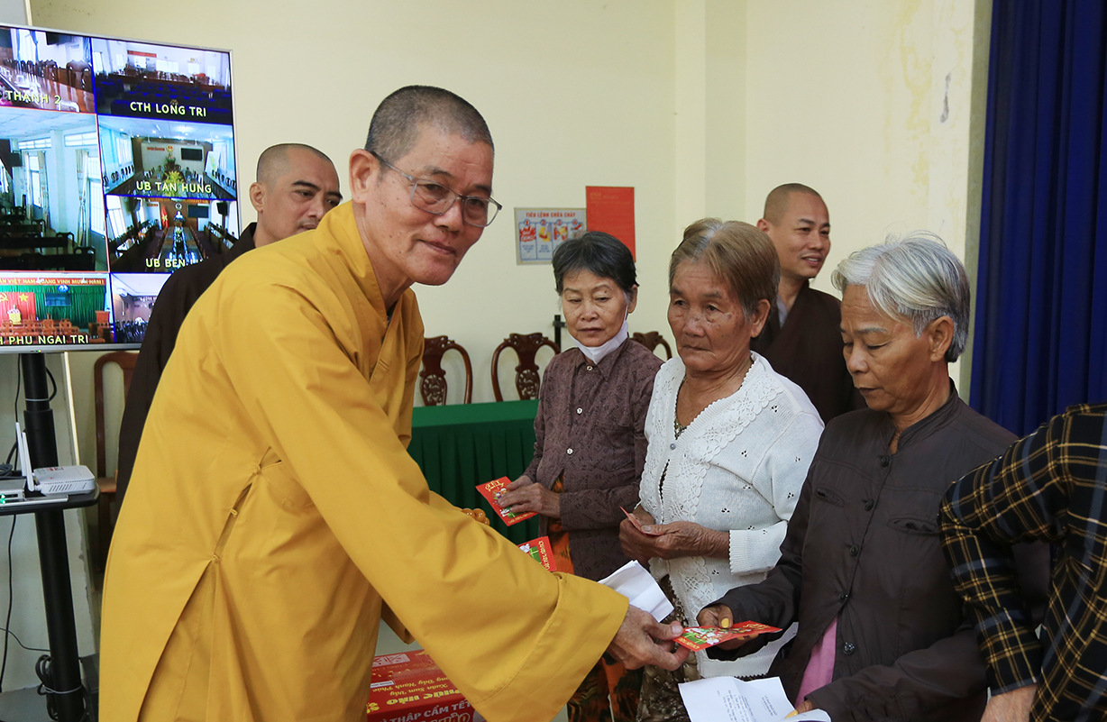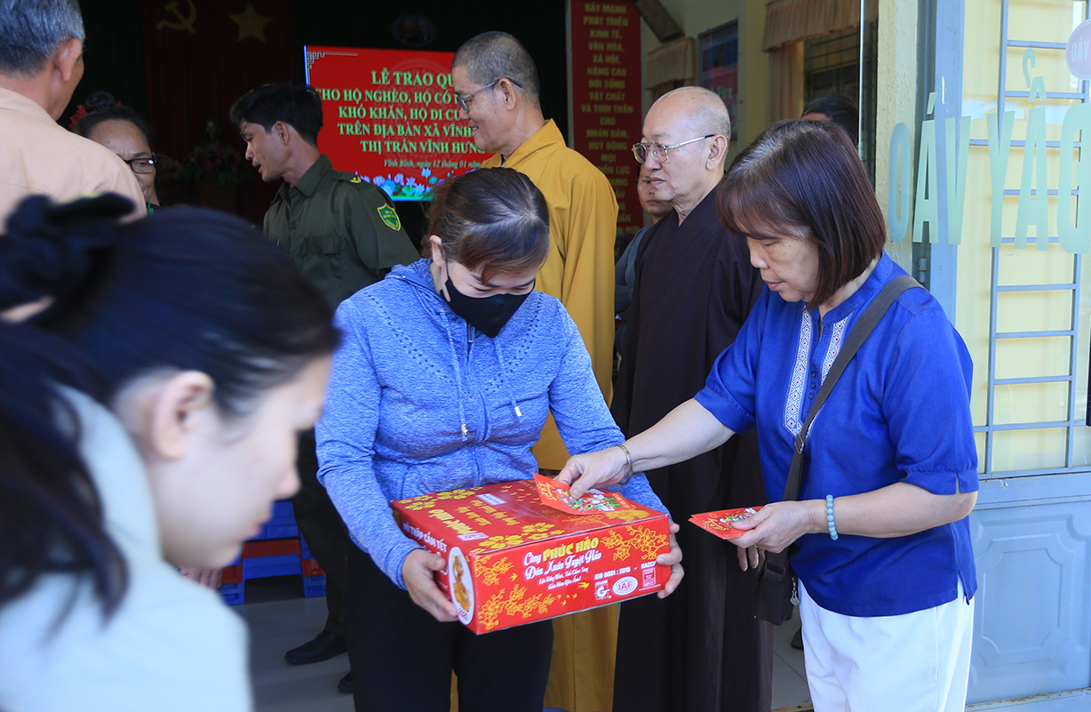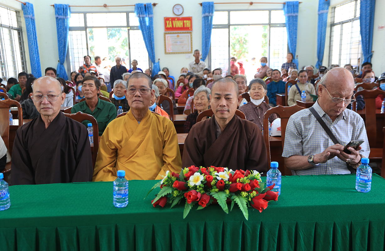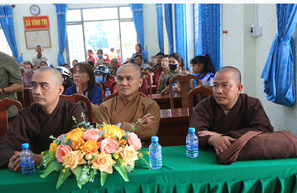 Tham dự buổi tặng quà có: TT. Thích Quảng Tâm – UV HĐTS, Phó ban Từ thiện xã hội TƯ, Phó Thường trực BTS GHPGVN tỉnh Long An; TT. Thích Lệ Tấn – Ủy viên Thường trực BTS GHPGVN tỉnh Long An, Trưởng BTS GHPGVN huyện Tân Thạnh; TT. Thích An Khang – Ủy viên Thường trực BTS GHPGVN tỉnh, Trưởng BTS GHPGVN huyện Vĩnh Hưng; cùng Chư Tôn đức Tăng.