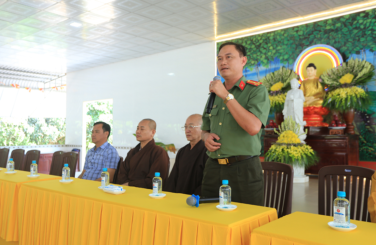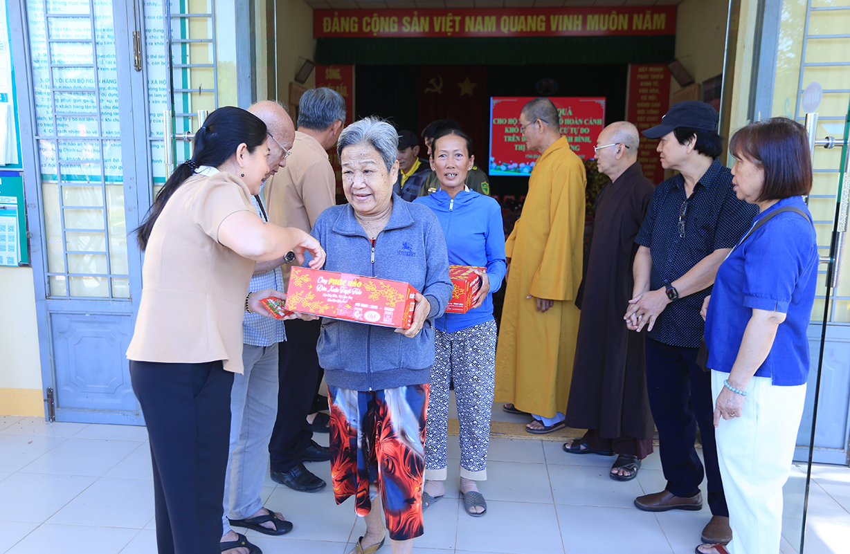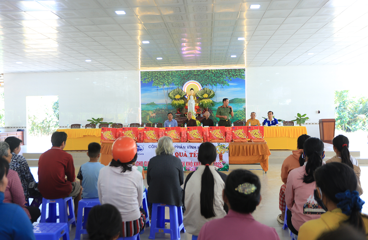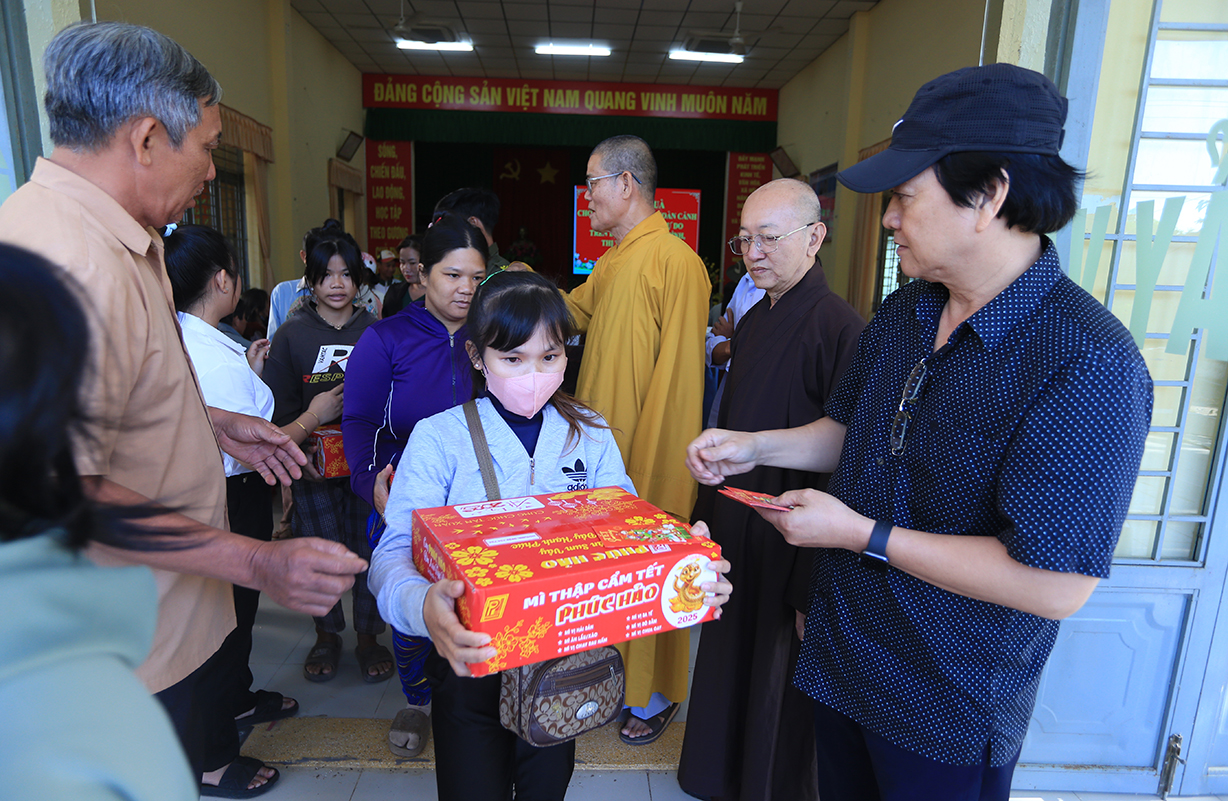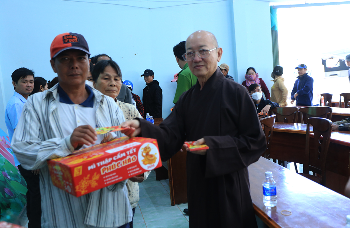 Tại các điểm đến TT Thích Quảng Tâm thay mặt phái đoàn Thường trực Ban Trị Sự GHPGVN tỉnh gửi lời chúc Xuân tốt đẹp của HT Thích Minh Thiện- Ủy viên HĐTSTƯ, Phó Ban Hoằng Pháp trung ương, Trưởng Ban Trị sự GHPGVN tỉnh đến quý cấp lãnh đạo Chính quyền và bà con nhân dân địa phương. Đồng thời tri ân quý cấp lãnh đạo Chính quyền đã tạo điều kiện thuận lợi để phái đoàn gặp gỡ trao quà đến bà con. Thượng tọa tri ân phái đoàn Y Bác sĩ Phạm Văn Bắc, Công ty Cổ phần Vĩnh Hoàn đã đồng hành cùng Phật giáo tỉnh nhà hỗ trợ quà làm thiện sự. Thượng tọa mong muốn bà con sang năm mới công việc hanh thông cố gắng làm ăn để đời sống ổn định và phát triển tốt đẹp hơn.