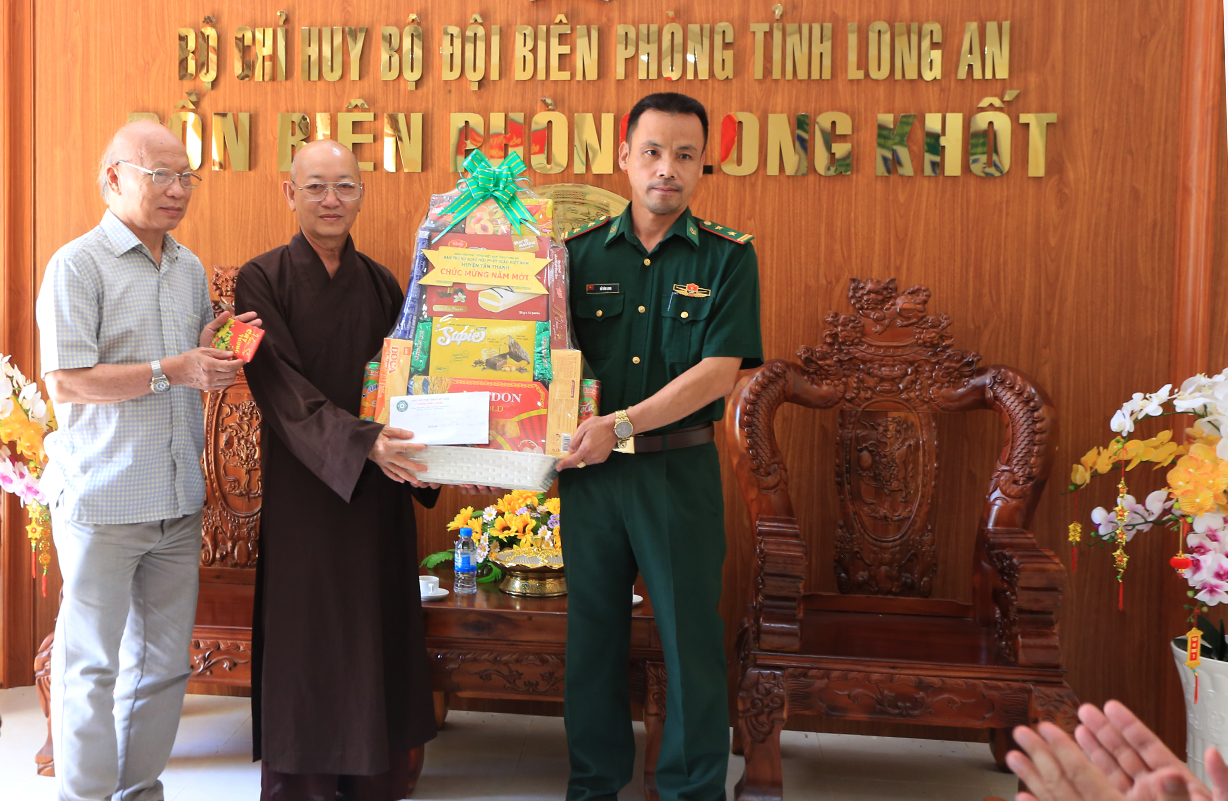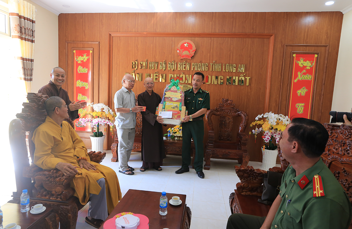 Sau đó, đoàn đến thăm chúc tết tặng quà các chiến sĩ Biên phòng đang làm nhiệm vụ bảo vệ biên giới phần quà trị giá 10.000.000 đồng (mười triệu đồng).