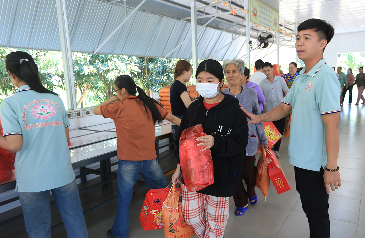 Sáng ngày 13/01/2024 (nhằm ngày 14/12/Giáp Thìn), Ban Trị sự GHPGVN tỉnh Long An phối hợp Công an huyện Vĩnh Hưng, UBND xã Vĩnh Bình, Xã Thái Trị, Thái Bình Trung, Xã Vĩnh Trị, Phật tử đạo tràng Khánh Hưng cùng Đoàn bác sĩ từ TP.HCM đã tổ chức trao quà cho hộ nghèo, hộ khó khăn, hộ di cư từ Campuchia về sinh sống trên địa bàn tỉnh các xã trên địa bàn huyện Vĩnh Hưng, tỉnh Long An.
