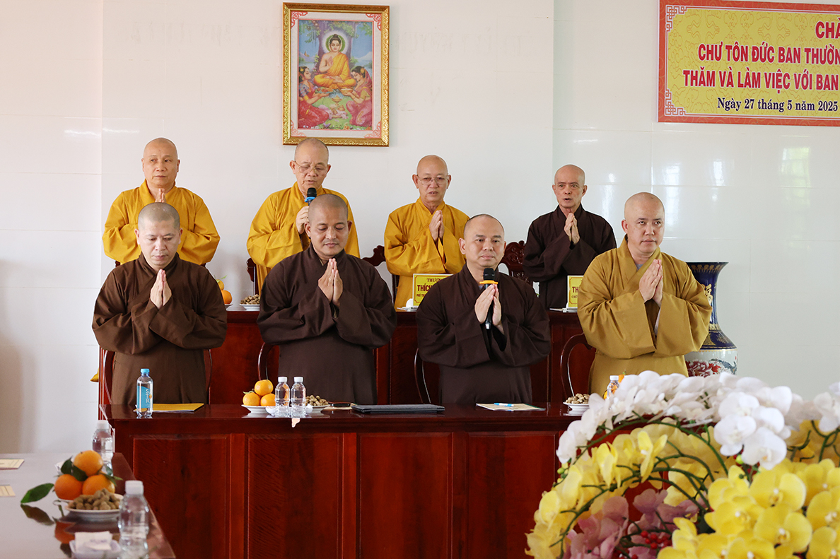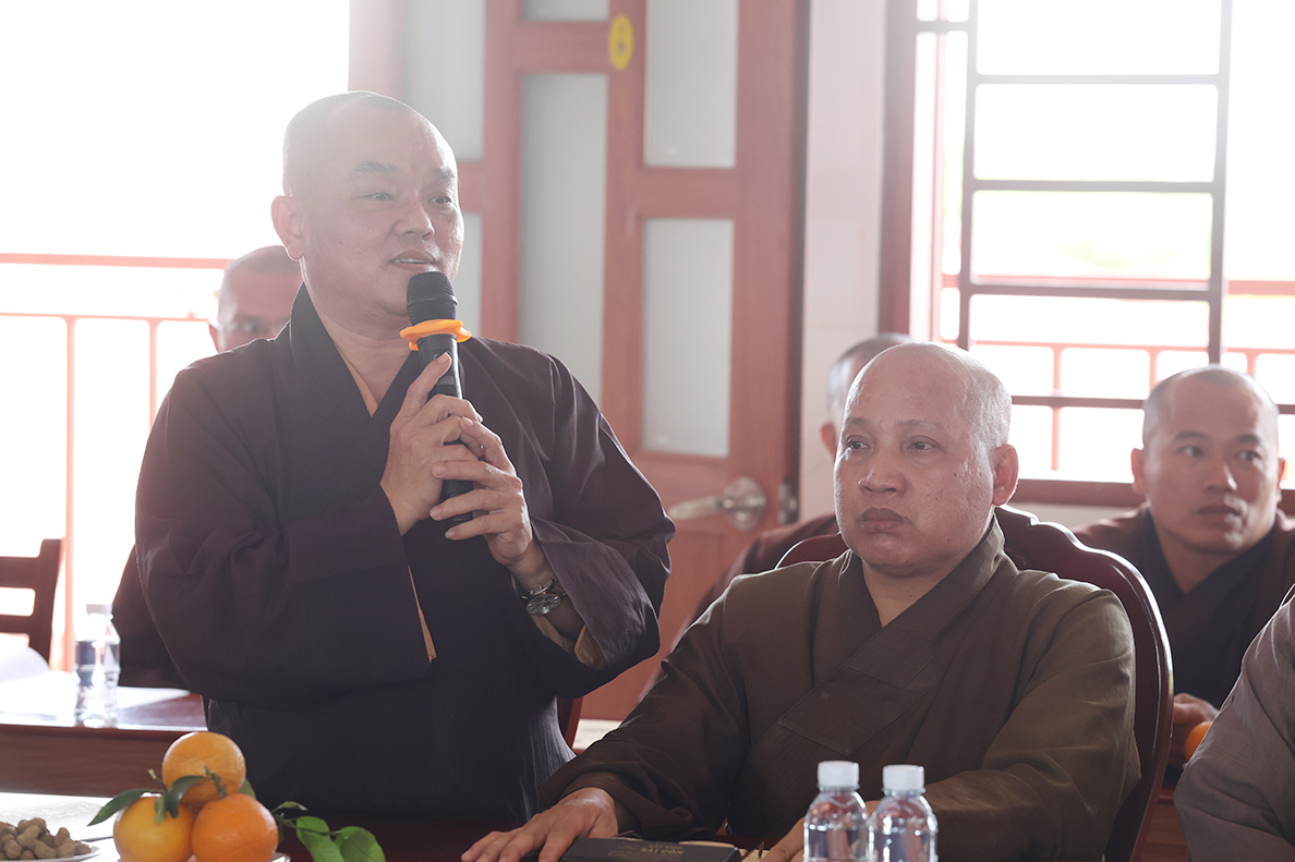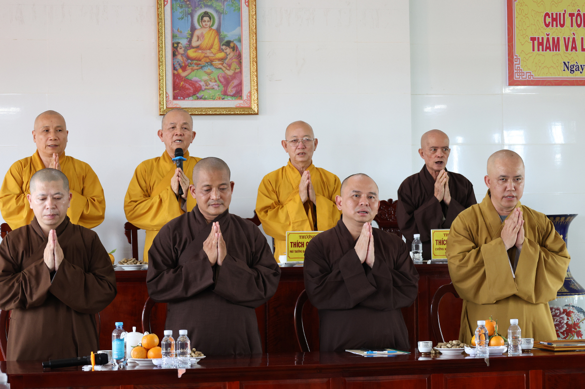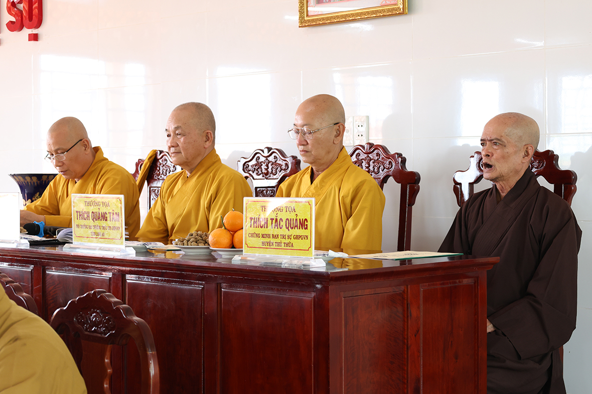 Tháp tùng phái đoàn có chư Tôn đức lãnh đạo Ban Thường trực BTS GHPGVN tỉnh: Thượng tọa Thích Quảng Tâm, Thượng tọa Thích Đức Hoàng, Đại đức Thích Lệ Duyên, Đại đức Thích Lệ Ngôn, Đại đức Thích Thiện Danh.