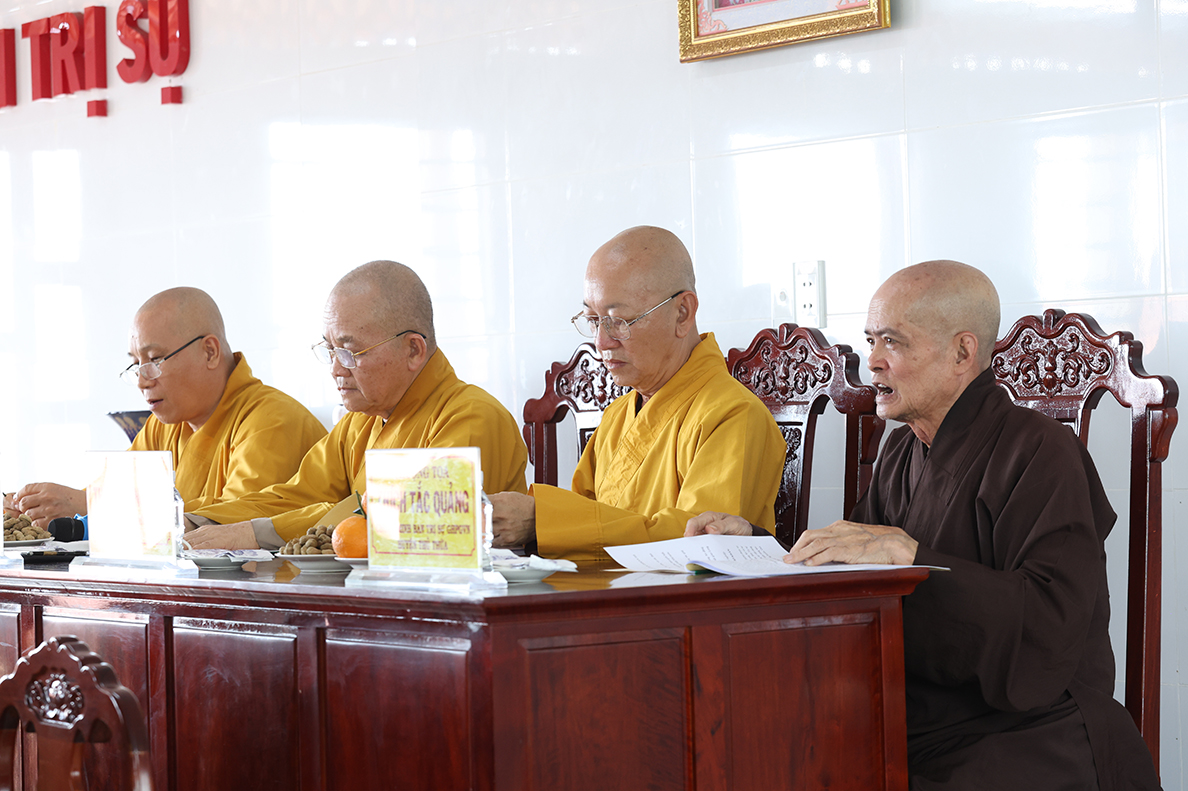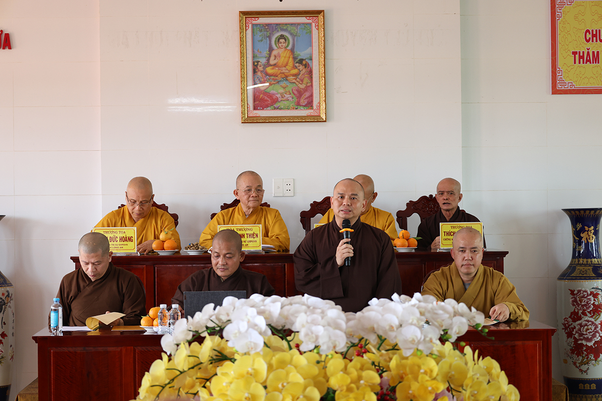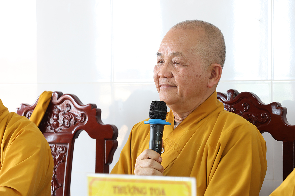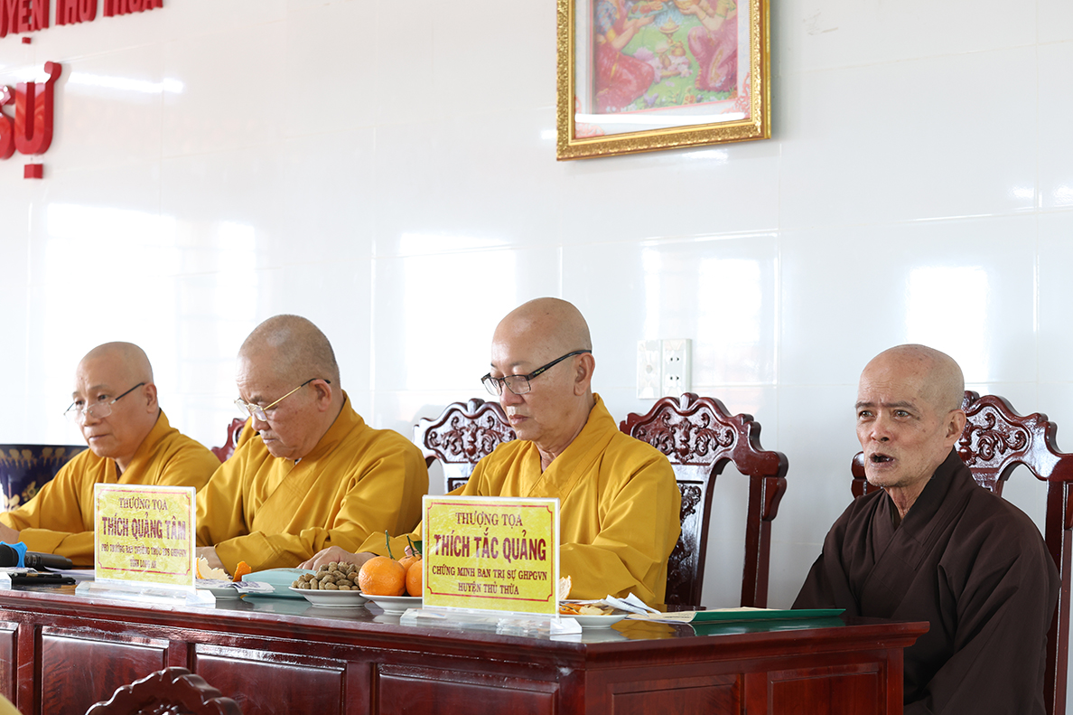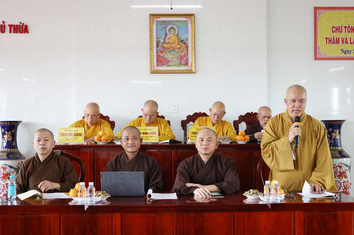 Phát biểu tại buổi họp, Thượng tọa Thích Quảng Tâm thay mặt BTS tỉnh đã đúc kết hoạt động Phật sự nhiệm kỳ X và ghi nhận các ý kiến đóng góp thiết thực của chư Tôn đức huyện Thủ Thừa nhằm củng cố và phát triển Phật sự địa phương.