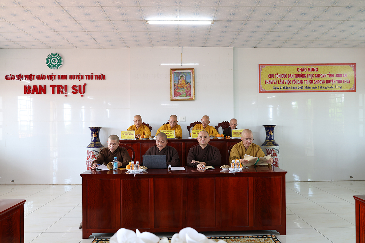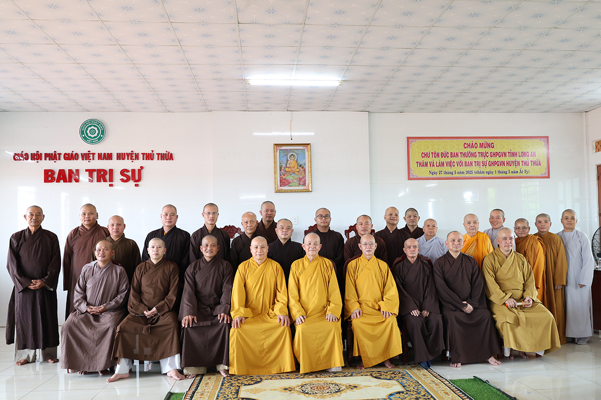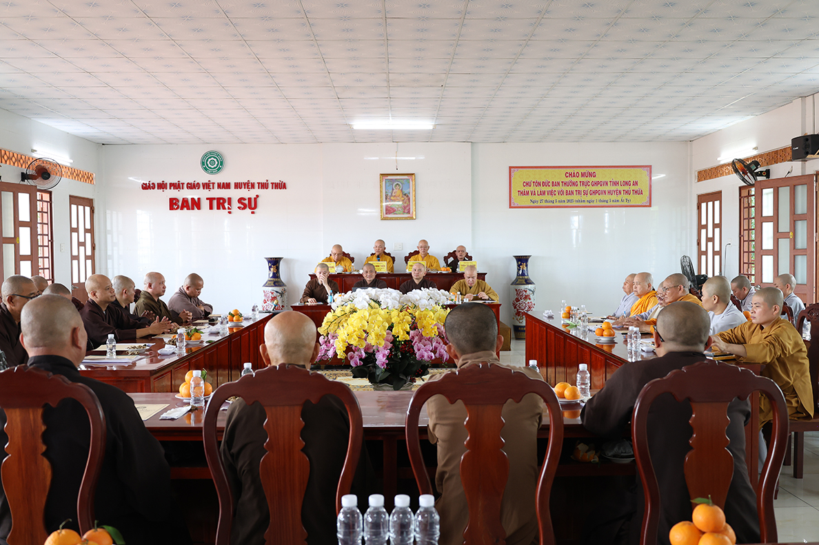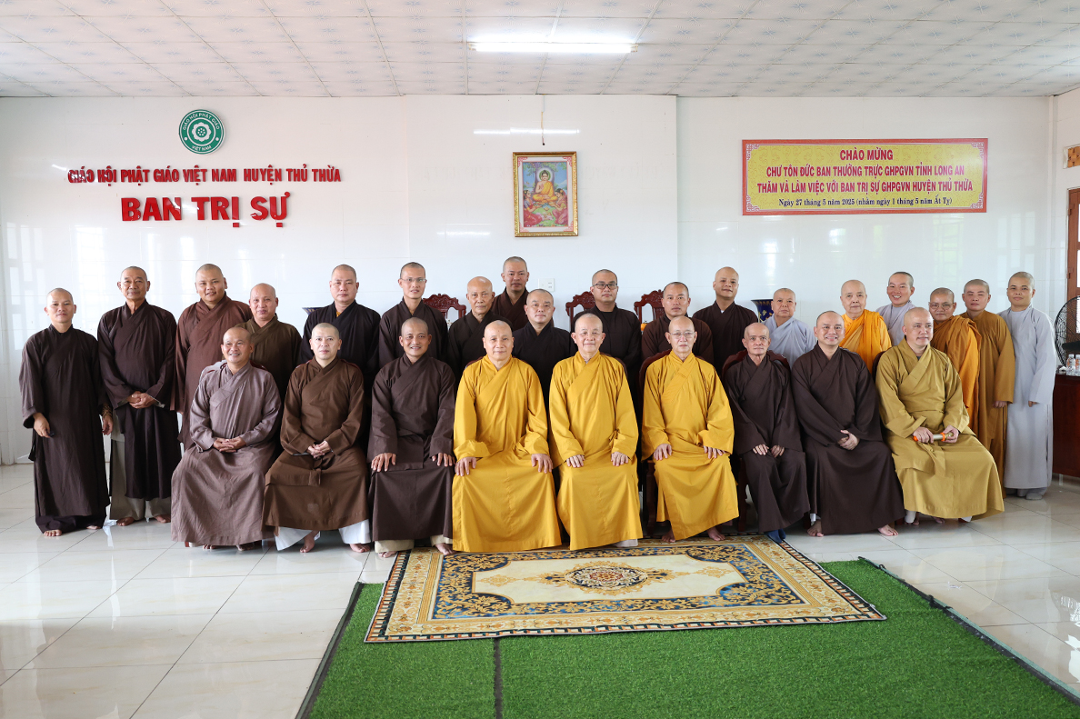 Tiếp đón đoàn, về phía BTS GHPGVN huyện Thủ Thừa có Hòa thượng Thích Tắc Quảng – Chứng minh BTS huyện; Đại đức Thích An Nhựt – Trưởng BTS GHPGVN huyện Thủ Thừa; cùng chư Tôn đức Tăng Ni trụ trì các tự viện trong huyện.