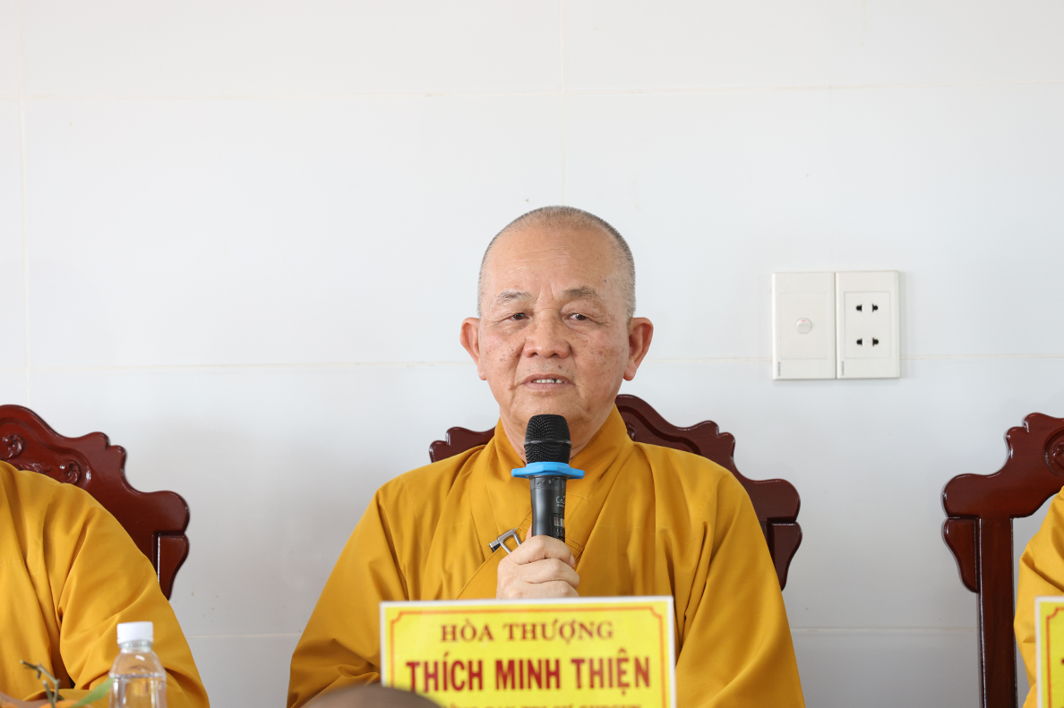 Trong phần đạo từ chỉ đạo, Hòa thượng Thích Minh Thiện đánh giá cao tinh thần đoàn kết, trách nhiệm và sự dấn thân của Tăng Ni, Phật tử huyện Thủ Thừa trong công cuộc phát triển Phật giáo. Hòa thượng nhấn mạnh vai trò hộ quốc an dân, gìn giữ giới luật và phát huy truyền thống tốt đẹp của đạo Phật trong thời đại mới, đồng thời định hướng tập trung vào các lĩnh vực trọng tâm: hoằng pháp phù hợp xu thế mới, giáo dục Tăng tài và từ thiện xã hội.
