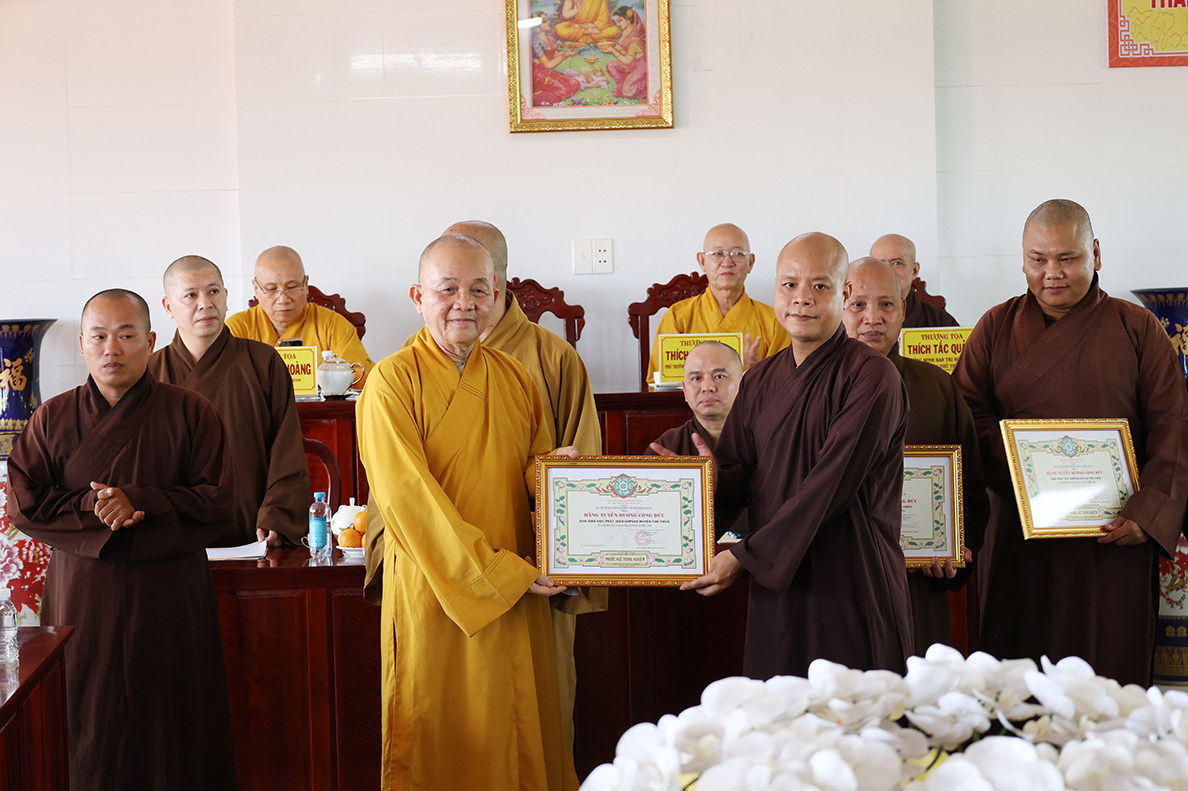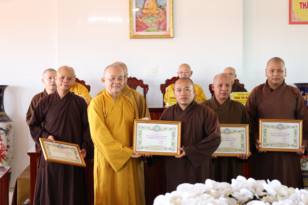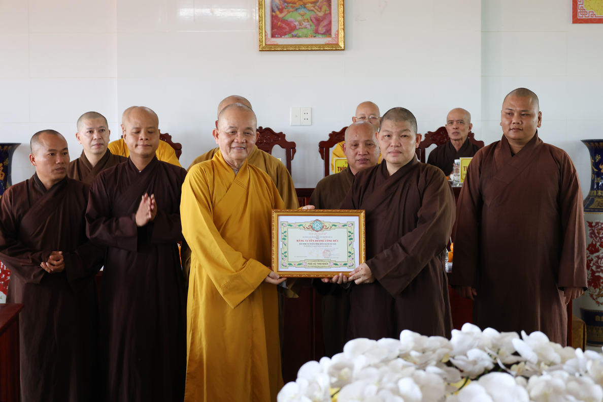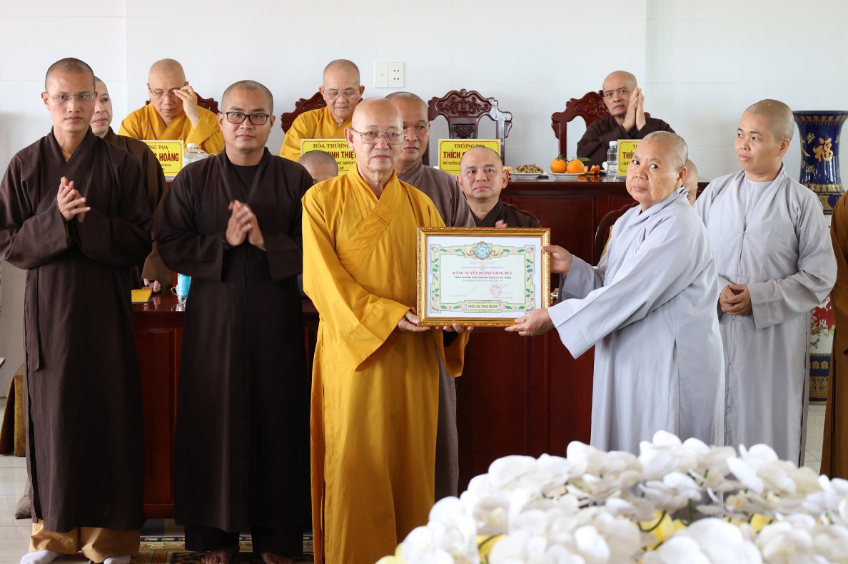 Nhân dịp này, BTS GHPGVN tỉnh Long An đã trao bằng tuyên dương công đức đến các cá nhân và tập thể đã hoàn thành xuất sắc công tác Phật sự nhiệm kỳ 2021 – 2025.