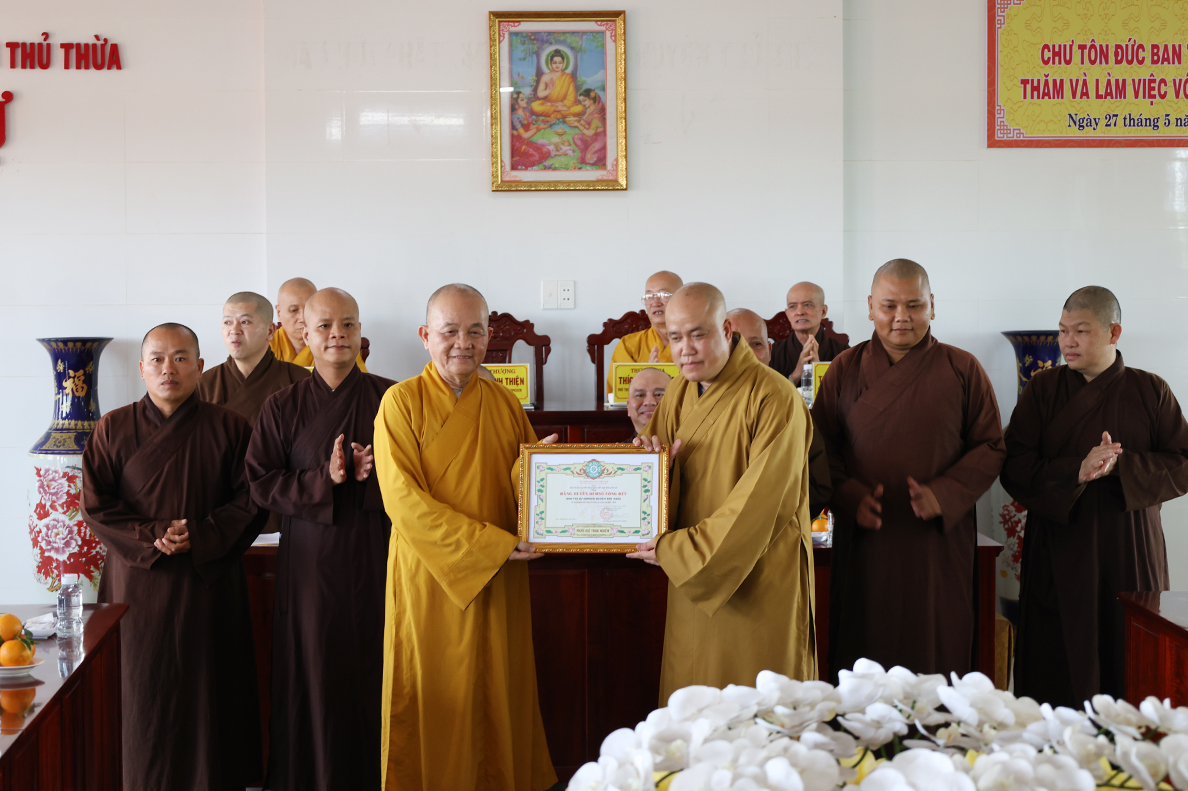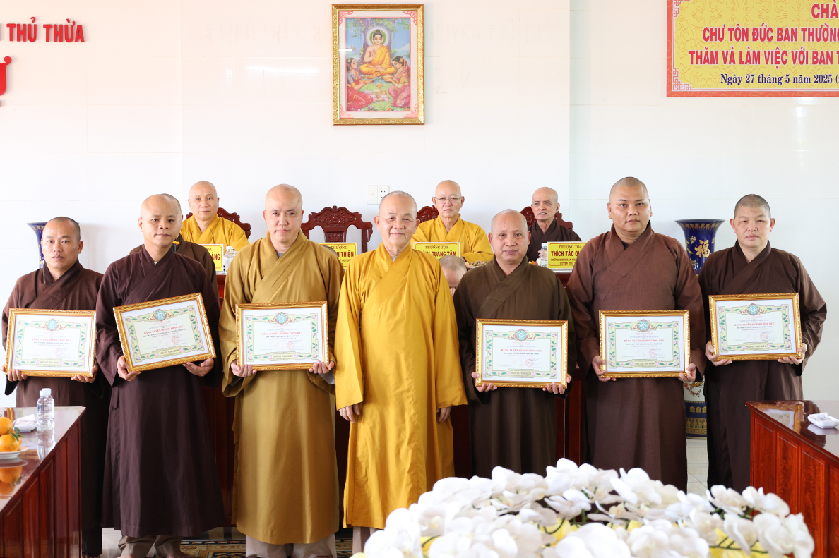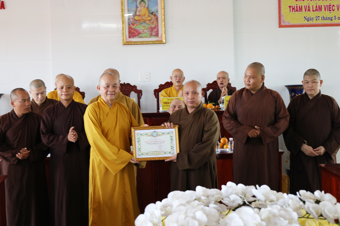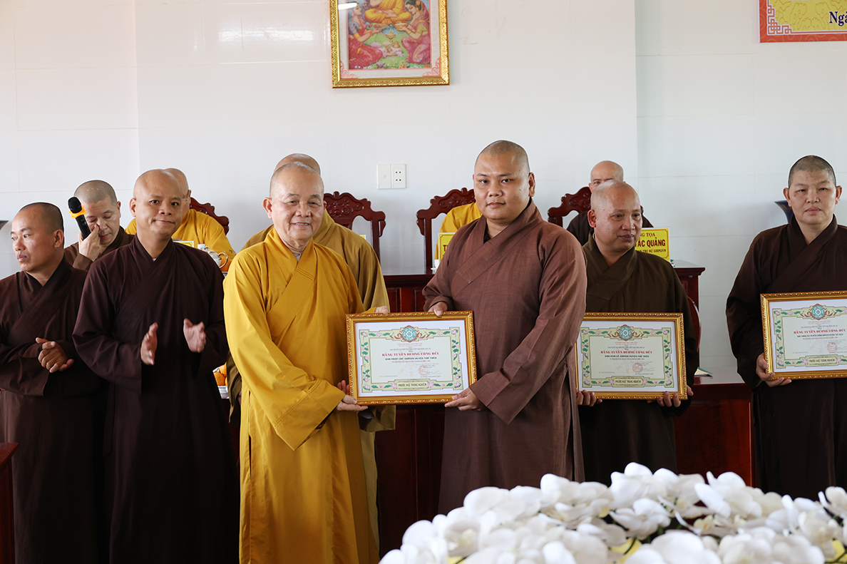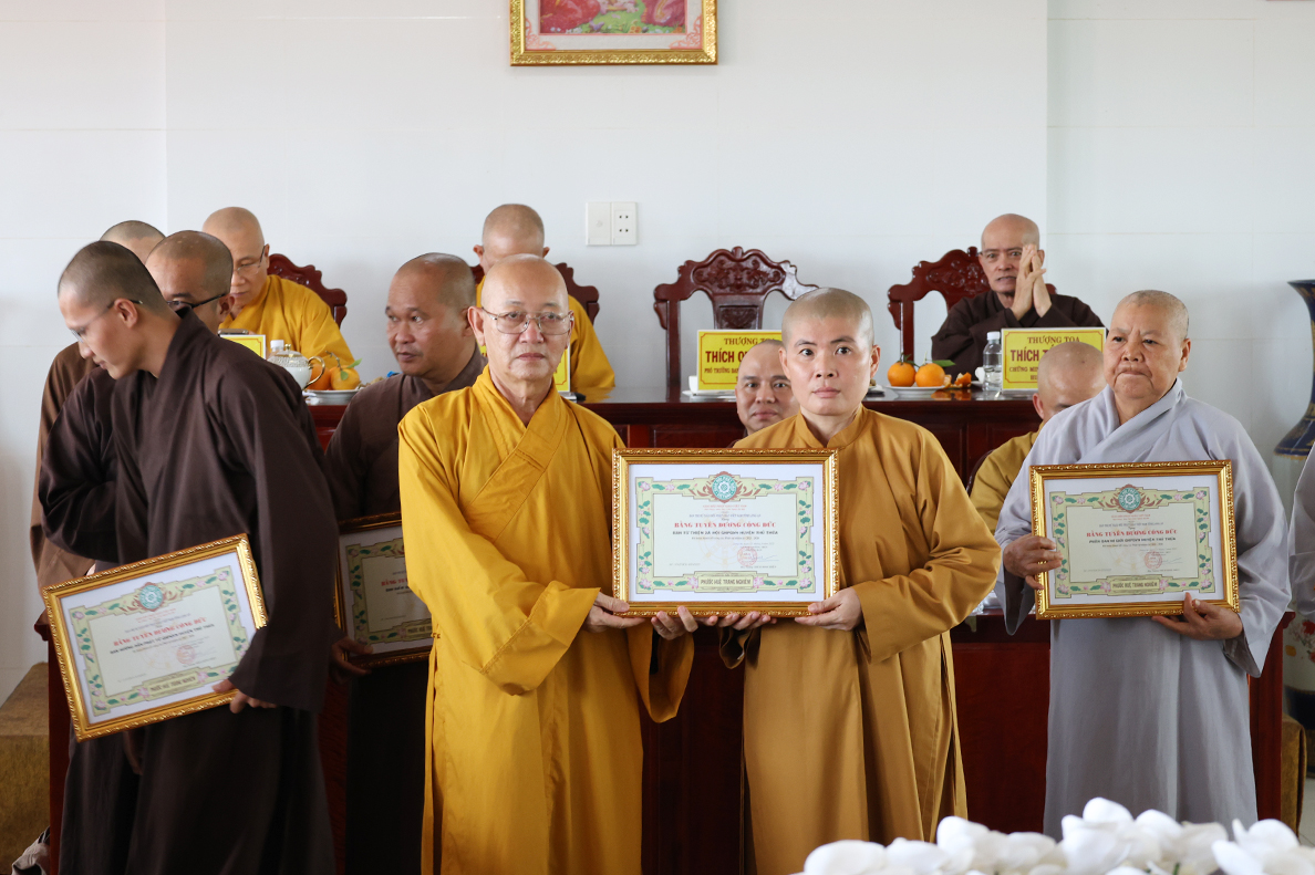 Nhân dịp này, BTS GHPGVN tỉnh Long An đã trao bằng tuyên dương công đức đến các cá nhân và tập thể đã hoàn thành xuất sắc công tác Phật sự nhiệm kỳ 2021 – 2025.