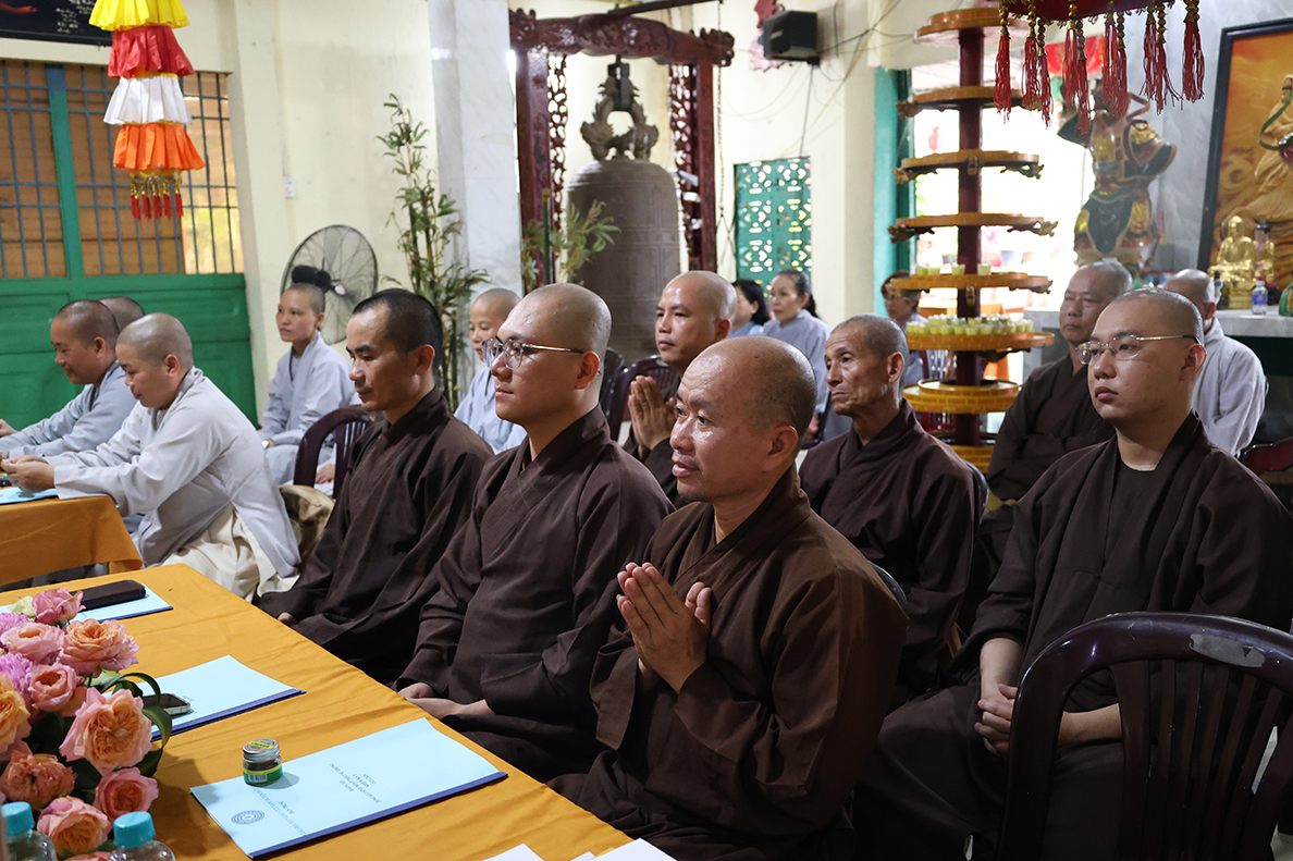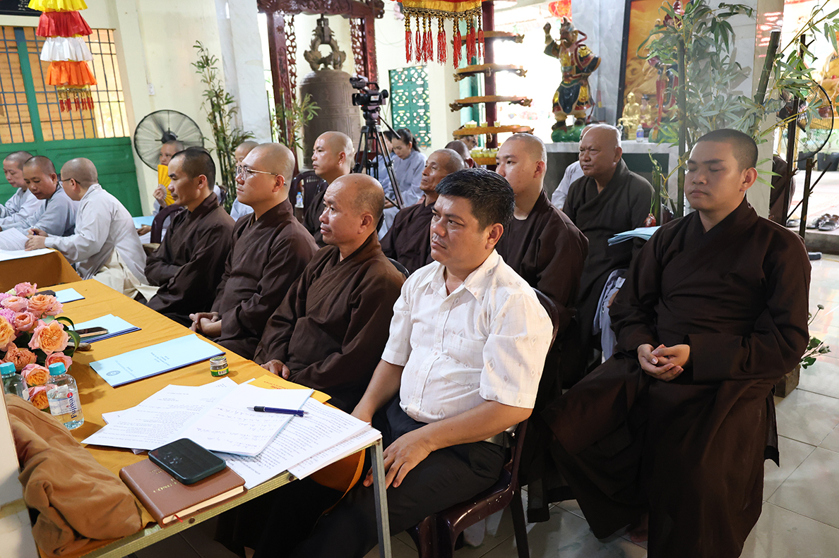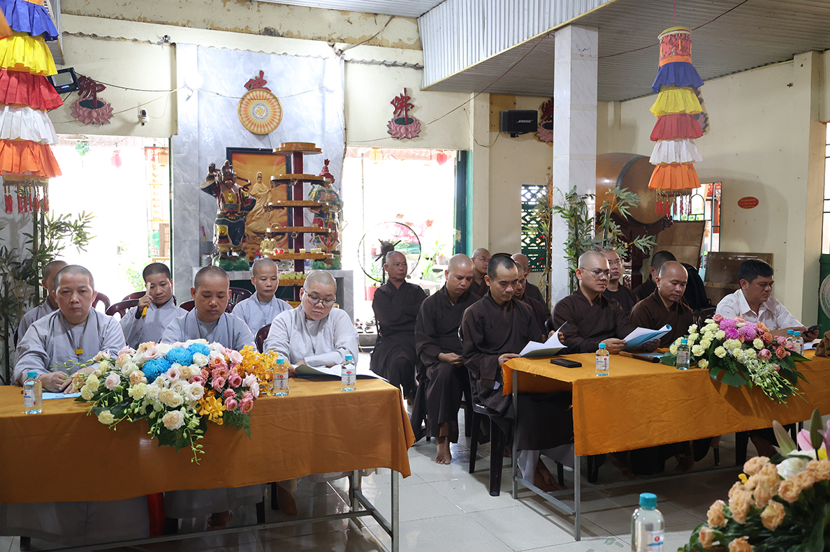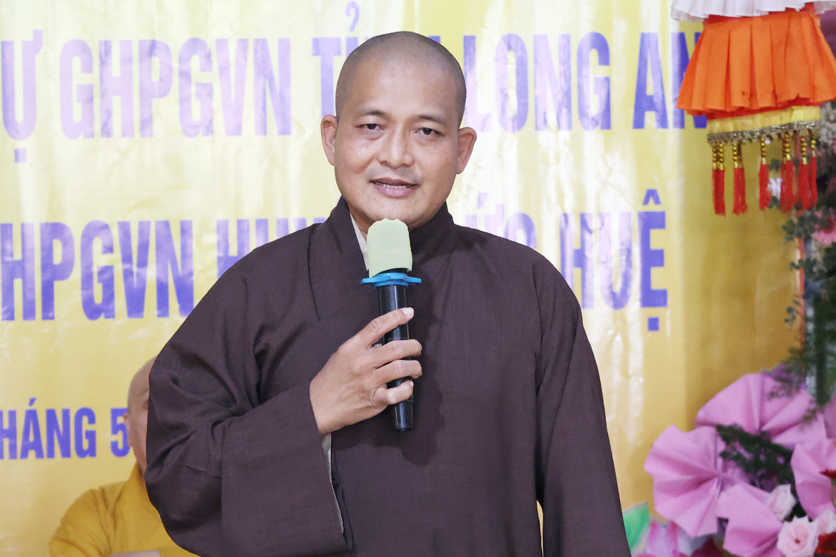 Thay mặt BTS GHPGVN huyện Đức Huệ, Đại đức Thích Thiện An đã trình bày báo cáo khái quát những thành tựu Phật sự trong nhiệm kỳ 2021 – 2026. Tuy Ban Trị sự huyện được thành lập vào năm 2021 nhưng nhờ có sự chỉ đạo của BTS GHPGVN tỉnh Long An, Phật giáo huyện Đức Huệ đã đạt được những thành tựu nhất định. Theo đó, trên địa bàn huyện Đức Huệ có 2 tự viện và 6 điểm sinh hoạt tôn giáo tập trung đang hoạt động với 32 Chư Tôn đức Tăng Ni tu học và sinh hoạt. Công tác hoằng pháp tại địa phương được chú trọng: có nhiều đạo tràng tu học như đạo tràng Bát quan trai, niệm Phật được tổ chức định kỳ hằng tháng. Ngoài ra, BTS GHPGVN huyện còn phối hợp với chính quyền địa phương thực hiện nhiều chương trình an sinh xã hội thiết thực. Nổi bật nhất là về công tác từ thiện và an sinh xã hội, Tăng Ni Phật tử huyện Đức Huệ đã đóng góp vào nhiều cầu giao thông, nhà tình nghĩa, phát quà cho hộ nghèo, học bổng cho học sinh nghèo,… Tổng giá trị từ thiện xã hội trong 4 năm đầu nhiệm kỳ đạt hơn 7 tỷ đồng.