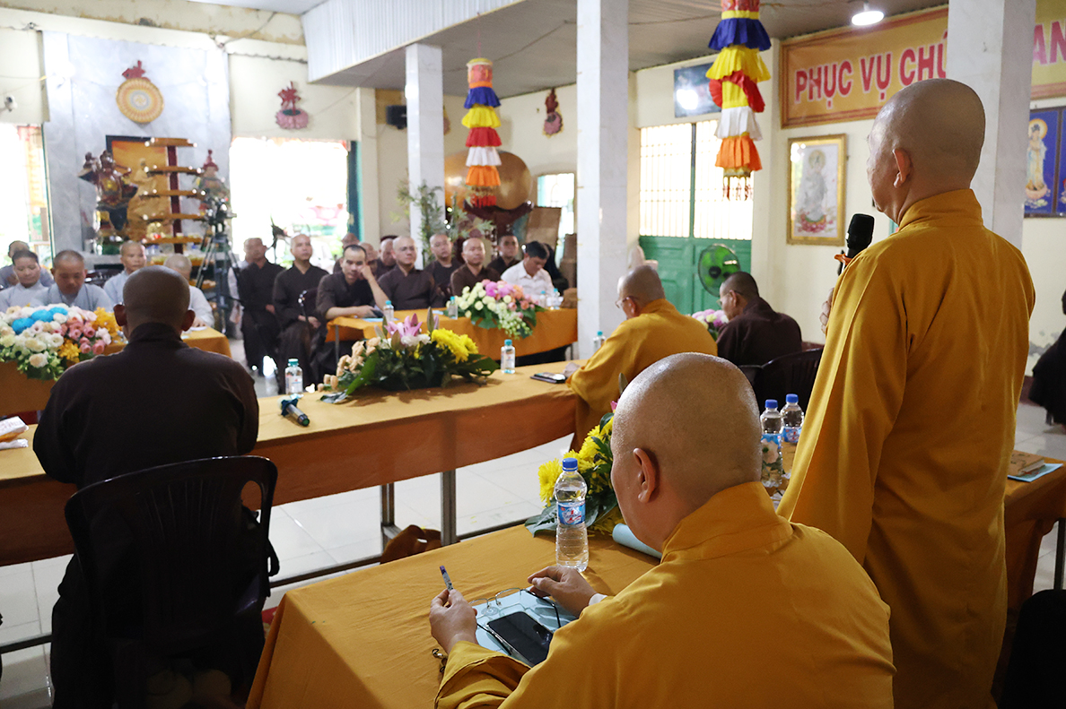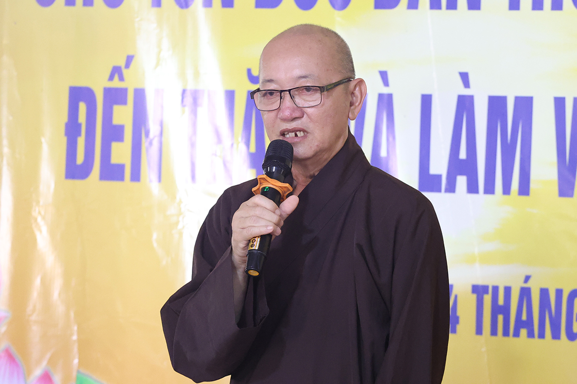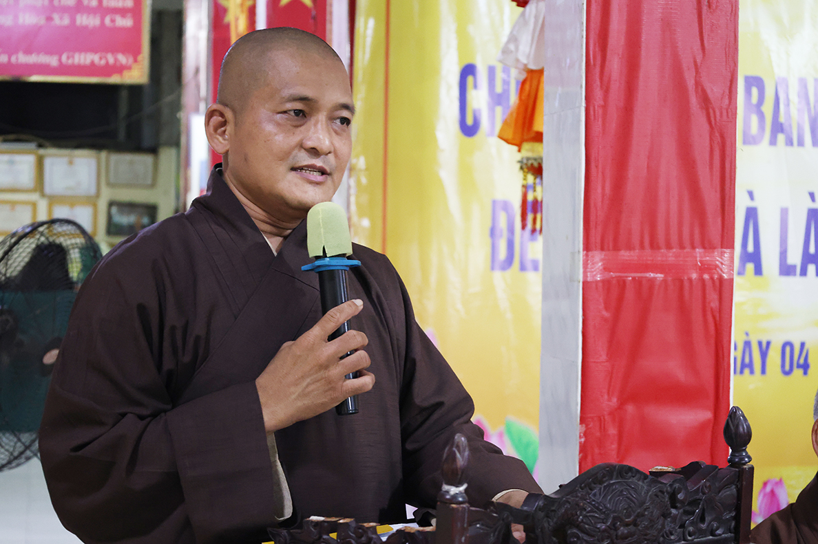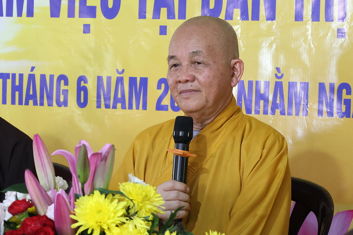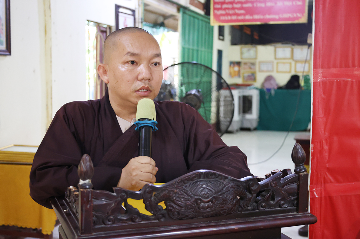 Tiếp đó, TT. Thích Quảng Tâm – Phó Trưởng Ban Thường trực BTS GHPGVN tỉnh cũng đã có lời phát biểu báo cáo khái quát hoạt động nhiệm kỳ qua và đúc kết ý kiến đóng góp của Chư Tôn đức Phật giáo huyện Đức Huệ.