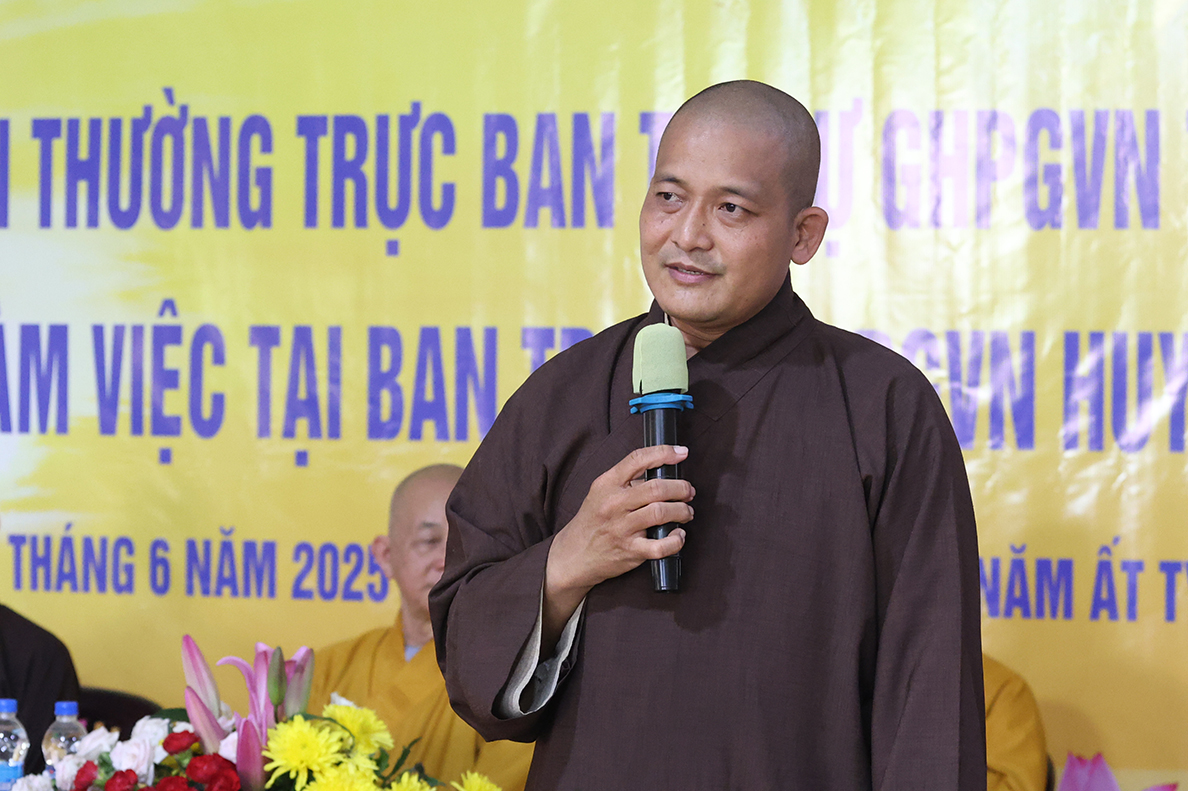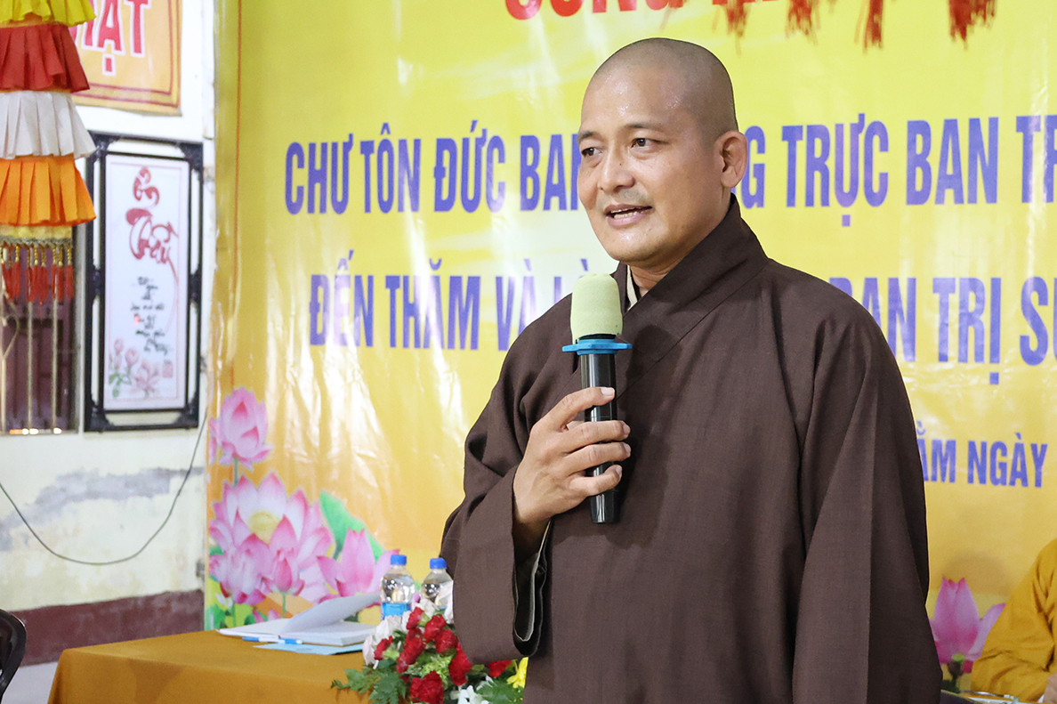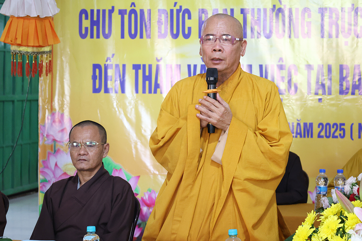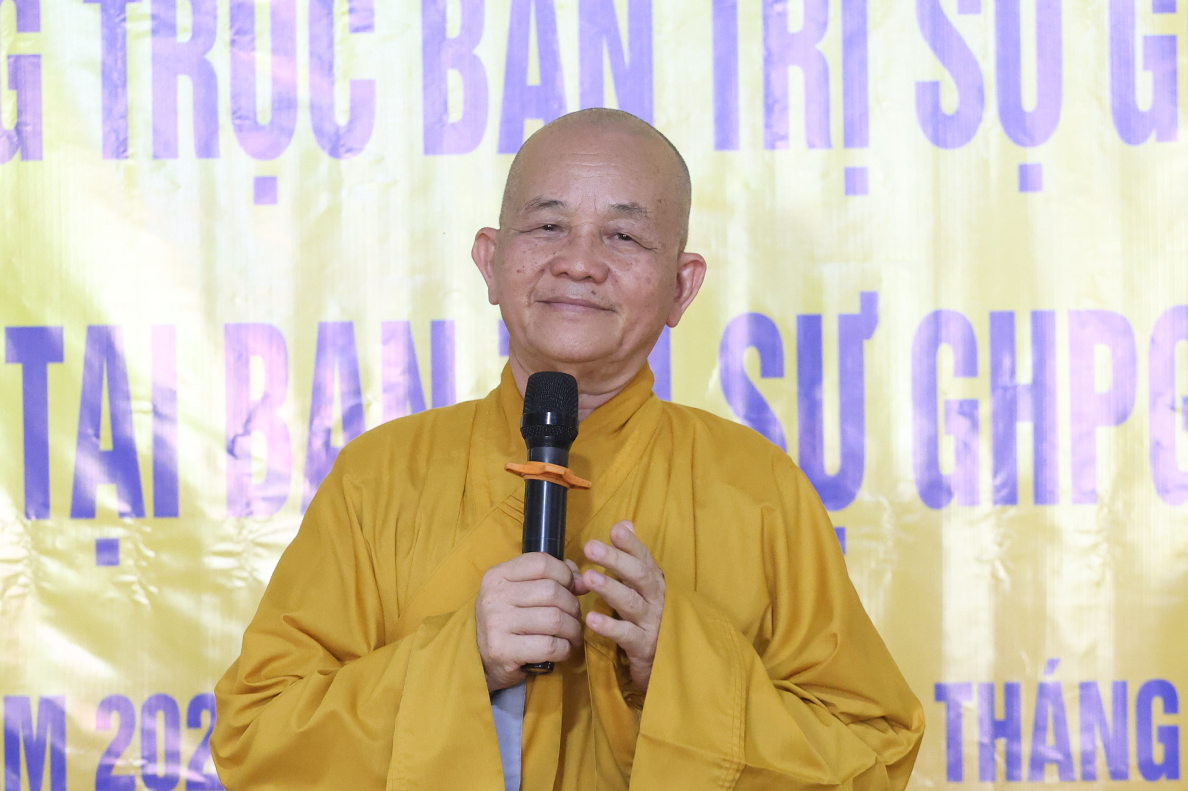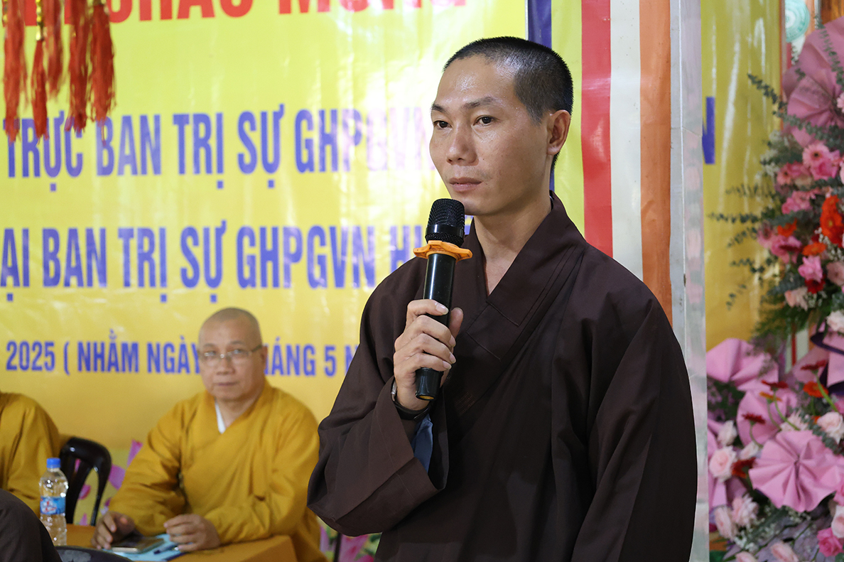 Tiếp đó, TT. Thích Quảng Tâm – Phó Trưởng Ban Thường trực BTS GHPGVN tỉnh cũng đã có lời phát biểu báo cáo khái quát hoạt động nhiệm kỳ qua và đúc kết ý kiến đóng góp của Chư Tôn đức Phật giáo huyện Đức Huệ.