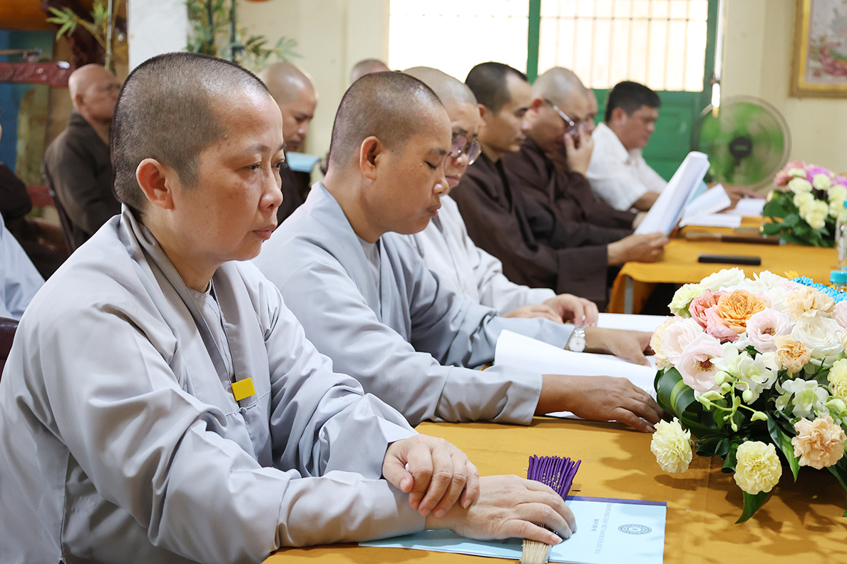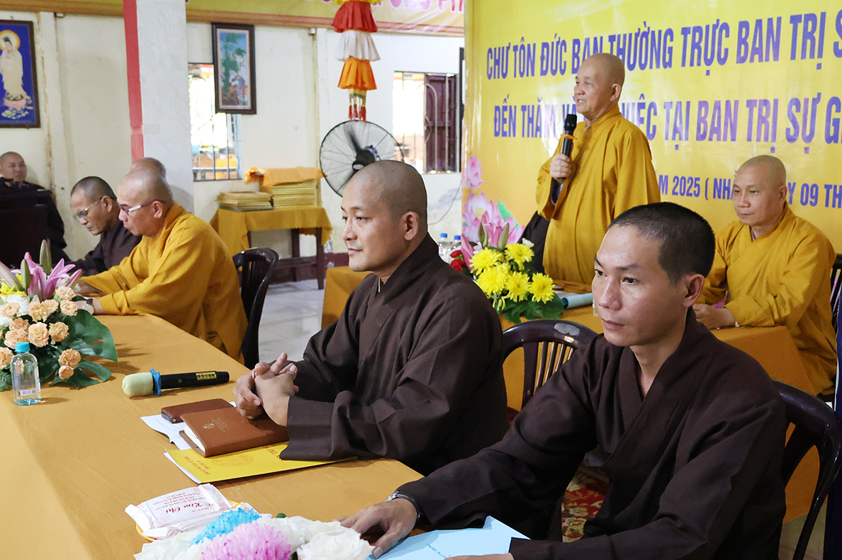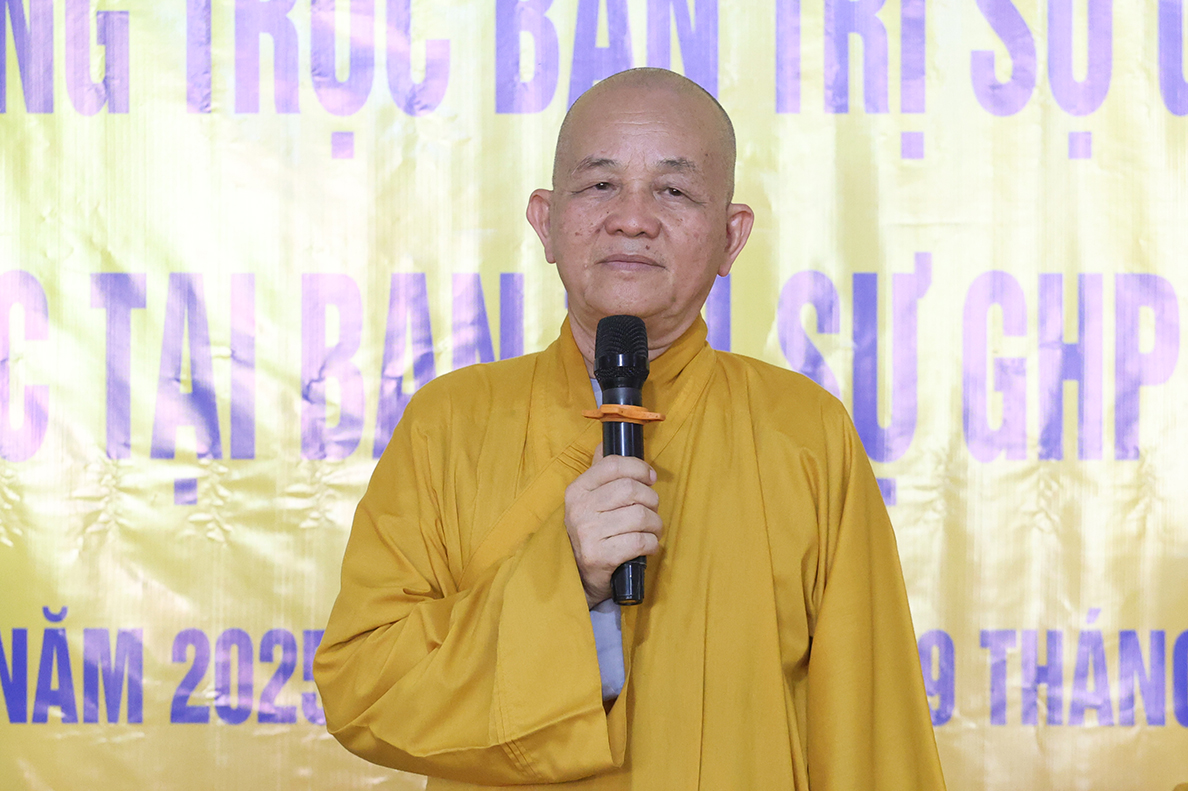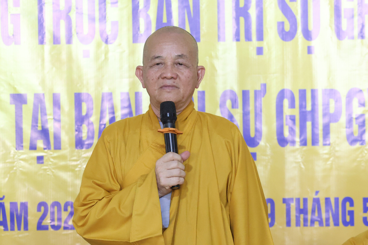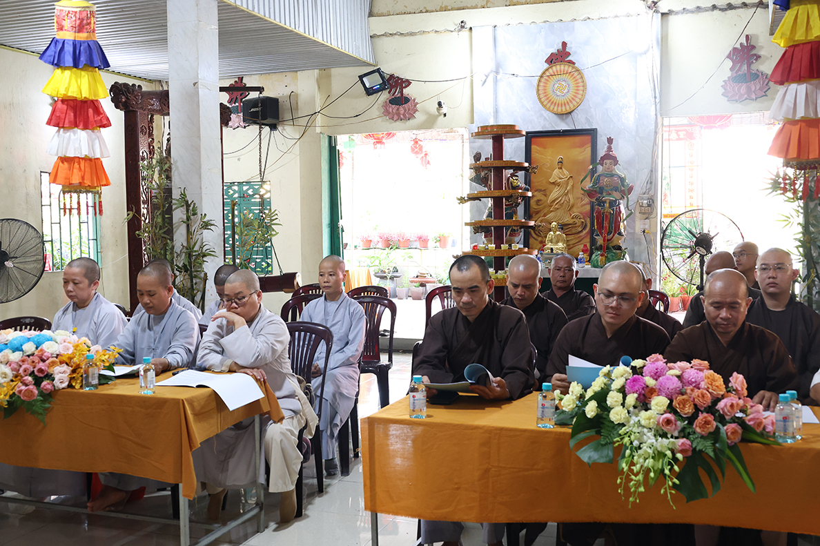 Tiếp đó, TT. Thích Quảng Tâm – Phó Trưởng Ban Thường trực BTS GHPGVN tỉnh cũng đã có lời phát biểu báo cáo khái quát hoạt động nhiệm kỳ qua và đúc kết ý kiến đóng góp của Chư Tôn đức Phật giáo huyện Đức Huệ.
