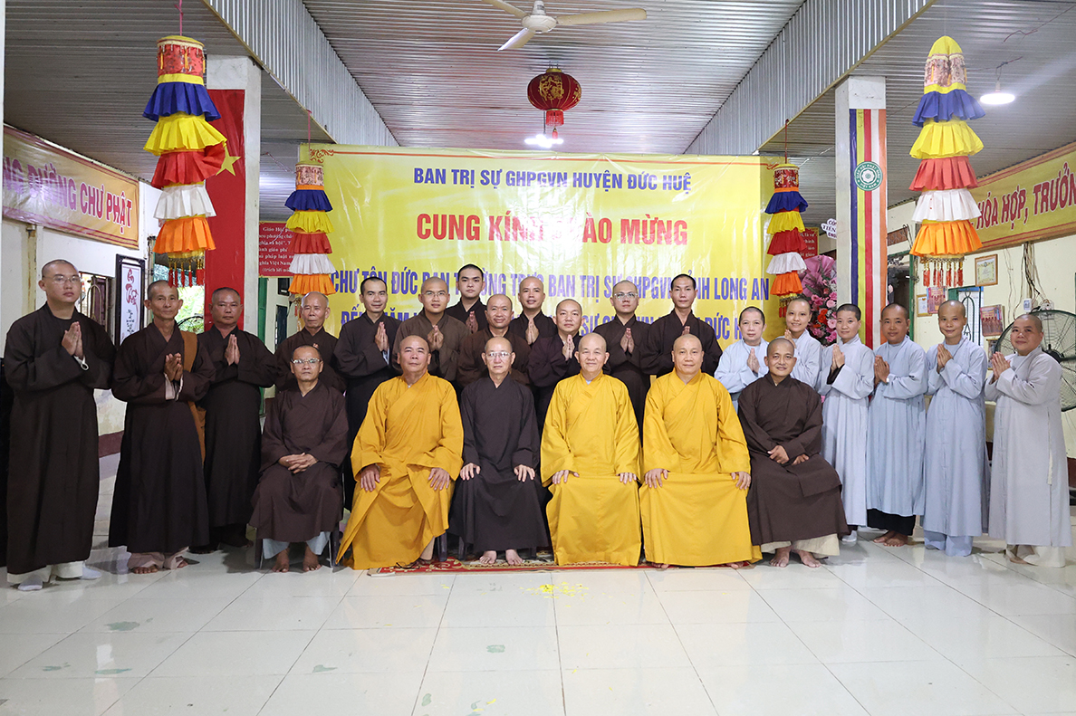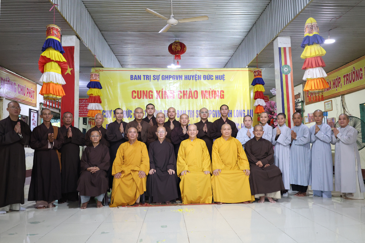 Đón tiếp phái đoàn, về phía BTS GHPGVN huyện Đức Huệ có: ĐĐ. Thích Thiện An – UV BTS GHPGVN tỉnh, Trưởng BTS GHPGVN huyện Đức Huệ; ĐĐ. Thích Minh Trí – Phó Trưởng Ban Thường trực BTS GHPGVN huyện Đức Huệ; ĐĐ. Thích Thiện Trực – Phó BTS kiêm Trưởng ban Từ thiện Xã hội GHPGVN huyện Đức Huệ; ĐĐ. Thích Minh Nguyệt – Phó BTS GHPGVN huyện Đức Huệ; Chư Tôn đức Ban Thường trực BTS GHPGVN huyện; Chư Tôn đức Tăng ni Trụ trì các tự viện, Điểm sinh hoạt và tu học trên địa bàn huyện về tham dự.