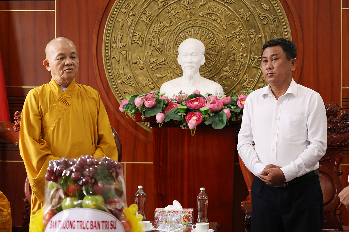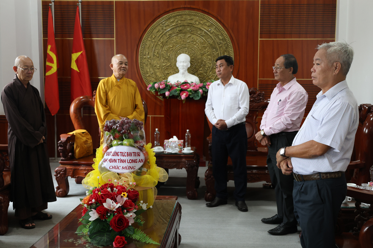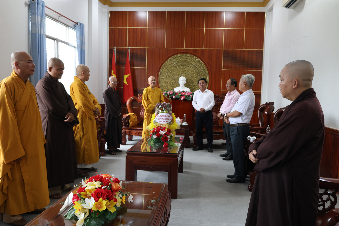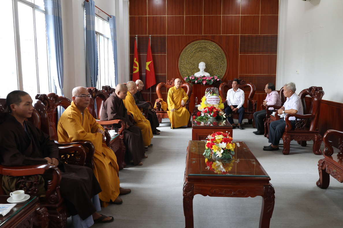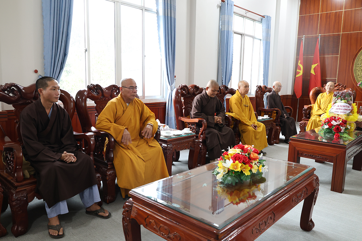 Trước đó, đoàn Ban Thường trực Ban Trị sựGHPGVN tỉnh Long An đến Huyện Ủy huyện Đức Huệ thăm quý cấp lãnh đạo huyện.