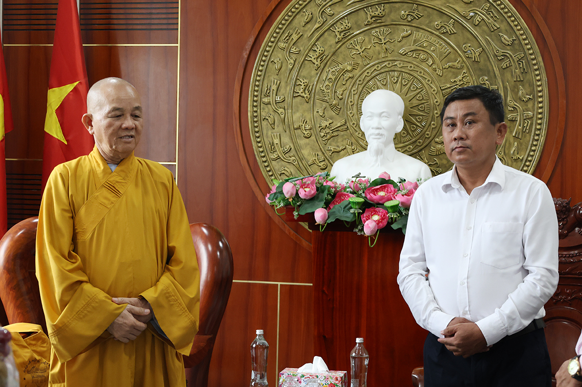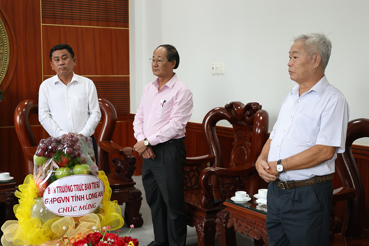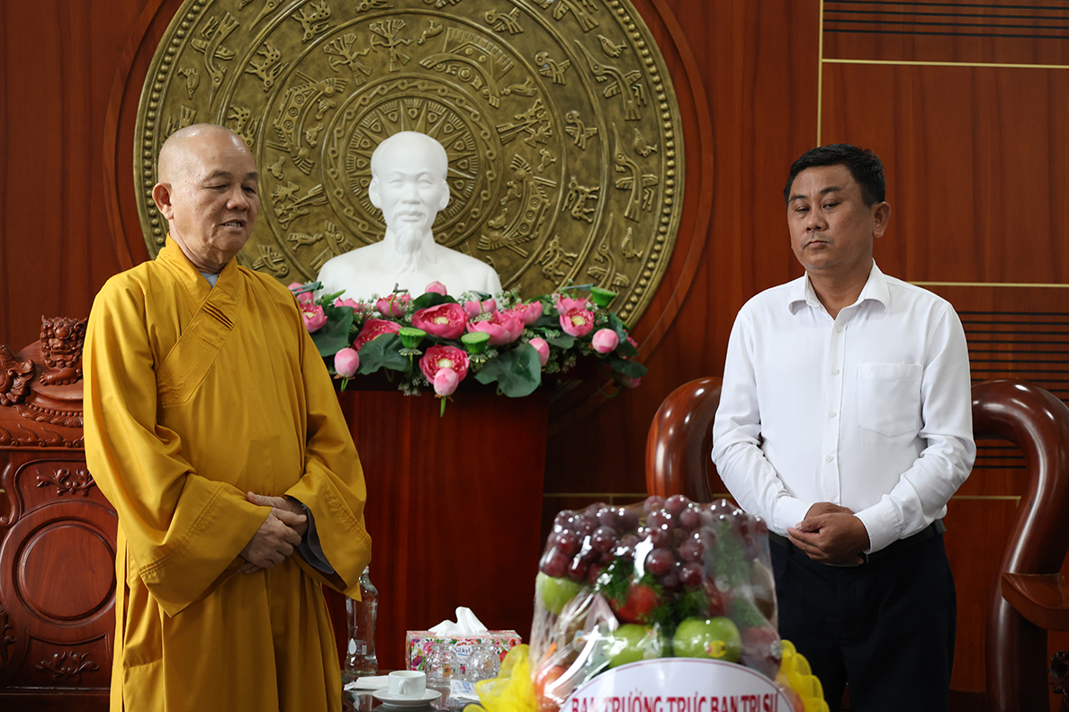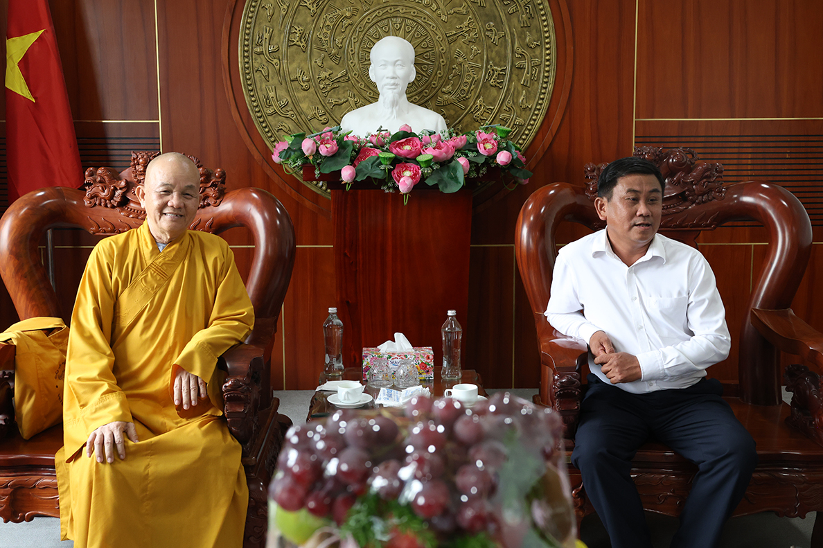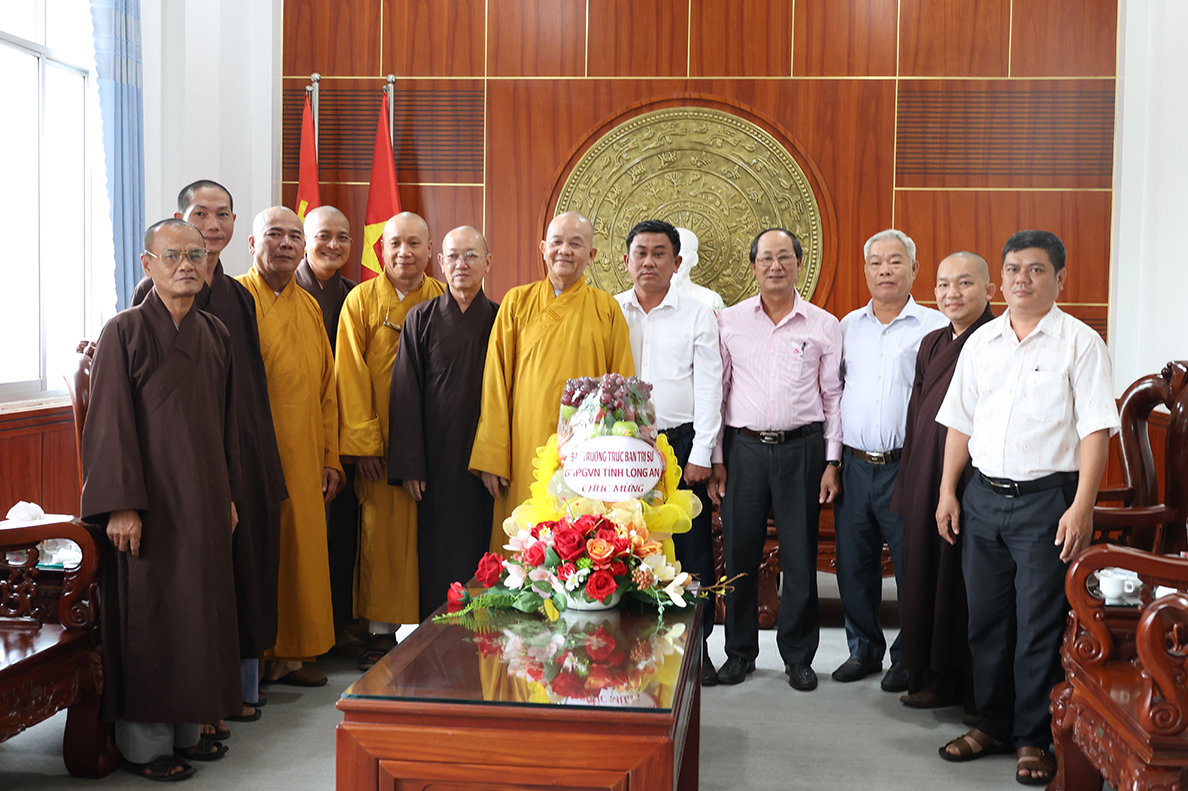 Trước đó, đoàn Ban Thường trực Ban Trị sựGHPGVN tỉnh Long An đến Huyện Ủy huyện Đức Huệ thăm quý cấp lãnh đạo huyện.