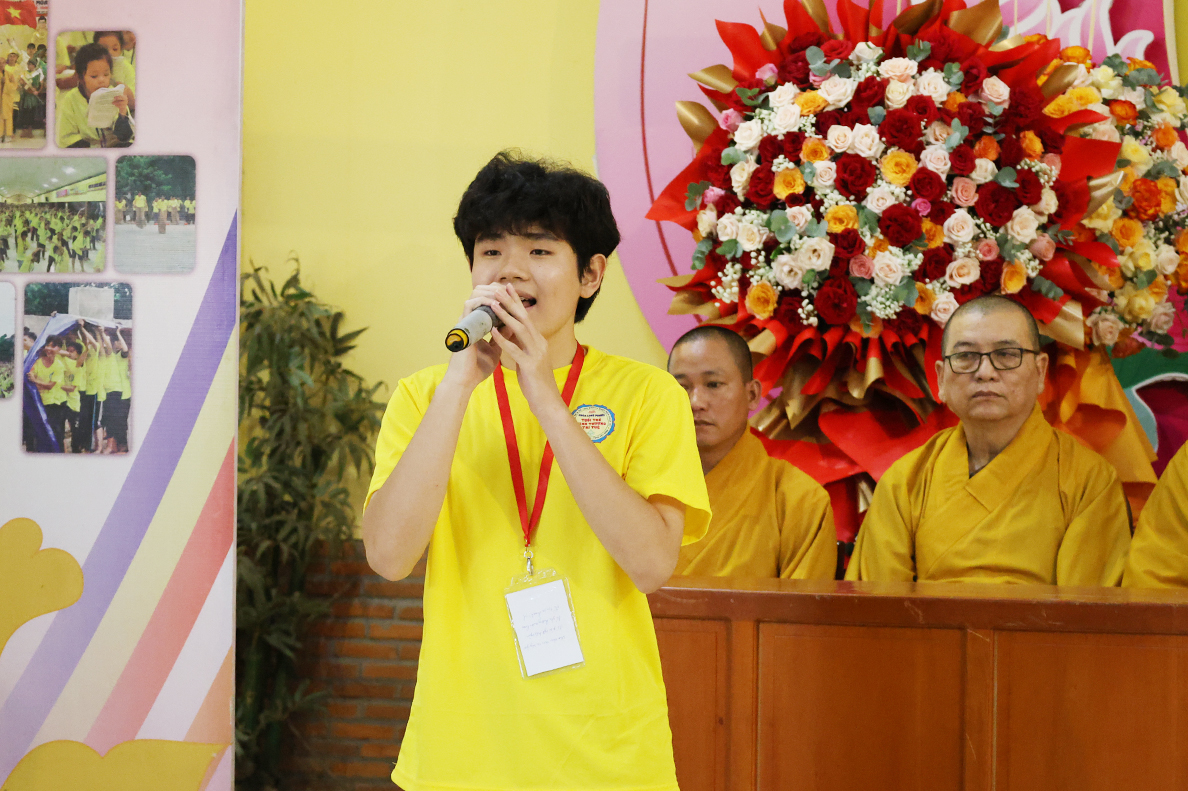 Phát biểu tại buổi lễ, TT. Thích Minh Thọ tán thán công đức Thượng tọa Trụ trì mặc dù đa đoan Phật sự quan trọng nhưng vẫn xuyên suốt tổ chức các khóa tu mùa hè trong suốt 16 năm qua. Thượng tọa nhắc nhở một vài nội dung đến BTC và kính chúc khóa tu diễn ra thành công tốt đẹp.