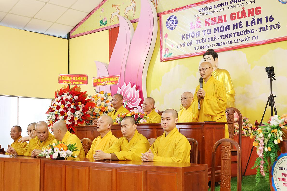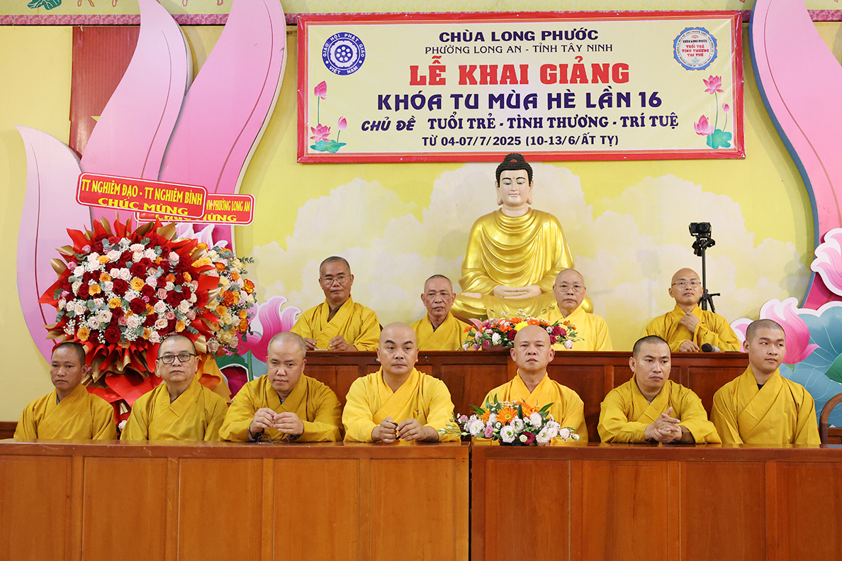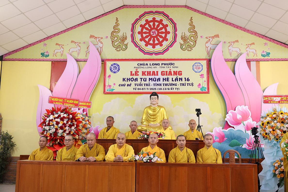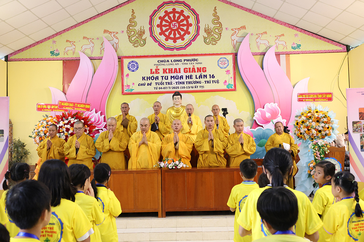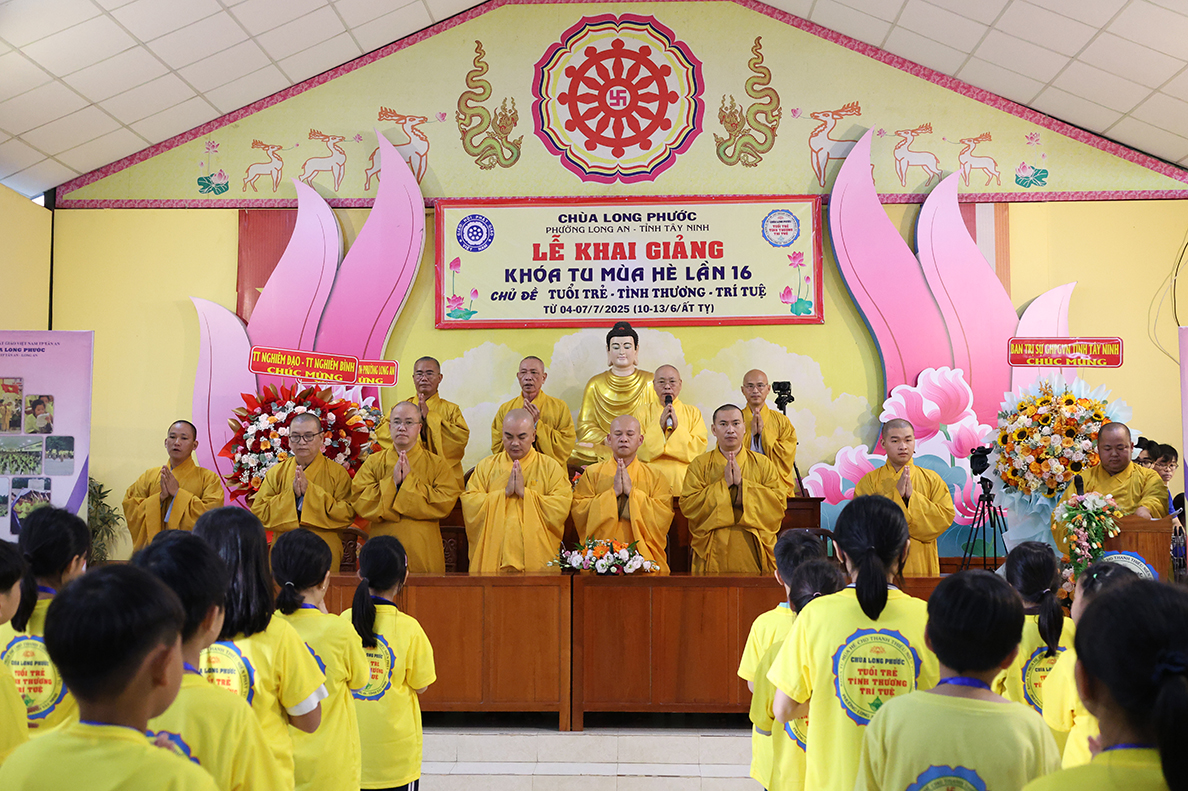 Sáng ngày 04/7/2025 (nhằm ngày 10/6/Ất Tỵ), tại chùa Long Phước, phường Long An, tỉnh Tây Ninh long trọng diễn ra Lễ Khai mạc Khóa tu mùa hè lần thứ 16 năm 2025 chủ đề: “Tuổi Trẻ Tình Thương Trí Tuệ” cho hơn 500 thanh thiếu niên.