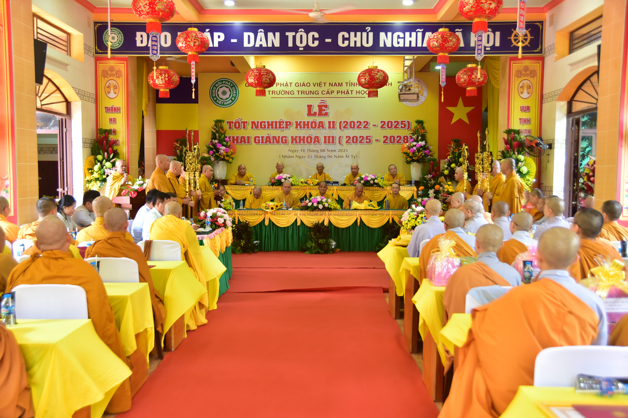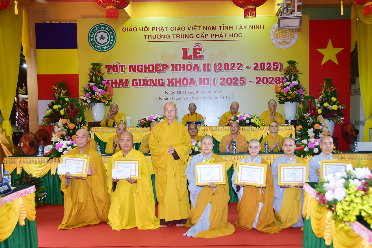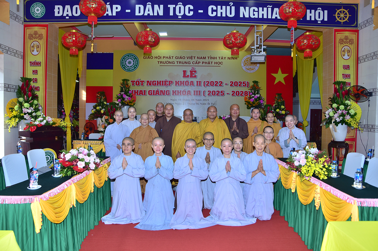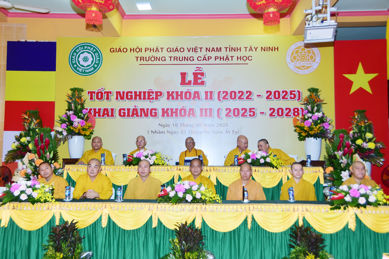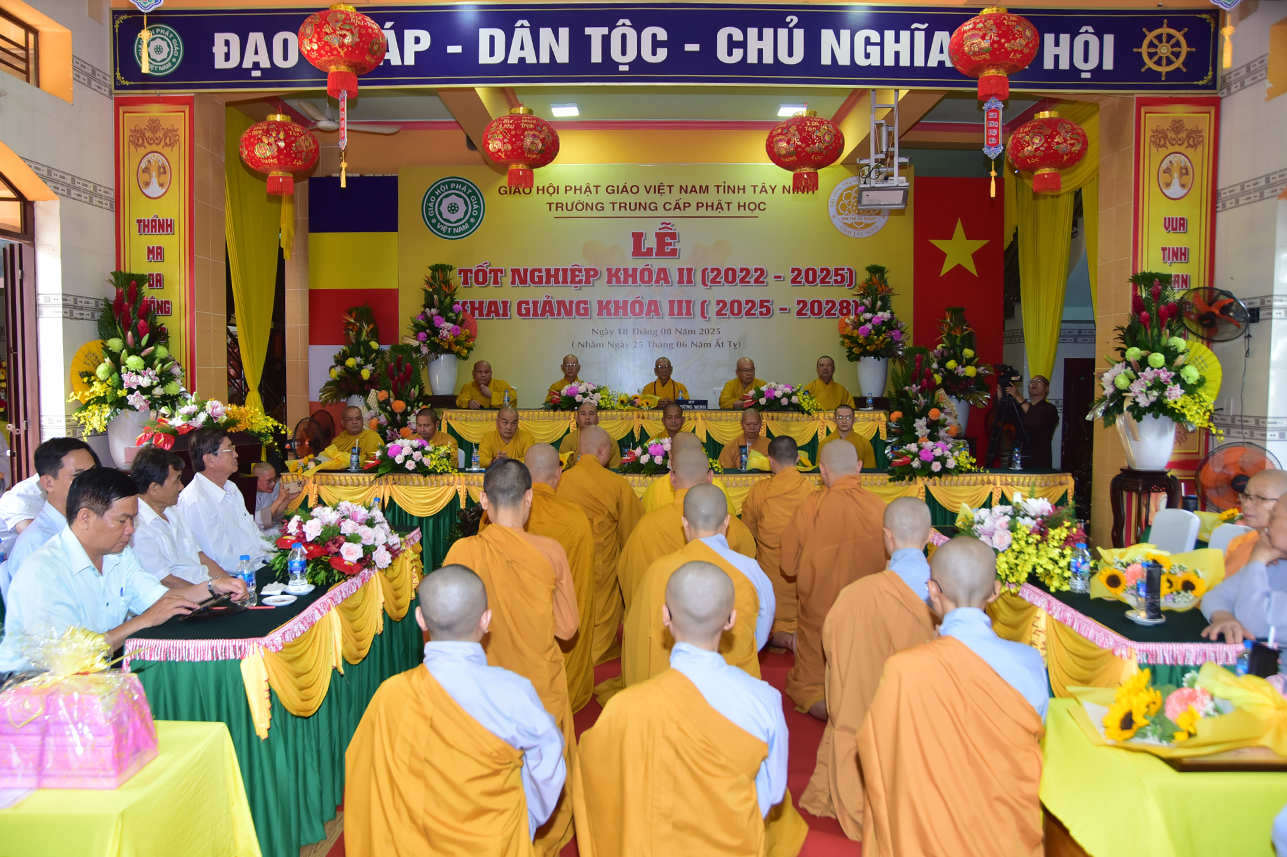 Sáng ngày 18/8/2025 (nhằm ngày 25/6 nhuận/Ất Tỵ), tại Văn phòng Trường Trung cấp Phật học Tây Ninh – chùa Phước Thành, phường An Tịnh, tỉnh Tây Ninh, Ban Giám hiệu tổ chức Lễ Tốt nghiệp khóa II (2022 – 2025) và Khai giảng khóa III (2025 – 2028) TCPH Tây Ninh.