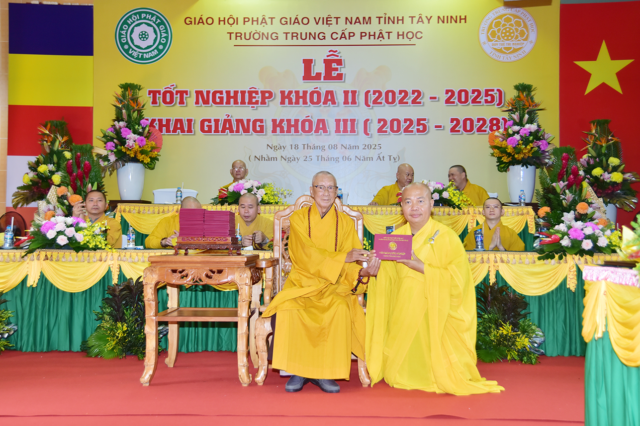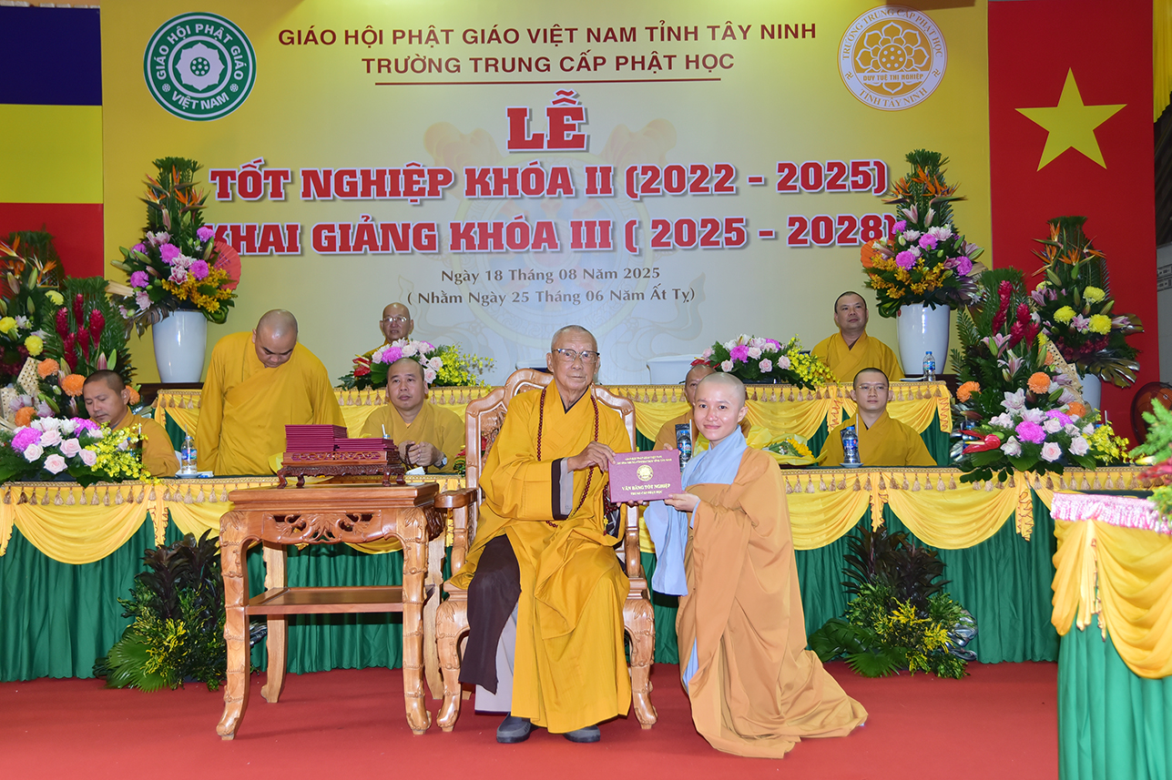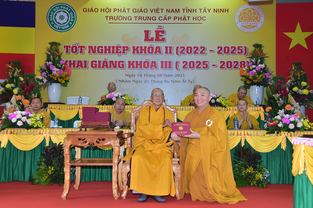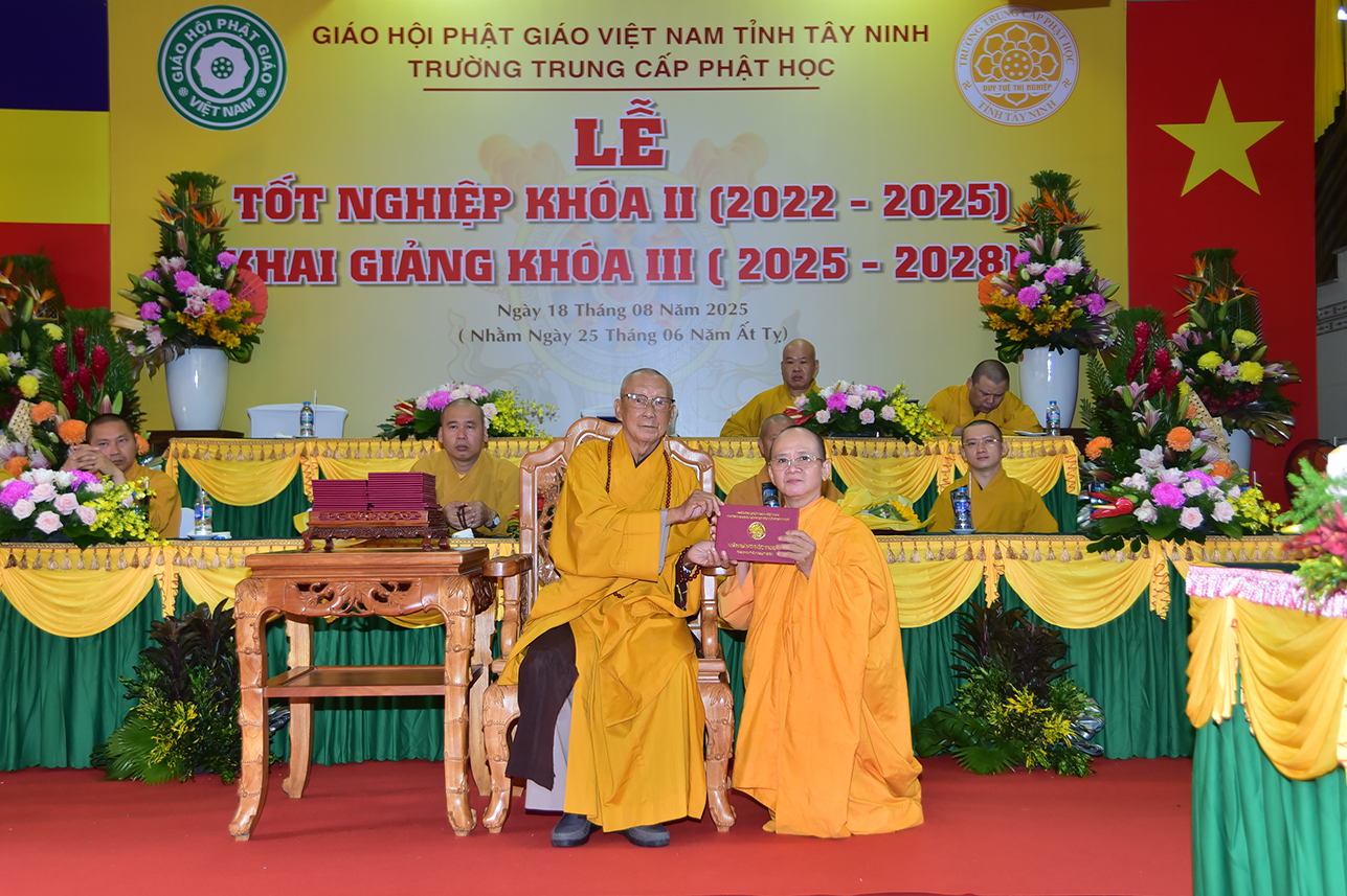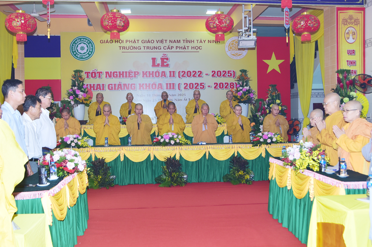 Sáng ngày 18/8/2025 (nhằm ngày 25/6 nhuận/Ất Tỵ), tại Văn phòng Trường Trung cấp Phật học Tây Ninh – chùa Phước Thành, phường An Tịnh, tỉnh Tây Ninh, Ban Giám hiệu tổ chức Lễ Tốt nghiệp khóa II (2022 – 2025) và Khai giảng khóa III (2025 – 2028) TCPH Tây Ninh.