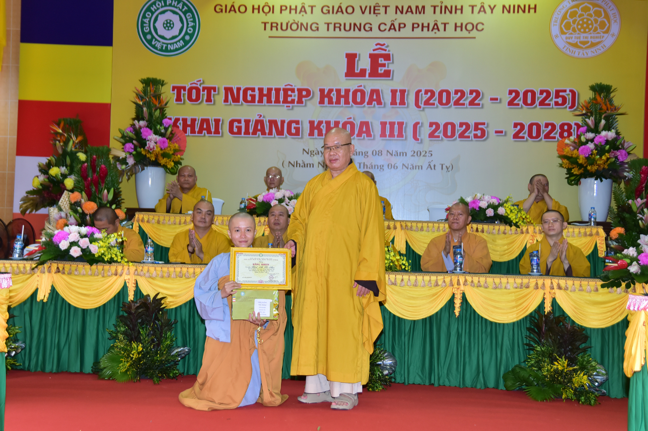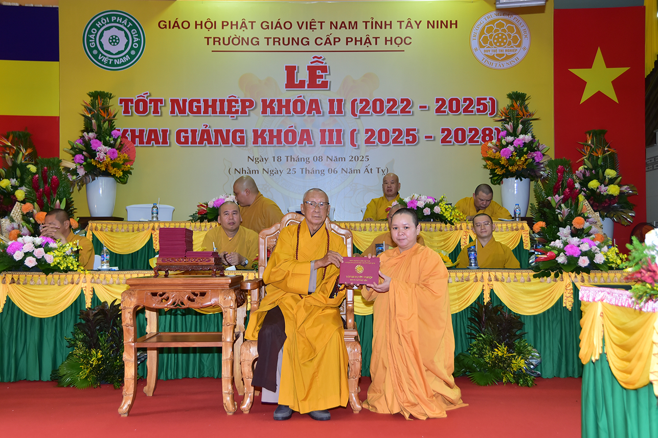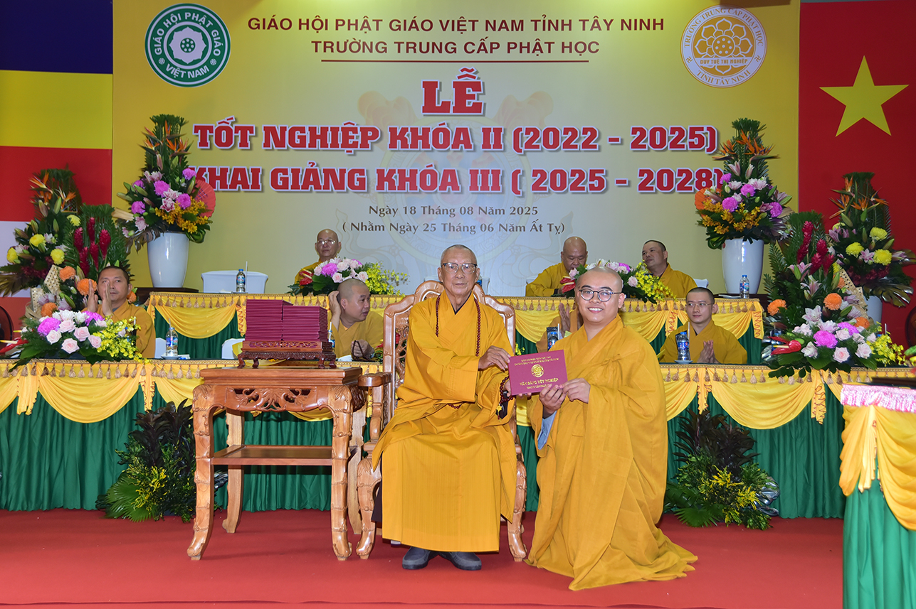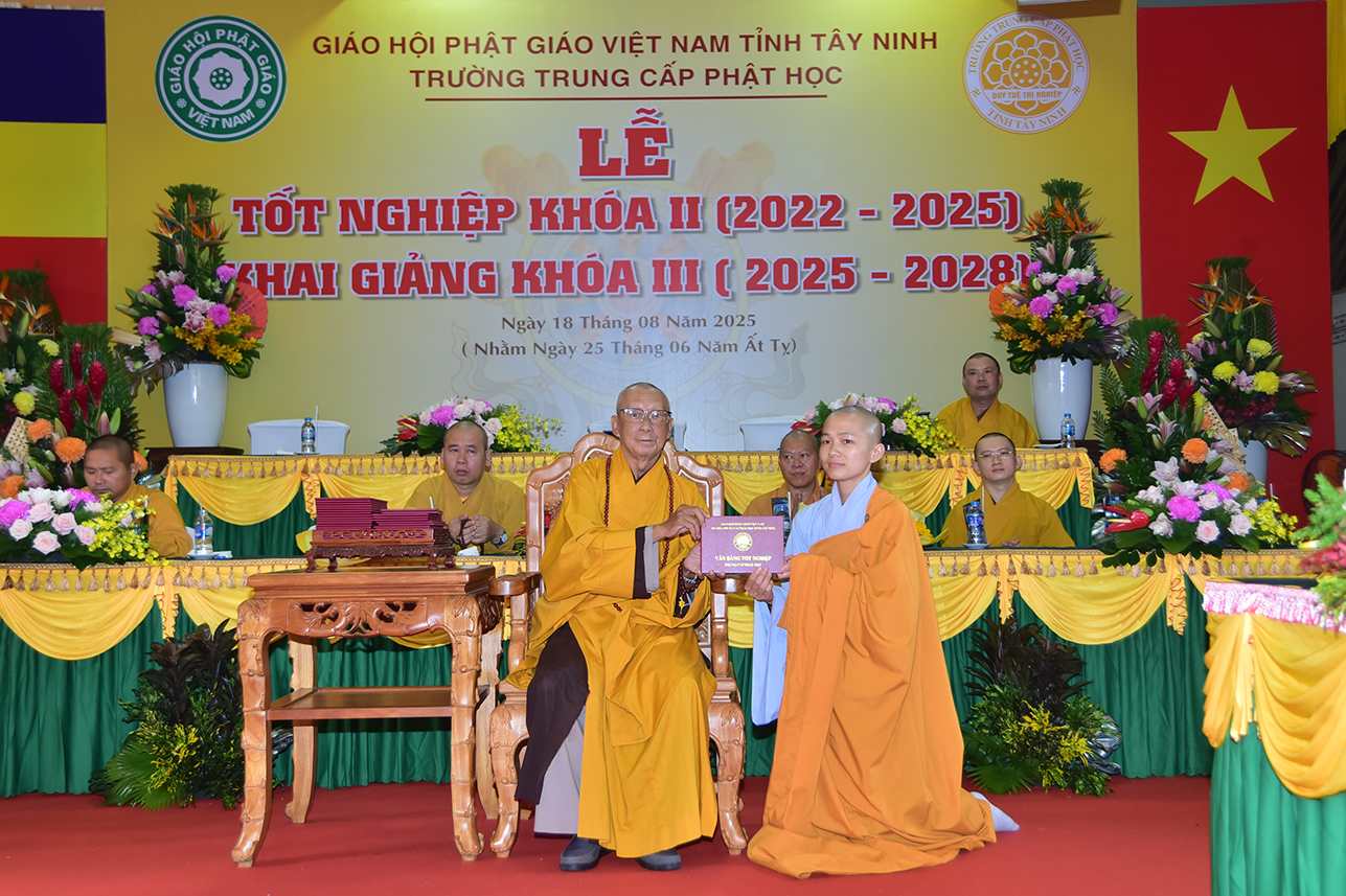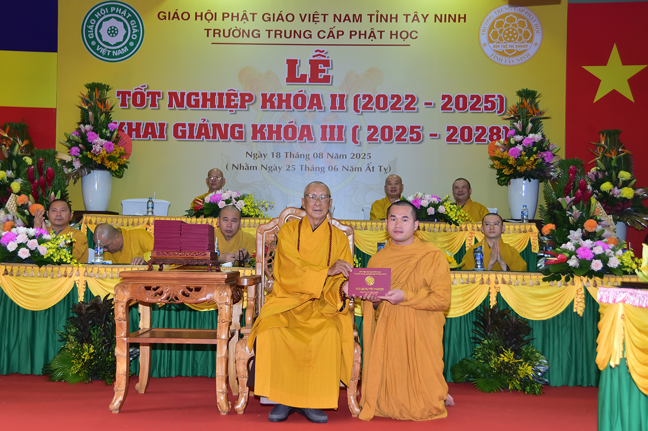 Sáng ngày 18/8/2025 (nhằm ngày 25/6 nhuận/Ất Tỵ), tại Văn phòng Trường Trung cấp Phật học Tây Ninh – chùa Phước Thành, phường An Tịnh, tỉnh Tây Ninh, Ban Giám hiệu tổ chức Lễ Tốt nghiệp khóa II (2022 – 2025) và Khai giảng khóa III (2025 – 2028) TCPH Tây Ninh.