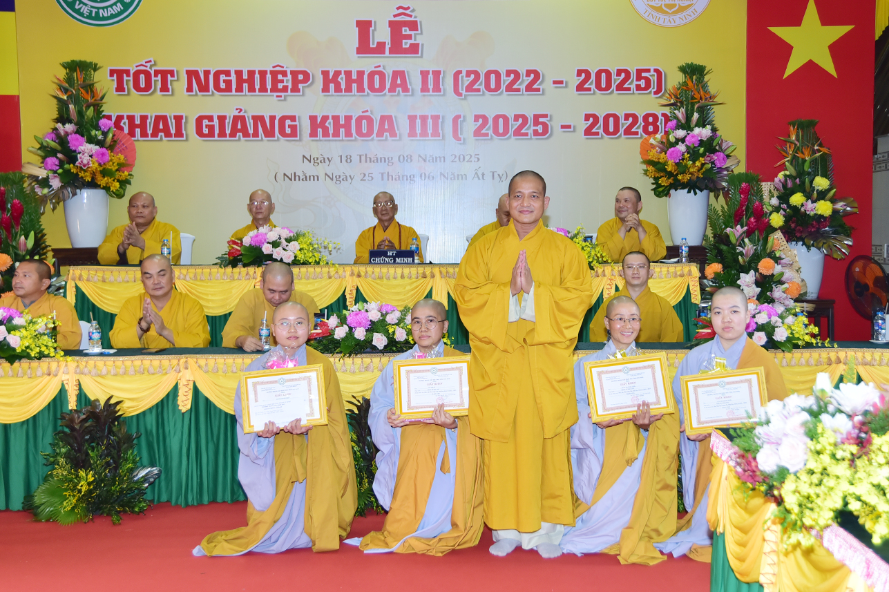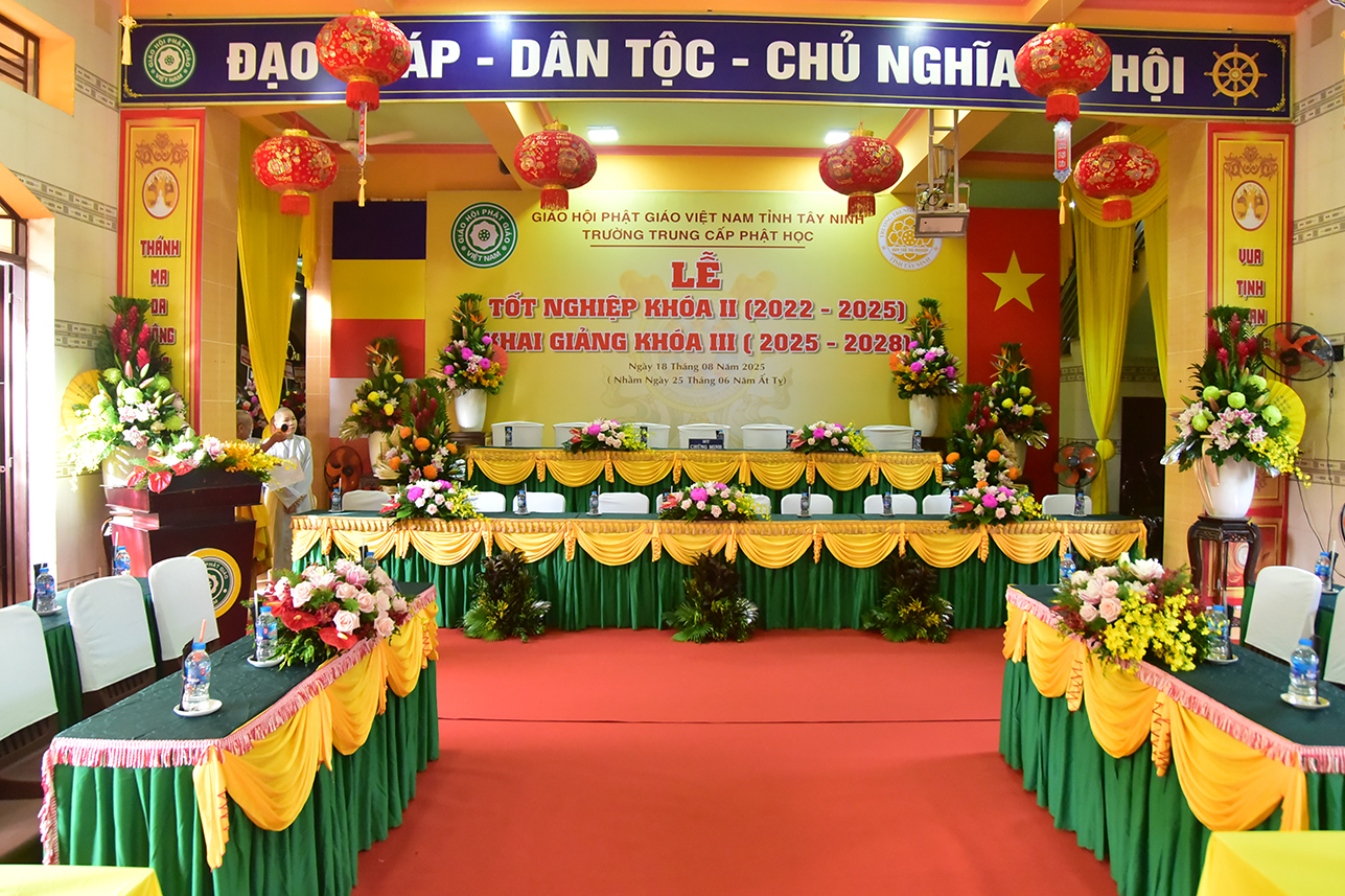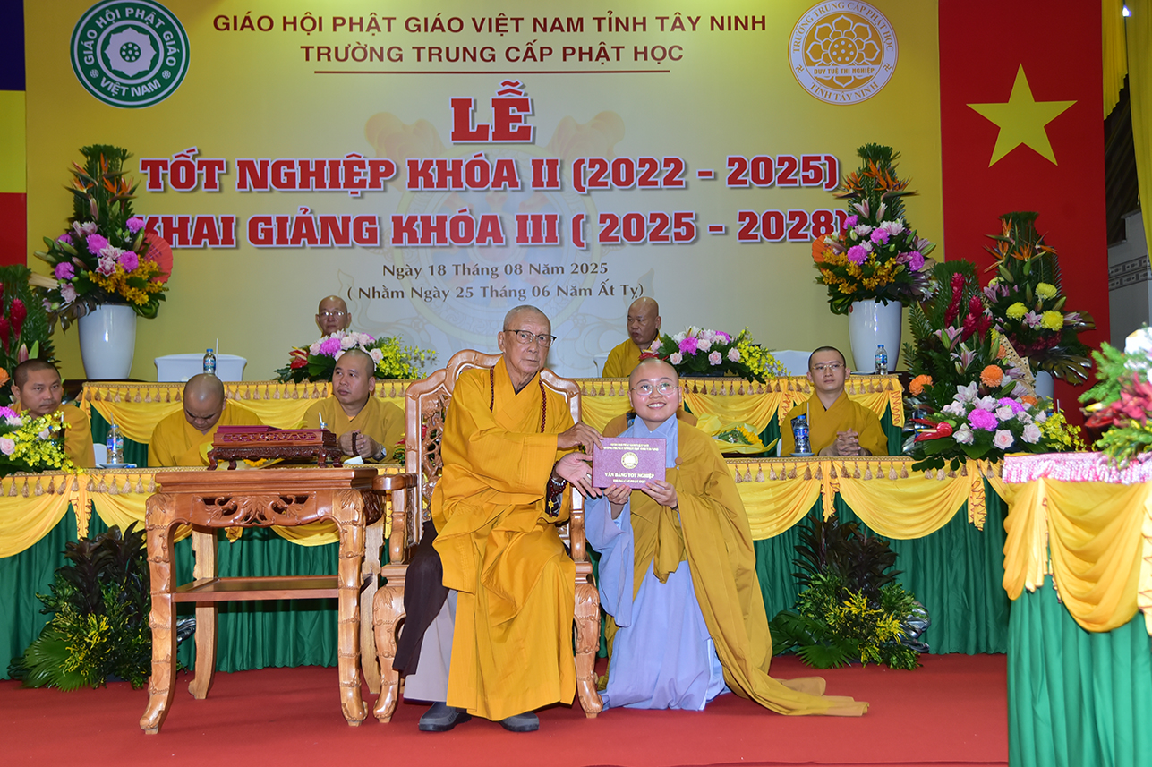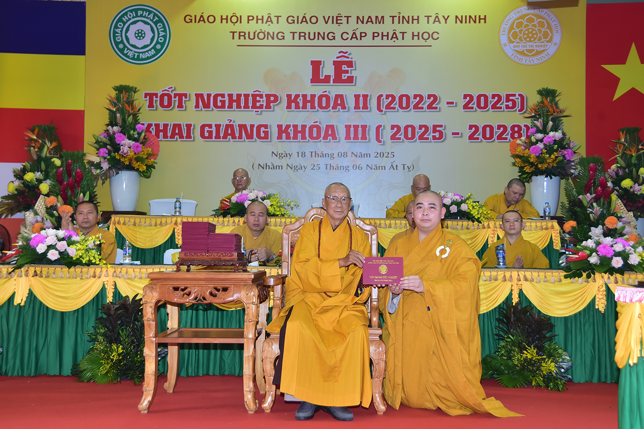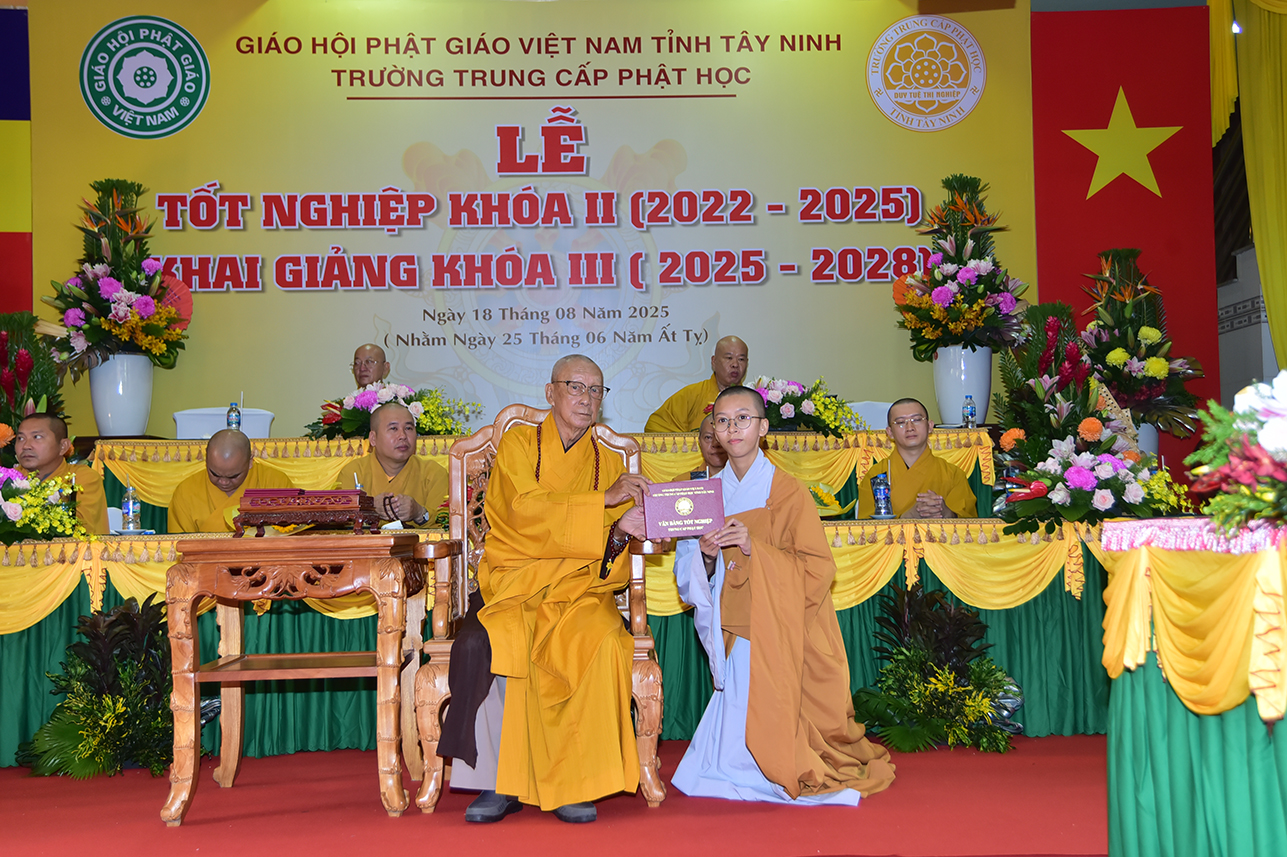Sáng ngày 18/8/2025 (nhằm ngày 25/6 nhuận/Ất Tỵ), tại Văn phòng Trường Trung cấp Phật học Tây Ninh – chùa Phước Thành, phường An Tịnh, tỉnh Tây Ninh, Ban Giám hiệu tổ chức Lễ Tốt nghiệp khóa II (2022 – 2025) và Khai giảng khóa III (2025 – 2028) TCPH Tây Ninh.