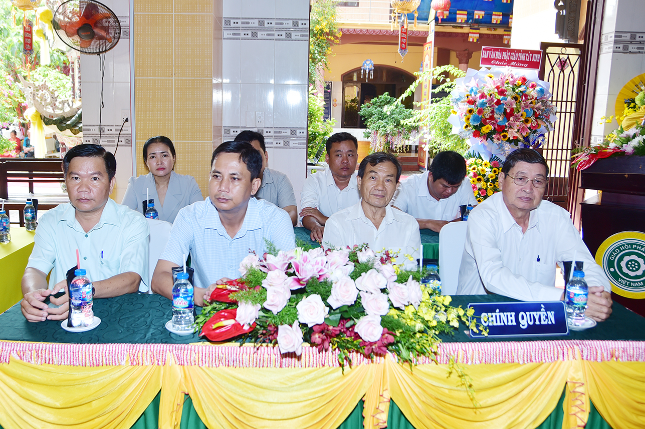 Về phía lãnh đạo chính quyền có: ông Trần Minh Nay – Phó Giám đốc Sở Dân tộc – Tôn giáo tỉnh Tây Ninh; ông Trang Văn Hải – Nguyên Phó Giám đốc Sở Nội vụ tỉnh Tây Ninh; ông Nguyễn Minh Sang – Trưởng phòng Tôn giáo tỉnh Tây Ninh; ông Nguyễn Vĩnh Thái – Phó Trưởng phòng Tôn giáo tỉnh Tây Ninh; Thiếu tá Trần Quốc Ngữ – Đại diện Phòng An ninh nội địa Công An tỉnh; cùng lãnh đạo chính quyền các cấp tham dự.