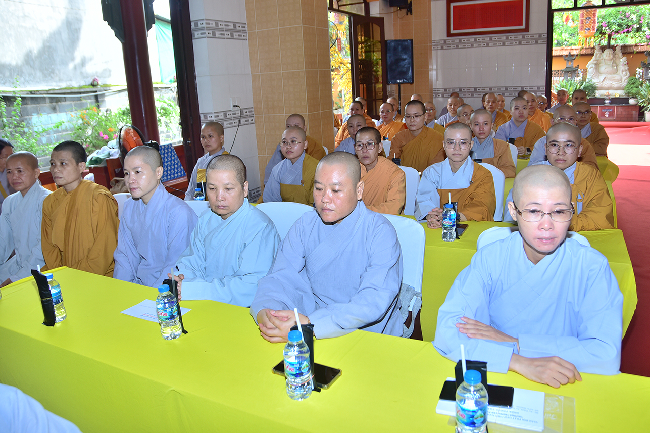 Quang lâm chứng minh tham dự buổi lễ có: TT. Thích Phước Đạt – Ủy viên Thường trực HĐTS, Phó Trưởng Ban Thường trực Ban Giáo dục Phật giáo GHPGVN; HT. Thích Huệ Tâm – Ủy viên HĐTS, Cố vấn chứng minh BTS GHPGVN tỉnh, Hiệu trưởng Trường TCPH Tây Ninh; TT. Thích Quảng Tâm – Ủy viên HĐTS, Phó ban Từ thiện xã hội TƯ, Trưởng BTS GHPGVN tỉnh; TT. Thích Hạnh Tuệ – Phó Thư ký kiêm Chánh Văn phòng Ban Giáo dục Phật giáo TW; TT. Thích Thiện Thức – Phó Trưởng ban Thường trực BTS GHPGVN tỉnh, Phó Hiệu trưởng Thường trực Trường TCPH Tây Ninh; ĐĐ. Thích Lệ Duyên – Phó ban kiêm Chánh Thư ký BTS GHPGVN tỉnh Tây Ninh; ĐĐ. Thích Nguyên Tấn – Phó BTS GHPGVN tỉnh; TT. Thích Thiện Trí – Ủy viên Ủy viên BTS GHPGVN tỉnh, Phó Hiệu trưởng Trường TCPH; ĐĐ. Thích Thiện Nghĩa – Ủy viên TT BTS, Trưởng Ban Từ thiện xã hội GHPGVN tỉnh; ĐĐ. Thích Nghiêm Bình – Ủy viên TT BTS, Trưởng Ban Văn hóa GHPGVN tỉnh; cùng Chư Tôn đức Ban Thường trực BTS GHPGVN tỉnh, Chư Tôn đức Ban Giám hiệu, Giáo thọ Trường TCPH Tây Ninh và Tăng Ni sinh khóa II, khóa III về tham dự.
