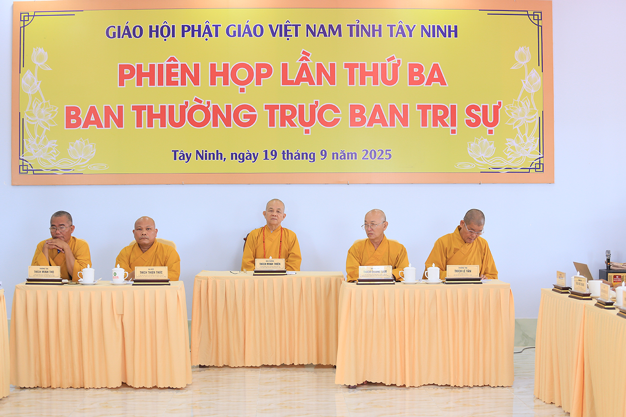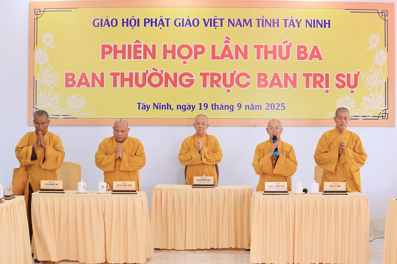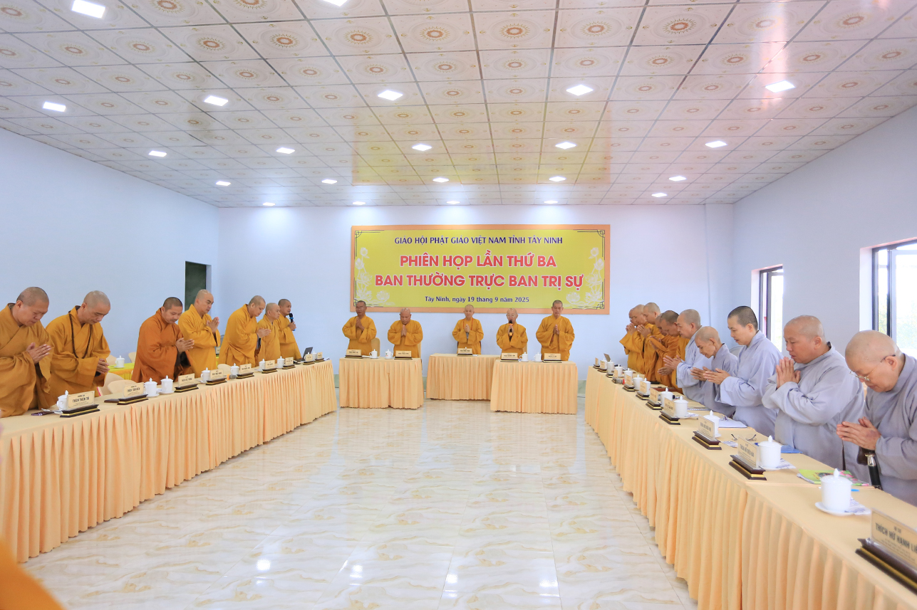 Sáng ngày 19/9/2025 (nhằm ngày 28/7/Ất Tỵ), tại Văn phòng BTS GHPGVN tỉnh – chùa Pháp Minh, ấp Mới 1, xã Mỹ Hạnh, tỉnh Tây Ninh, Ban Thường trực BTS GHPGVN tỉnh Tây Ninh đã tổ chức phiên họp lệ lần 3 nhằm tổng kết hoạt động Phật sự tháng 7 và triển khai hoạt động Phật sự trọng tâm trong thời gian tới.