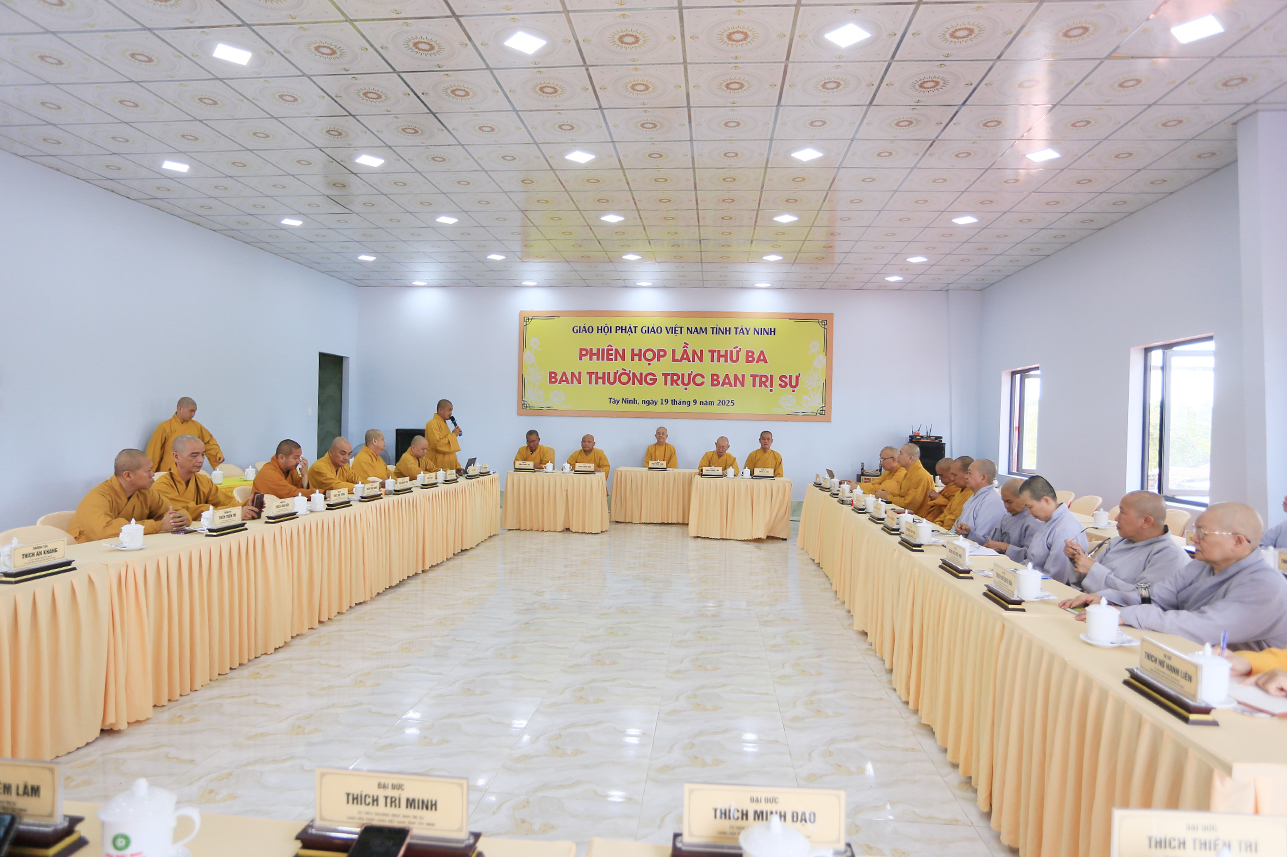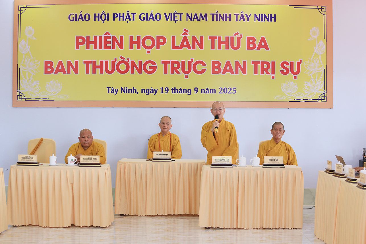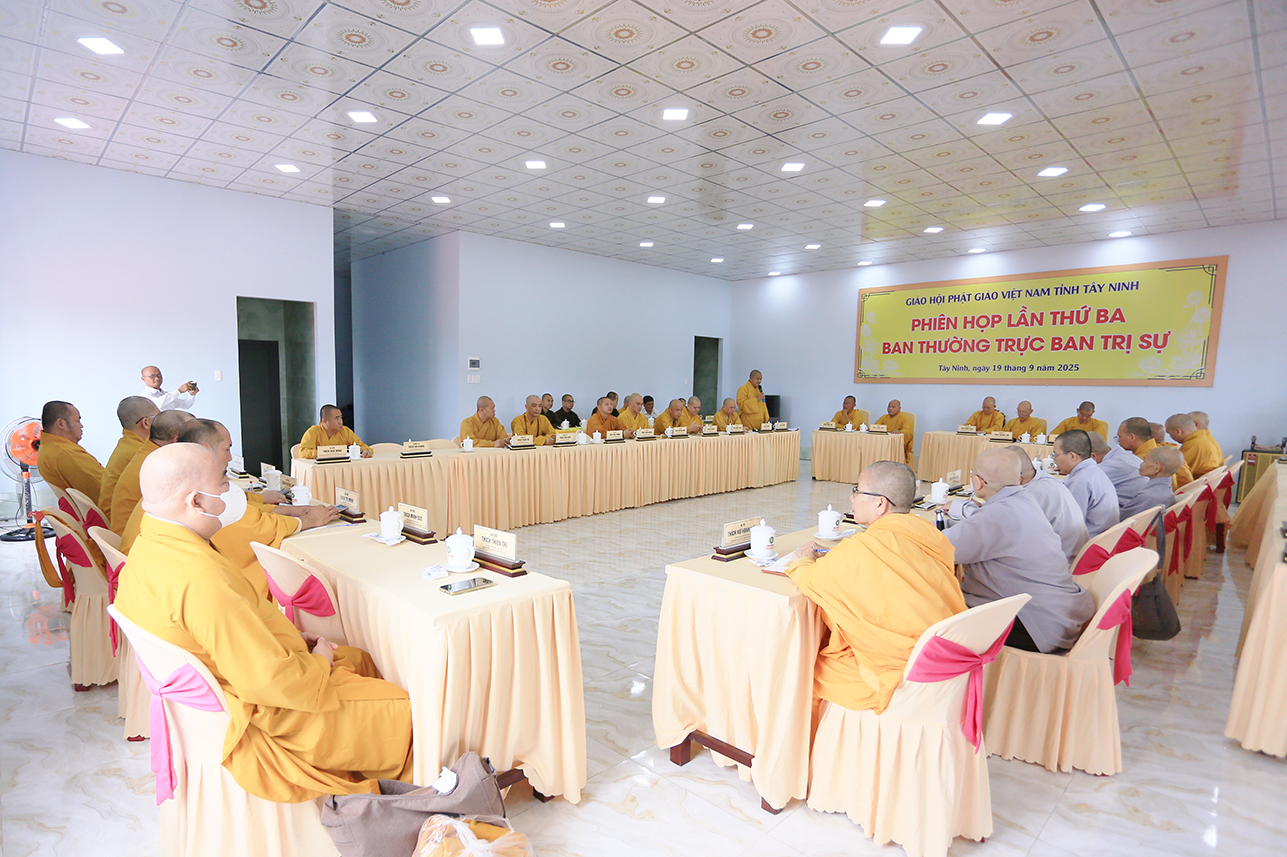 Sáng ngày 19/9/2025 (nhằm ngày 28/7/Ất Tỵ), tại Văn phòng BTS GHPGVN tỉnh – chùa Pháp Minh, ấp Mới 1, xã Mỹ Hạnh, tỉnh Tây Ninh, Ban Thường trực BTS GHPGVN tỉnh Tây Ninh đã tổ chức phiên họp lệ lần 3 nhằm tổng kết hoạt động Phật sự tháng 7 và triển khai hoạt động Phật sự trọng tâm trong thời gian tới.