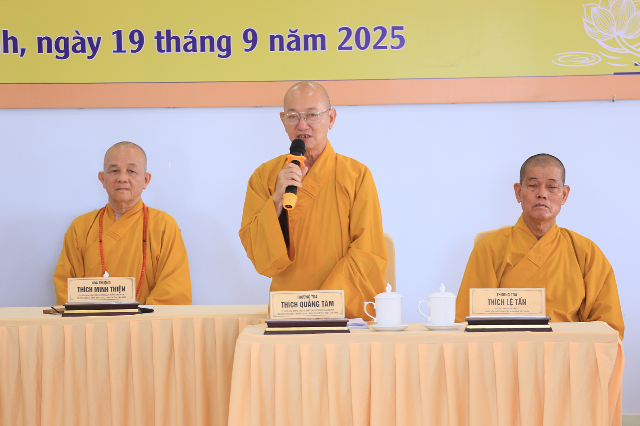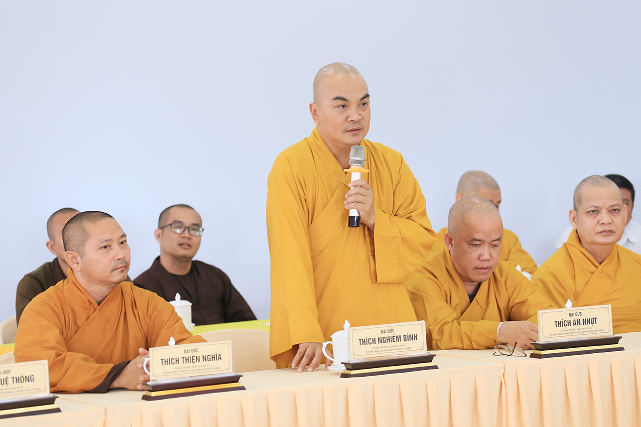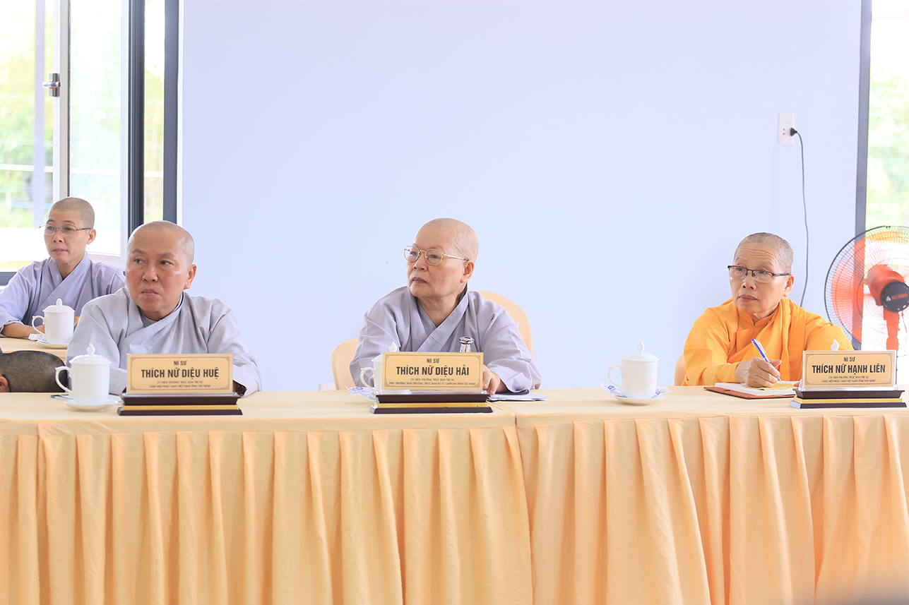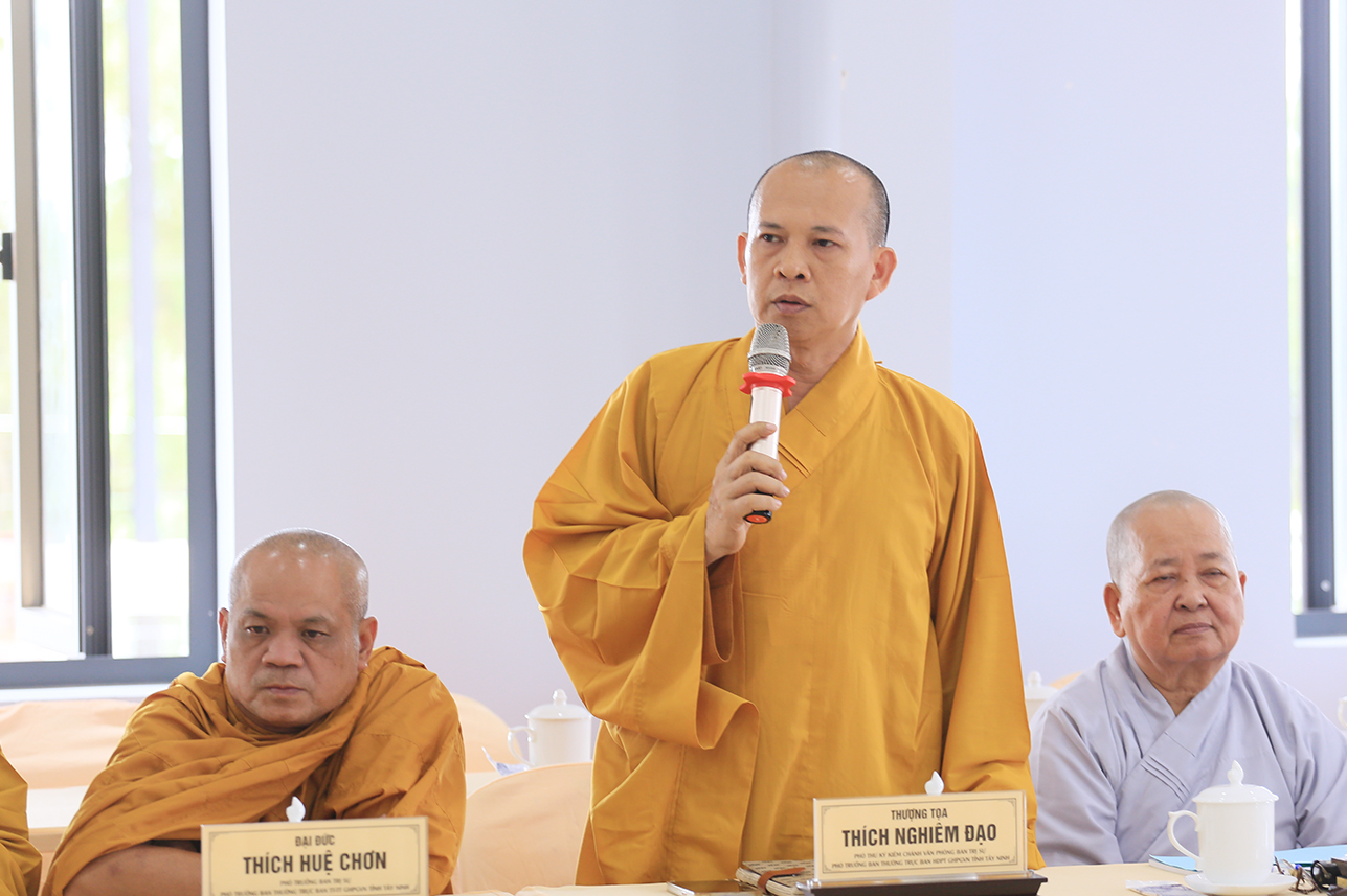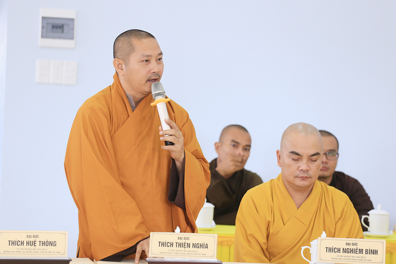 Ban lời đạo từ tại phiên họp, Hòa thượng Thích Minh Thiện nhấn mạnh mọi vấn đề cần giải quyết phải được y cứ trên cơ sở pháp lý của Hiến chương Giáo hội, Nội quy Ban Tăng sự TW và pháp luật Nhà nước. Hòa thượng định hướng Chư Tôn đức Ban Thường trực phải nắm vững hành chính Giáo hội để hoạt động sâu sát và hiệu quả, góp phần quản lý tốt các Phật sự của GHPGVN tỉnh Tây Ninh trong giai đoạn đầu sau sáp nhập, đồng thời chuẩn bị chu đáo cho Đại hội đại biểu Phật giáo tỉnh nhiệm kỳ mới. Bên cạnh đó, Hòa thượng cũng lưu ý công tác thỉnh cử nhân sự cho các ban chuyên ngành và Ban Đại diện Phật giáo xã và liên xã cần lựa chọn Chư Tôn đức có năng lực, uy tín và tinh thần trách nhiệm để điều hành nhằm tăng cường sự kết nối giữa Phật giáo tỉnh và các cơ sở tự viện, góp phần phát triển các hoạt động Phật sự ngày càng đồng bộ và hiệu quả.