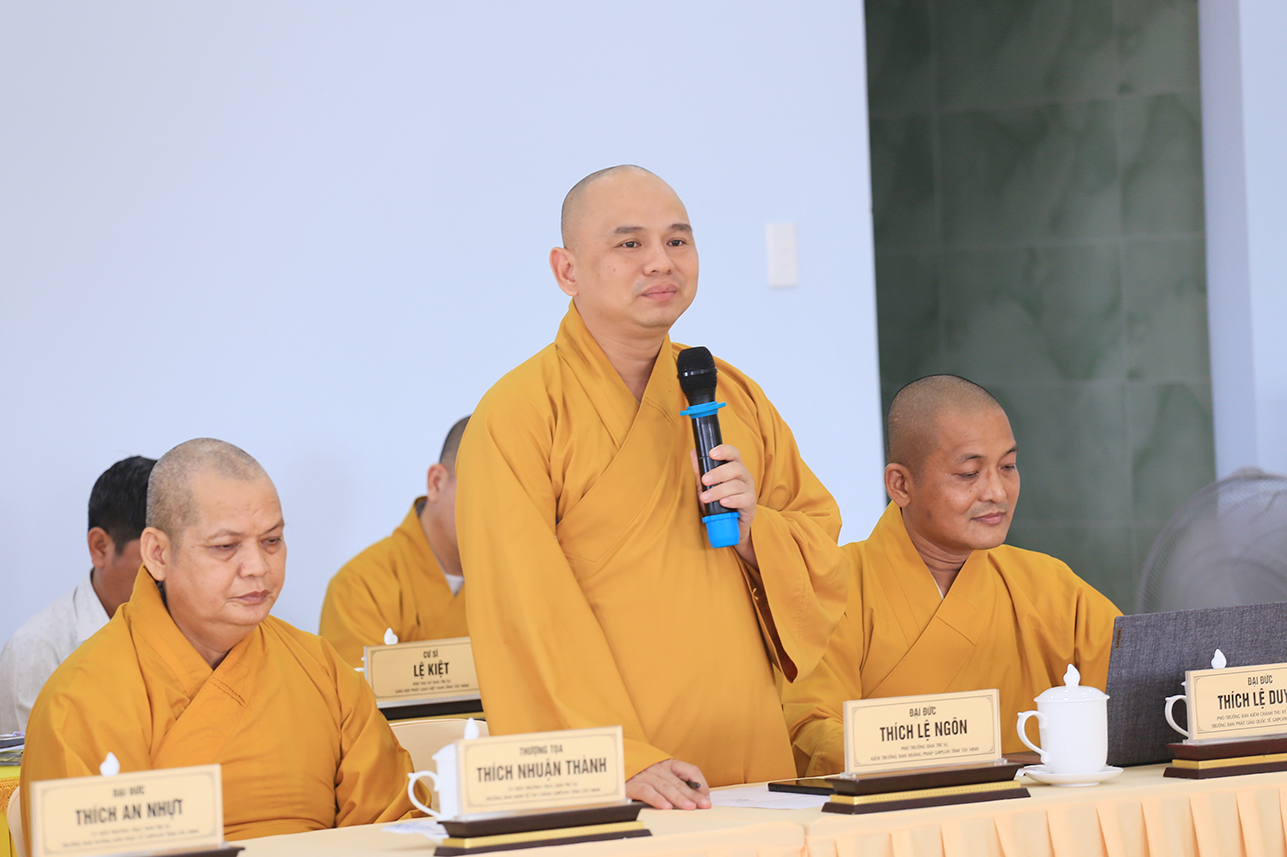 Phiên họp cũng ghi nhận các ý kiến đóng góp của Chư Tôn đức: Thượng tọa Thích Lệ Tấn, Thượng tọa Thích Minh Thọ, Đại đức Thích Thiện Thức, Đại đức Thích Lệ Ngôn, Đại đức Thích Thiện Danh, Đại đức Thích Huệ Chơn, Đại đức Thích Trí Minh, Thượng tọa Thích Nghiêm Đạo, Đại đức Thích Thiện Tâm, Đại đức Thích Thiện Nghĩa,…