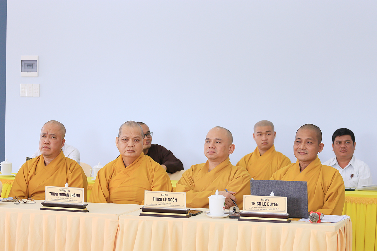 Phiên họp có sự chứng minh tham dự của: HT. Thích Minh Thiện – UV HĐTS, Phó ban Hoằng pháp TƯ, Chứng minh, cố vấn BTS GHPGVN tỉnh Tây Ninh; TT. Thích Lệ Tấn – Chứng minh BTS GHPGVN tỉnh; TT. Thích Quảng Tâm – UV HĐTS, Phó ban Từ thiện xã hội TƯ, Trưởng BTS GHPGVN tỉnh, Chủ tọa phiên họp; ĐĐ. Thích Thiện Thức – UV HĐTS, Phó Trưởng ban Thường trực BTS GHPGVN tỉnh; TT. Thích Minh Thọ – UV HĐTS, Phó BTS kiêm Trưởng ban Pháp chế GHPGVN tỉnh; ĐĐ. Thích Lệ Duyên – Phó ban kiêm Chánh Thư ký BTS GHPGVN tỉnh; cùng Chư vị Phó BTS, Ủy viên, các ban chuyên môn GHPGVN tỉnh về tham dự.