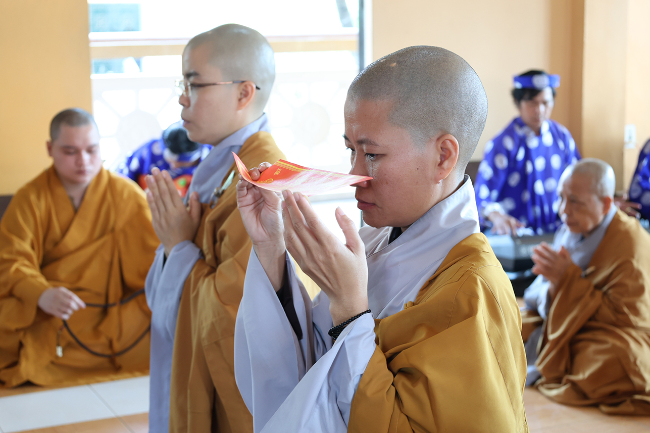 Tiếp đó, môn đồ pháp quyến cung thỉnh Chư tôn đức giáo phẩm quang lâm giác linh đường thắp hương tưởng niệm cố Ni trưởng.