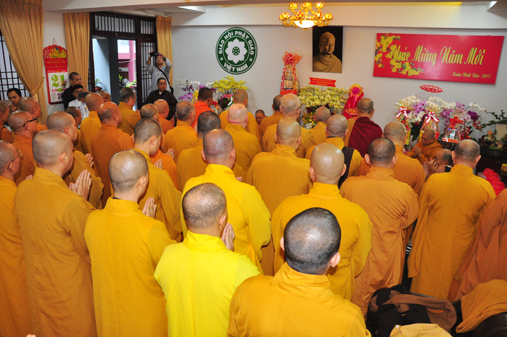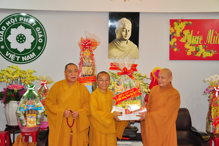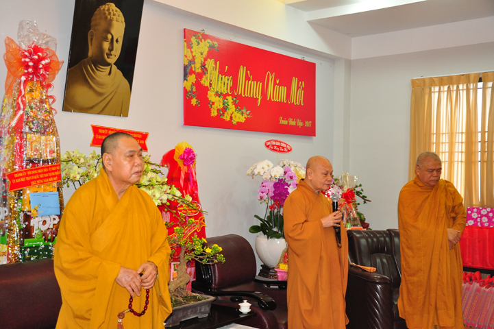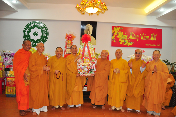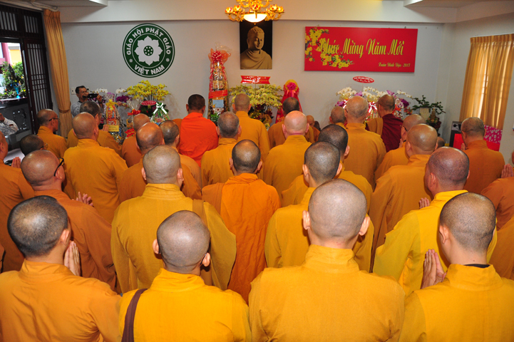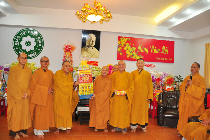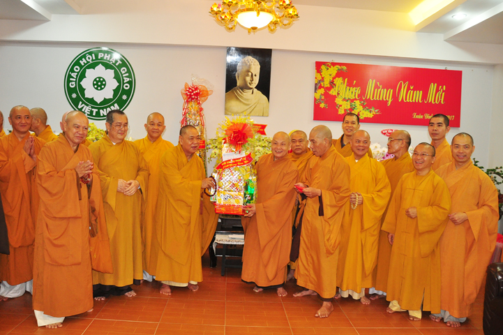 Hôm nay, ngày 21/01/2017 (ngày 24 tháng Chạp năm Bính Thân) tại Văn phòng 2 Trung ương GHPGVN (thiền viện Quảng Đức, 294 NKKN, P8, Q3) chư Tôn đức đại diện 13 Ban , Viện Trung ương cùng chư Tôn đức Văn phòng 2 TƯGH đã đãnh lễ chúc tết Hoà thượng Chủ tịch HĐTS GHPGVN; Hoà thượng Phó Chủ tịch TT kiêm Trưởng ban Tăng sự T.Ư và Hoà thượng Phó Chủ tịch HĐTS.