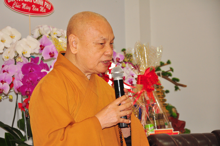 Đáp lại lời chúc mừng, Hoà thượng Chủ tịch HĐTS cảm ơn những lời chúc tốt đẹp của đại diện 13 Ban, Viện và Văn phòng 2 Trung ương. Hoà thượng cũng nhấn mạnh, năm 2017 sắp tới TƯGH sẽ diễn ra rất nhiều sự kiện quan trọng mà tiêu biểu là Đại hội Đại biểu Phật giáo toàn quốc tháng tháng 11. Vì thế, các Ban, Viện và Văn phòng 2 TƯGH phải nổi lực nhiều hơn nữa để thực hiện tốt các nhiệm vụ đã được Trung ương GHPGVN giao phó. Trước thềm xuân Đinh Dậu sắp đến Hoà thượng chúc chư Tôn đức trong 13 Ban, Viện và Văn phòng 2 TƯGH được sức khoẻ dòi giàu, thân tâm thường lạc và thành tựu mọi công tác Phật sự.