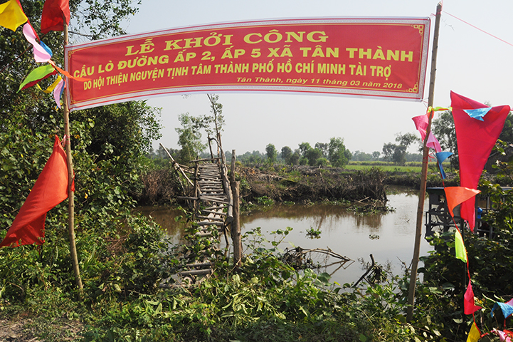 Được biết, cây cầu được xây dựng bằng bê tông cốt thép, chiều dài 30 m, ngang 2,6 m, tổng kinh phí 140 triệu đồng do nhóm từ thiện Từ Tâm tài trợ