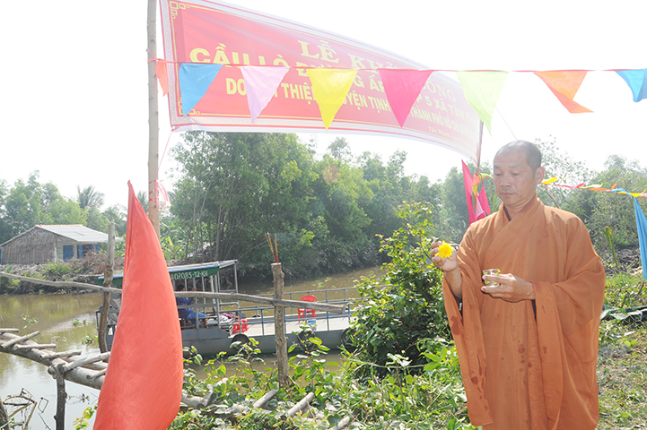 Đại diện Phật giáo tỉnh Long An và huyện Thủ Thừa ĐĐ. Thích Đức Thành thừa ủy nhiệm HT. Thích Minh Thiện- Trưởng Ban Trị Sự GHPGVN tỉnh Long An nhắn gửi chúc sức khỏe đến quý cấp lãnh đạo Chính quyền và bà con nhân dân địa phương. Đại đức tri ân đến nhóm từ thiện Từ Tâm đã ủng hộ xây dựng nhiều cây cầu tại huyện Thủ Thừa. Đại đức nhắn gửi đến bà con nhân dân trong quá trình thi công cùng nhau đóng góp công sức và giám sát công trình để đạt được tốt nhất. Khi công trình hoàn thành bà con luôn luôn ý thức bảo vệ để được sử dụng lâu bền. Cuối lời Đại đức cảm ơn đến nhóm từ thiện đã tài trợ công trình và kính chúc sức khỏe đến toàn thể mọi người tham dự buổi lễ.