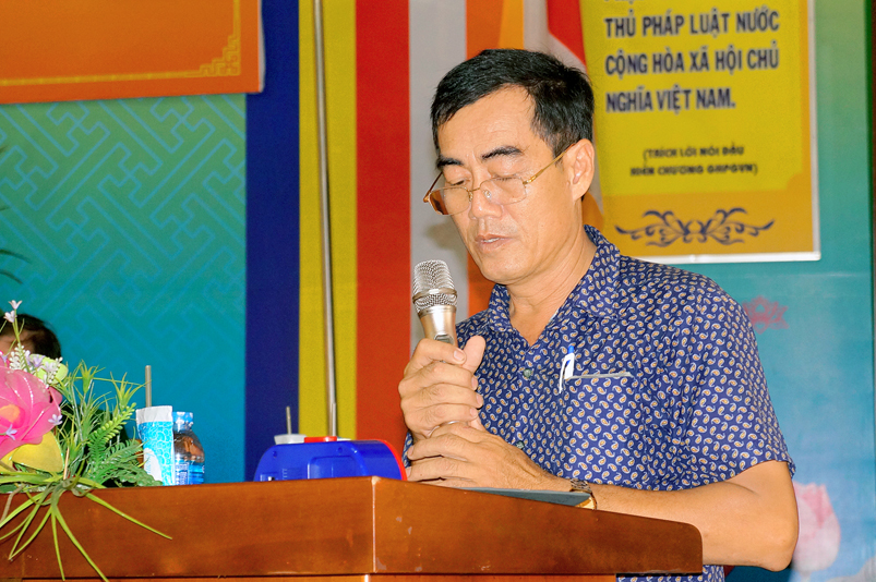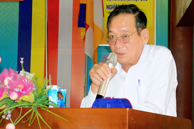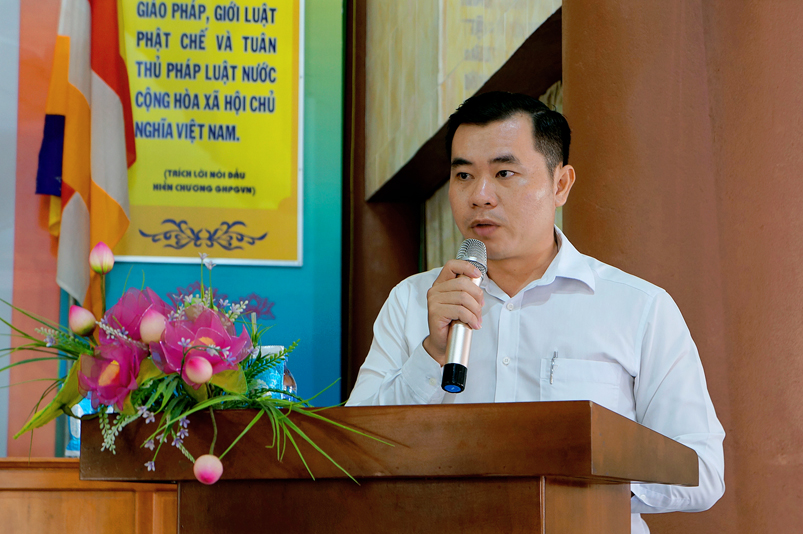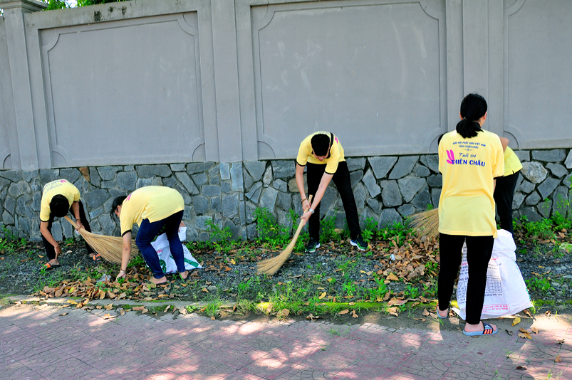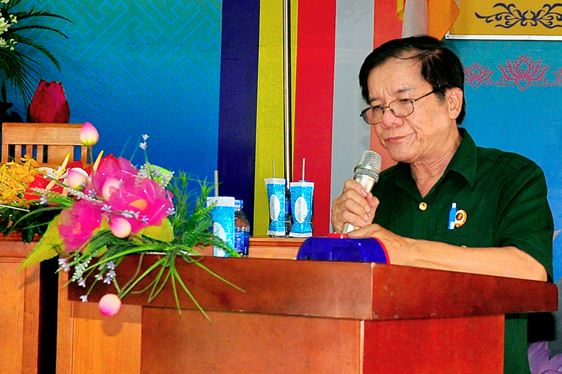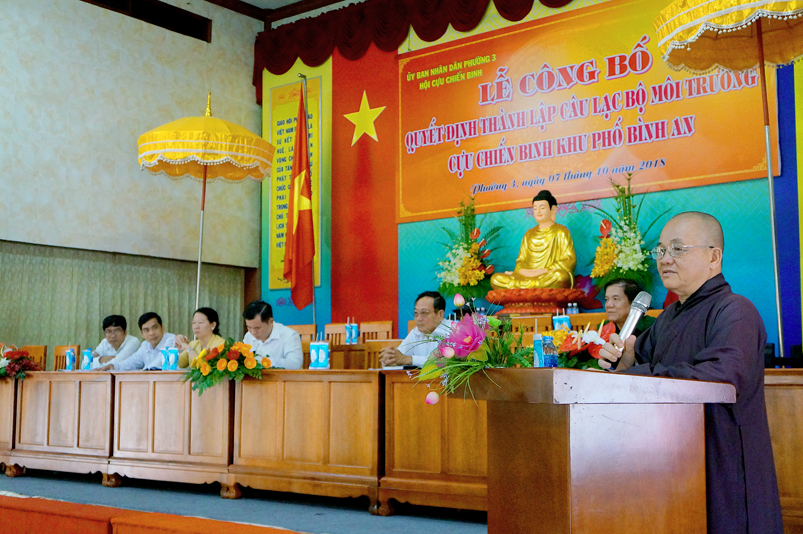 Đại diện chùa Thiên Châu, Hoà thượng Thích Minh Thiện phát biểu tại buổi lễ. Trước tiên, Hòa thượng cảm kích sáng kiến của quý lãnh đạo thành phố, phường 3 và trân quý tấm lòng của quý thành viên trong chi hội Cựu chiến binh phường 3. Trong kháng chiến bảo vệ Tổ Quốc và đời sống thường nhật anh, chị cựu chiến binh luôn là người tiên phong hoàn thành tốt nhiệm vụ. Hoà thượng cũng thông tin đến quý lãnh đạo và chi hội về việc Giáo hội Phật giáo Việt Nam đã ký kết với Mặt trận Tổ quốc Việt Nam và các tổ chức quốc tế “ Bảo vệ môi trường và ứng phó với biến đổi khí hậu”. Riêng Phật giáo tỉnh Long An trong những năm qua đã từng tổ chức hội thảo về bảo vệ môi trường. Những việc Chi hội đang làm là một việc rất ý nghĩa đúng theo tinh thần từ bi của đạo Phật, vì vậy Tăng Ni, Phật tử sẽ hoan hỷ chung tay góp sức để bảo vệ môi trường xanh- sạch- đẹp.