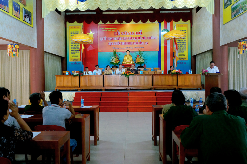 Sáng ngày 7 tháng 10 năm 2018( ngày 28/8/ Mậu Tuất) tại chùa Thiên Châu, số 101, Đường Huỳnh Văn Nhứt, Phường 3, Tp. Tân An, tỉnh Long An đã diễn ra lễ công bố quyết định thành lập Câu lạc bộ Môi trường Cựu chiến binh khu phố Bình An.