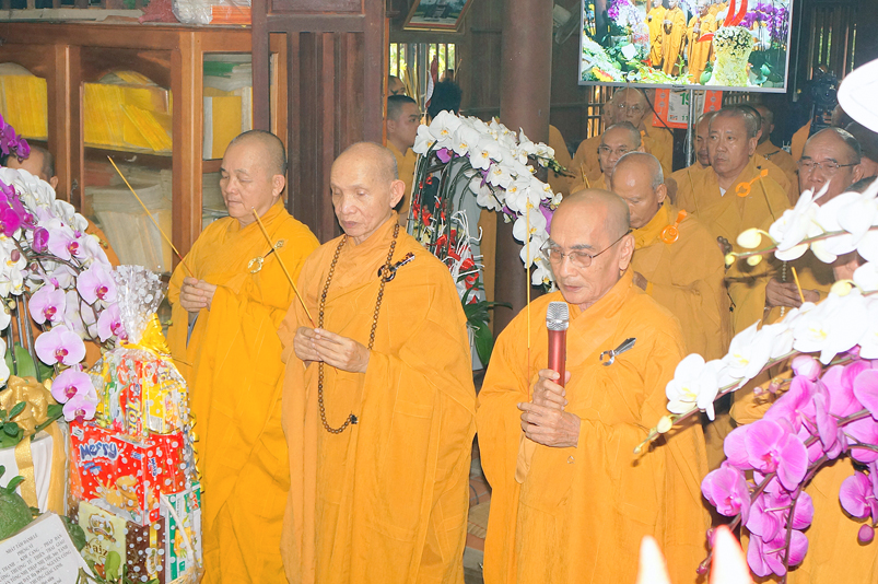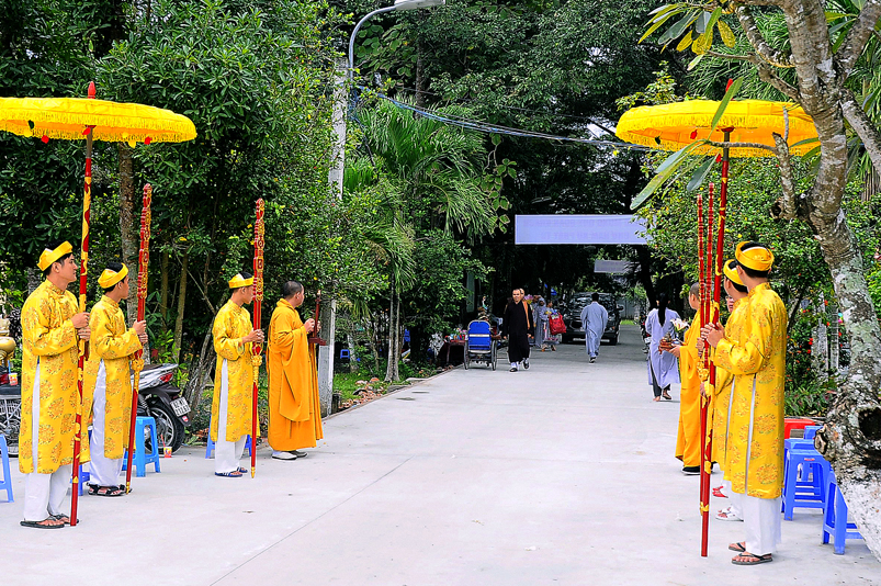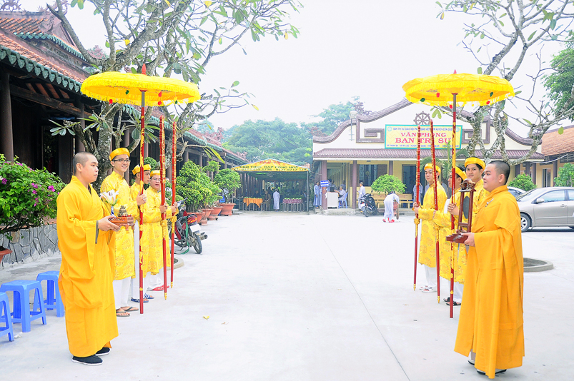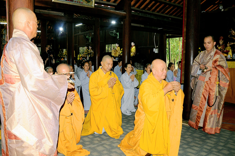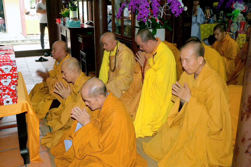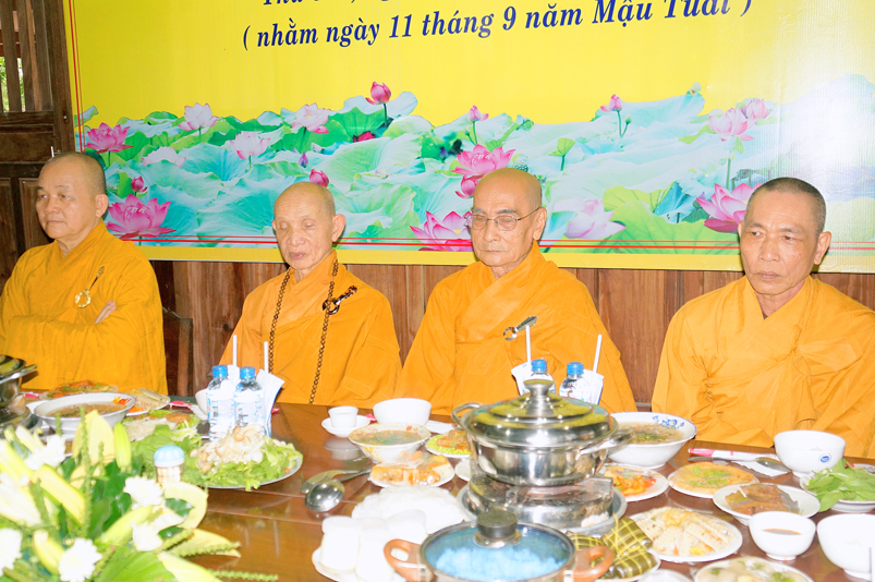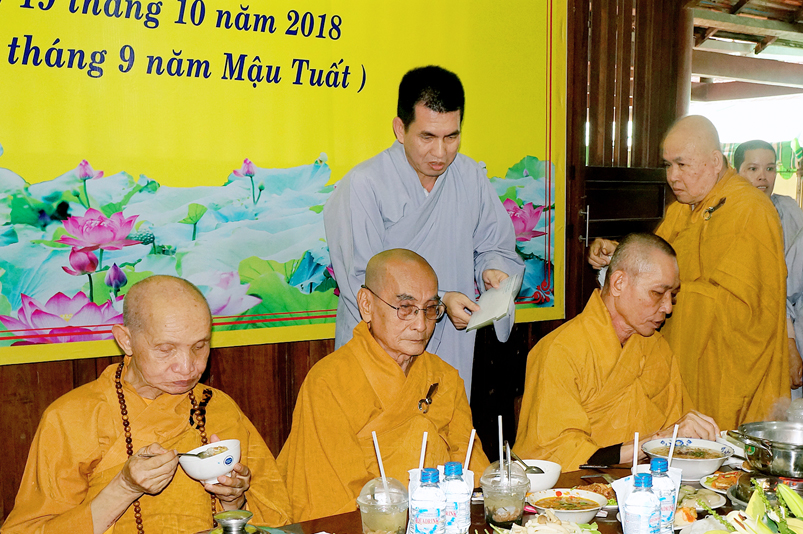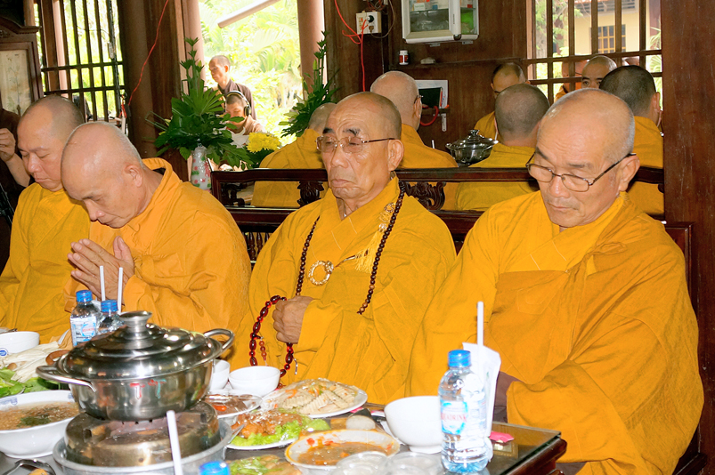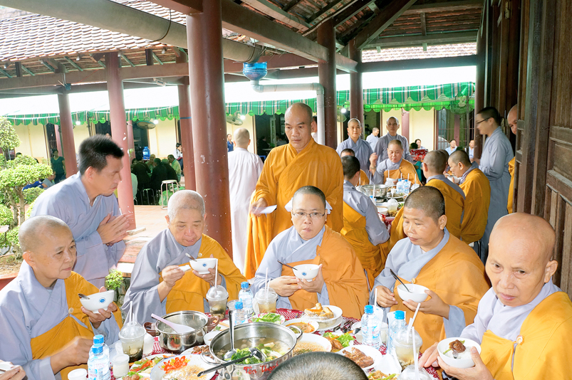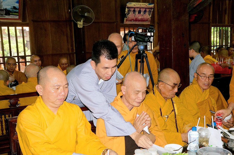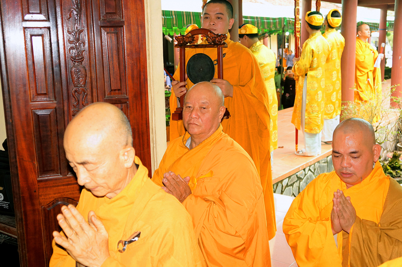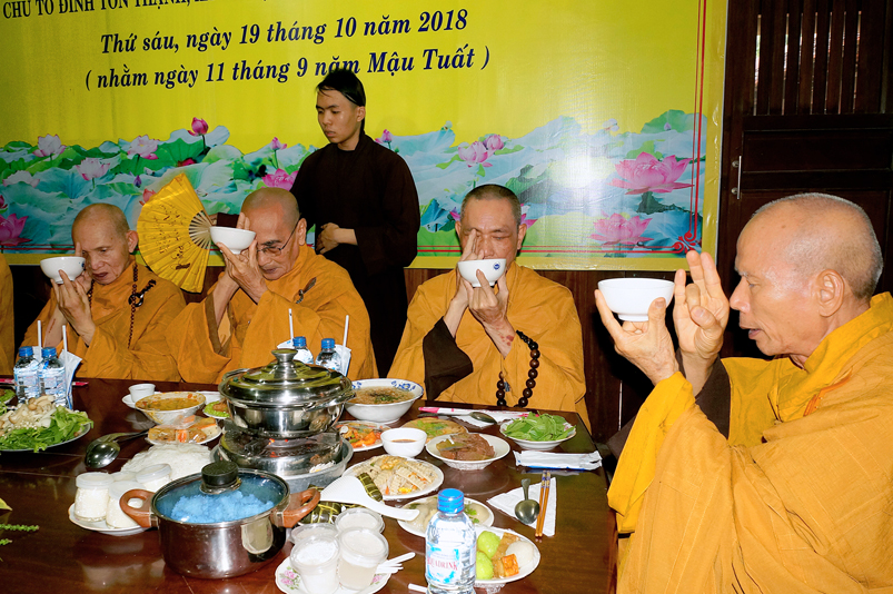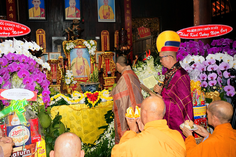 Tiếp đó, Môn đồ pháp quyến vân tập thiền đường chí tâm cung thỉnh chư Tôn Đức Giáo phẩm Ban Trị sự tỉnh, huyện, thị, thành, chư Tôn đức Tông phong v.v. thân lâm trai đường chứng dự lễ cúng dường.