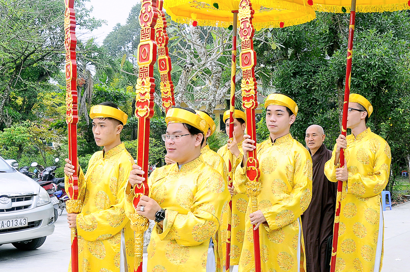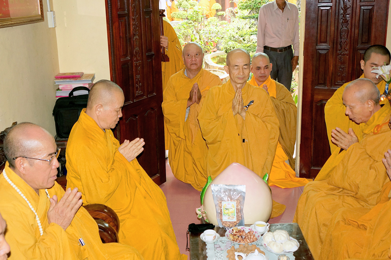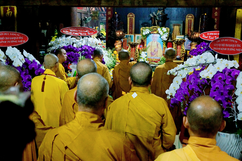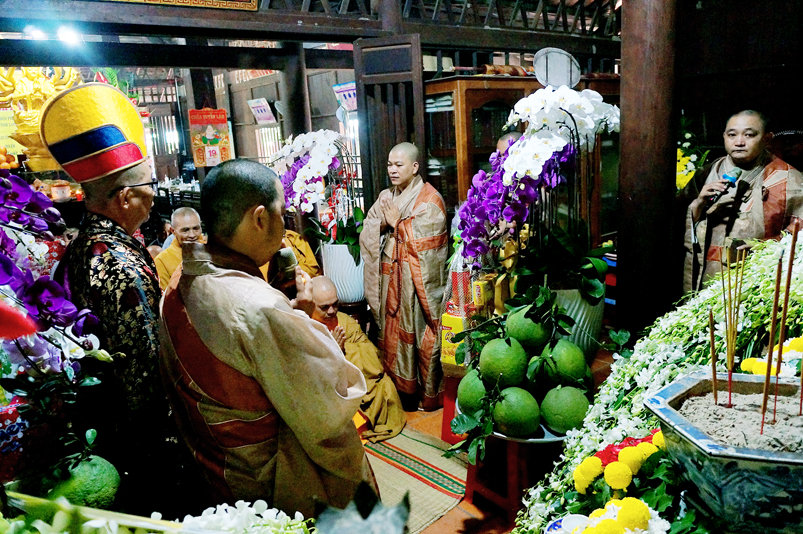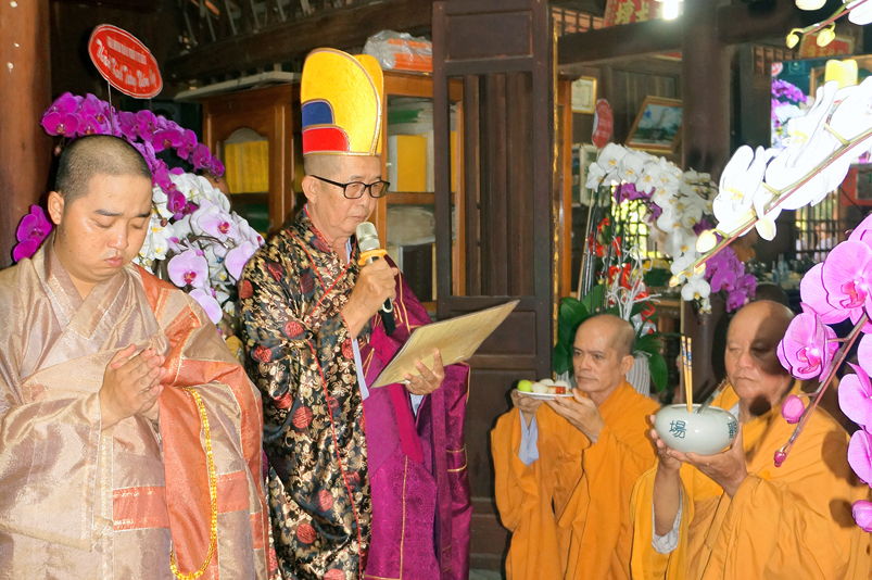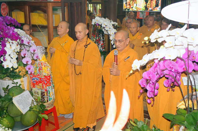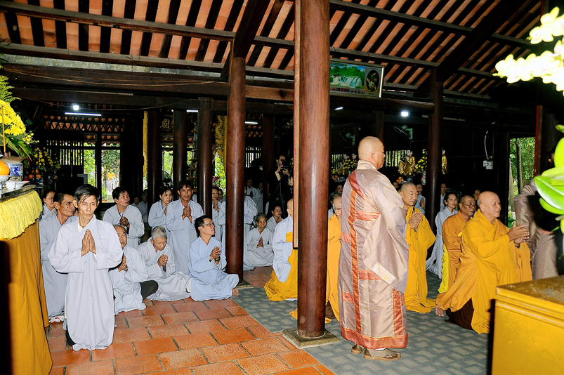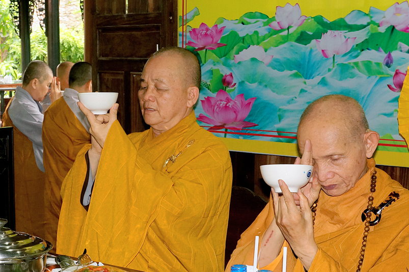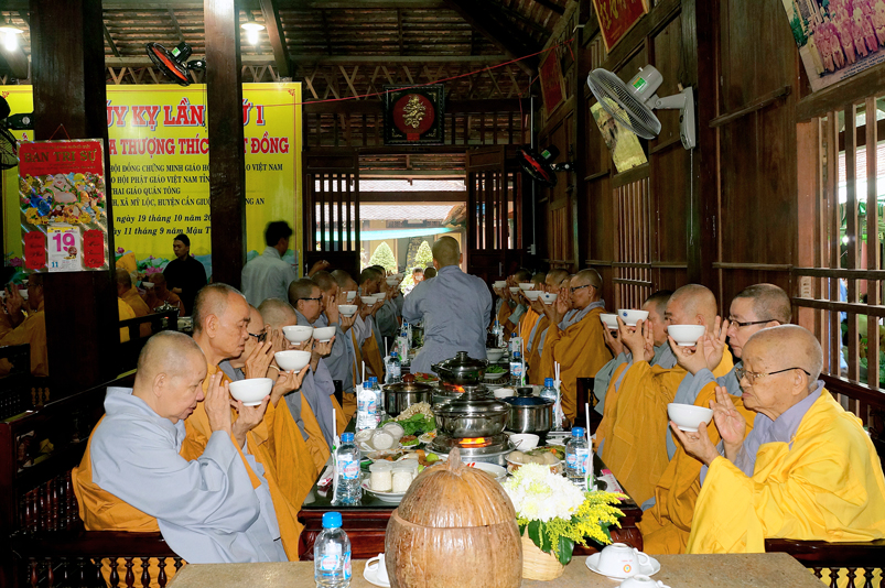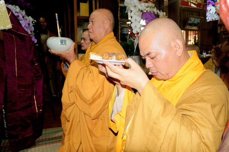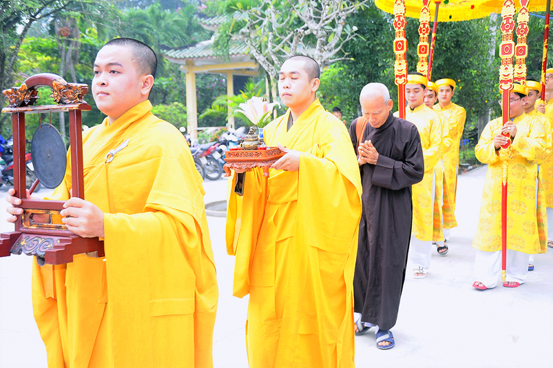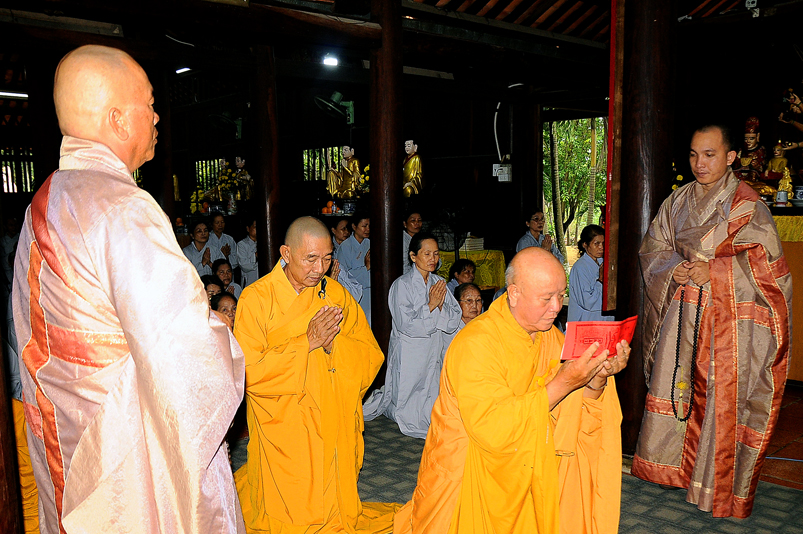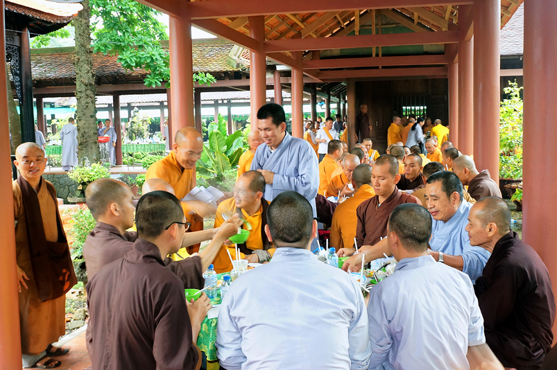 Tiếp đó, Môn đồ pháp quyến vân tập thiền đường chí tâm cung thỉnh chư Tôn Đức Giáo phẩm Ban Trị sự tỉnh, huyện, thị, thành, chư Tôn đức Tông phong v.v. thân lâm trai đường chứng dự lễ cúng dường.