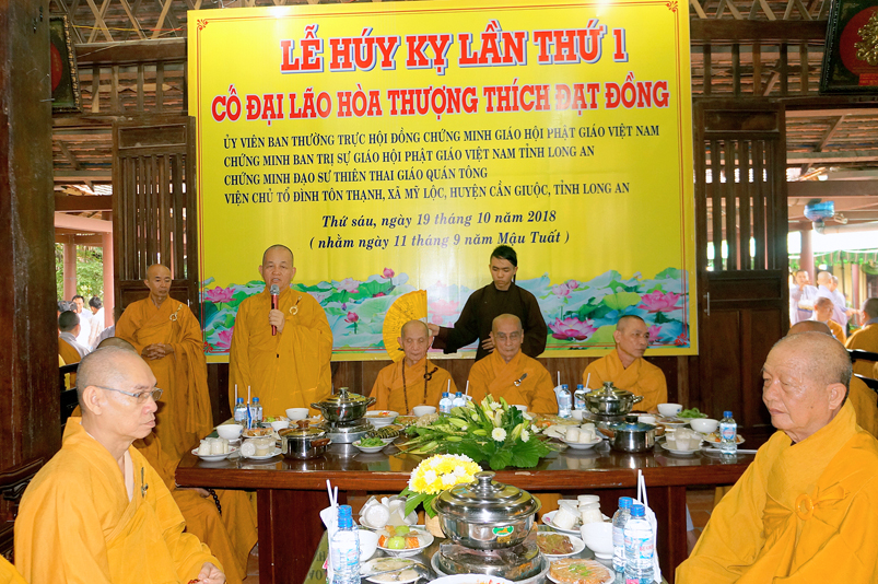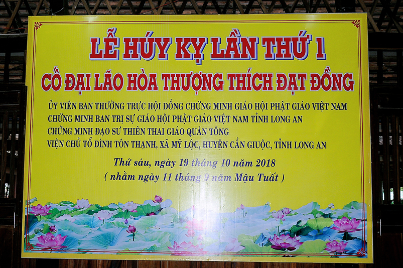 Sáng nay, ngày 19 tháng 10 năm 2018 (ngày 11 tháng 9 năm Mậu Tuất), Tổ đình Tôn Thạnh tổ chức trọng thể Lễ Húy kị lần thứ nhất của Cố Trưởng lão Hòa thượng thượng Đạt hạ Đồng  (1923-2015)- Nguyên Ủy viên Ban Thường trực Hội Đồng Chứng Minh Giáo hội Phật giáo Việt Nam, Chứng minh Ban Trị sự Giáo hội Phật giáo Việt Nam tỉnh Long An,Chứng minh Đạo sư Thiên Thai Giáo Quán Tông, Nguyên Ủy viên Tăng sự Ban Trị sự Giáo hội Thiên Thai Giáo Quán Tông.