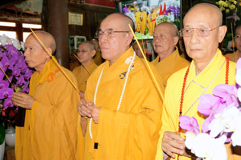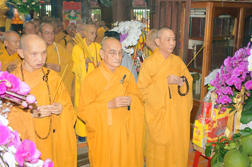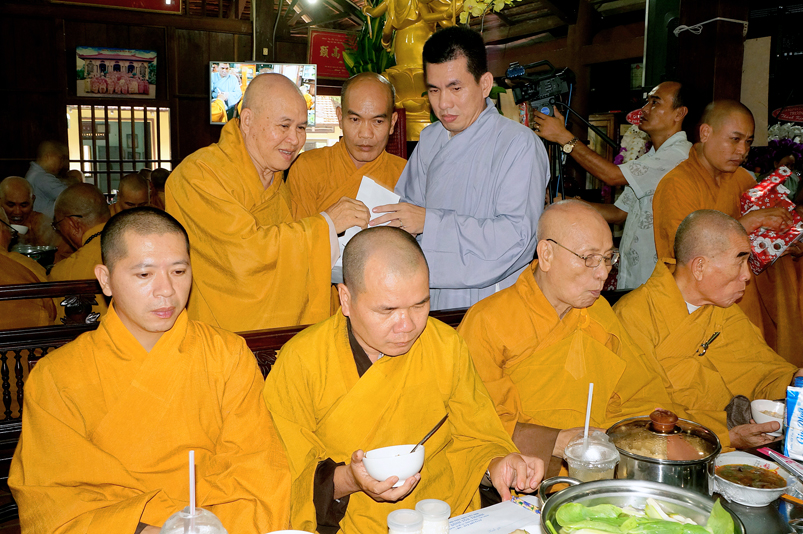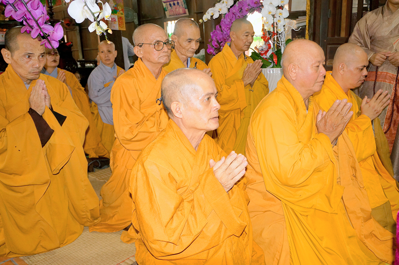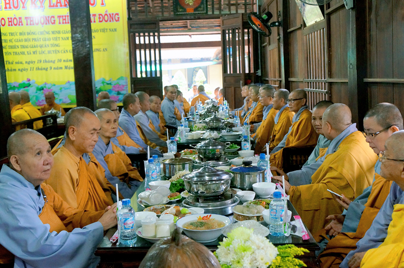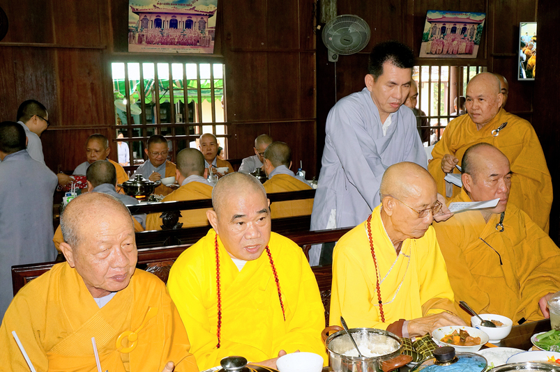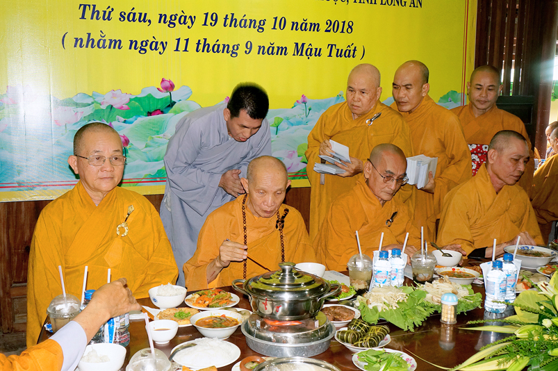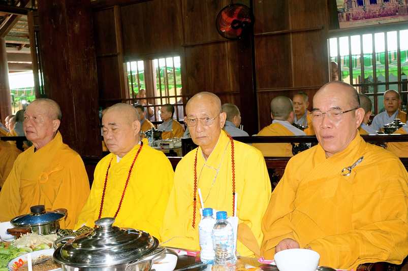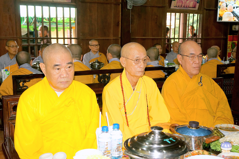 Chư Tôn đức hiện diện chứng dự trai đường: HT. Thích Giác Hạnh, HT. Thích Trí Minh, HT. Thích Thiện Huệ- Chứng minh Ban trị sự GHPGVN tỉnh Long An, HT. Thích Minh Thiện – Uỷ viên HĐTS trung ương,  Phó Trưởng ban Hoằng TW, Trưởng Ban Trị sự GHPGVN tỉnh Long An; chư Tôn đức Thường trực Ban Trị sự Phật giáo tỉnh Long An; chư Tôn đức các Ban Trị sự huyện v.v. và quý Tôn đức Tông phong; quý quan khách chính quyền tỉnh, huyện, thị v.v..