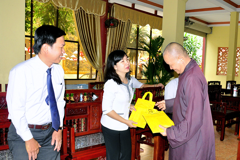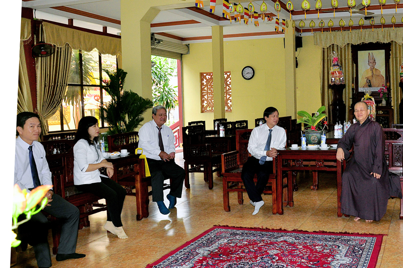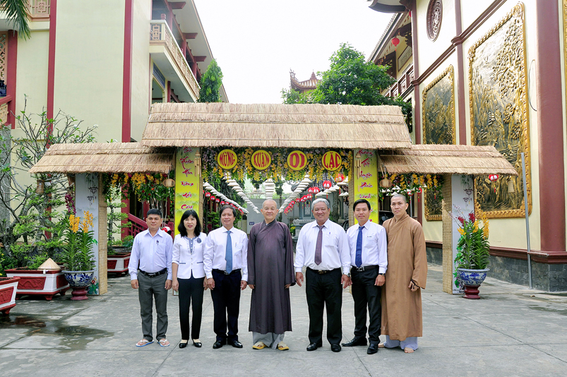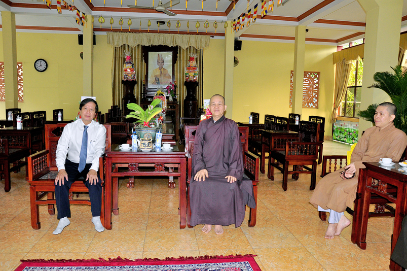 Buổi đón tiếp phái đoàn diễn ra trong không khí ấm áp, vui tươi của những ngày sắp tết, HT. Thích Minh Thiện đã gửi tặng báo Xuân Giác Ngộ đến quý vị lãnh đạo.