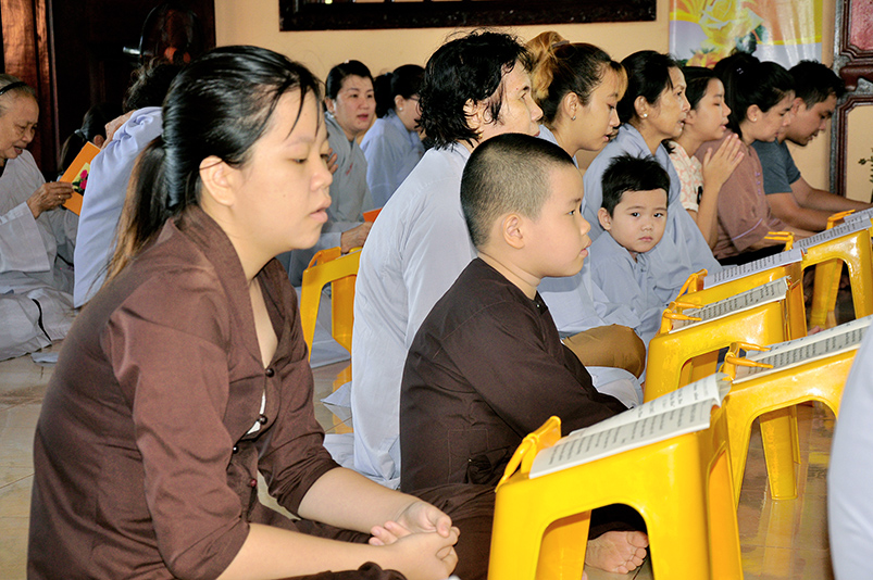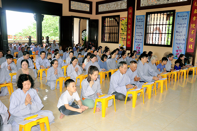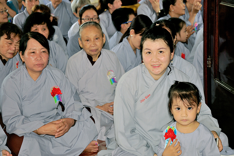 Hòa thượng lại nói: chúng ta tham gia cài hoa hồng là tưởng nhớ đến tứ ân, đây là nét văn hóa cao đẹp, là đạo đức chuẩn mực mà ai ai muốn làm người người chân thiện mỹ trong cuộc đời này thì không thể nào quên được ân dưỡng dục của hai đấng sanh thành. Qua lời tác bạch của quý vị đã nói lên những lời ăn năn sám hối, vì đã không làm tròn hiếu tâm hiếu hạnh và hiếu dưỡng của mình đối với cha và mẹ. Hôm nay về ngôi tam bảo tham dự lễ Vu Lan quý Phật tử nên lắng động tâm tư theo con đường chánh tín như lời kinh đã dạy: “được cung phụng mẹ cha là phước đức lớn nhất”. Muốn báo ân cha mẹ không phải đợi đến tháng 7 ngày Vu Lan mới báo hiếu, mà phải đền đáp ân đó trong từng ngày, từng giờ bằng lời nói, việc làm phụng dưỡng mẹ cha. Đồng thời cũng không quên nhớ ân Tam Bảo, nơi mà chúng ta đã từng quay về học lẽ phải của cuộc đời, sống làm người nhân nghĩa theo tinh thần chánh tín của Phật giáo, để áp dụng trong cuộc sống đời thường của mình. Đó là nhu cầu giúp cho chúng ta và người thân của chúng ta giải thoát phiền não khổ đau trong cuộc đời này.